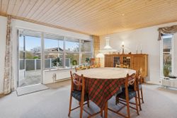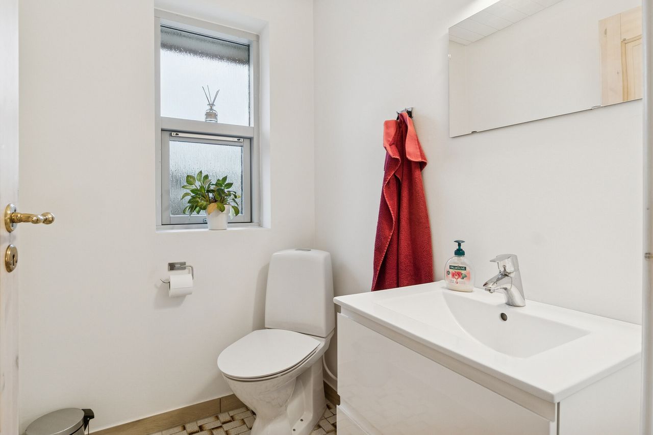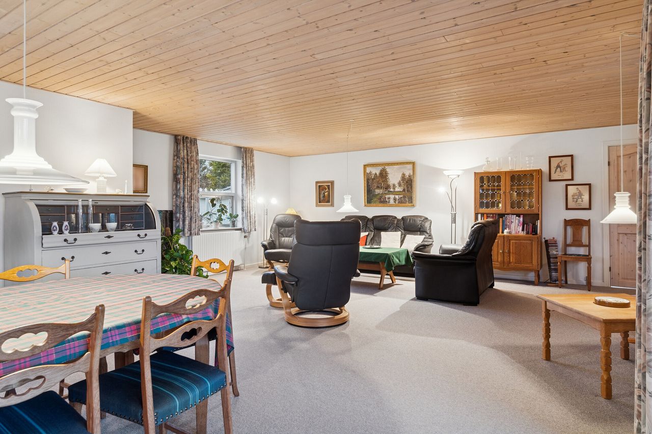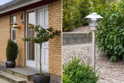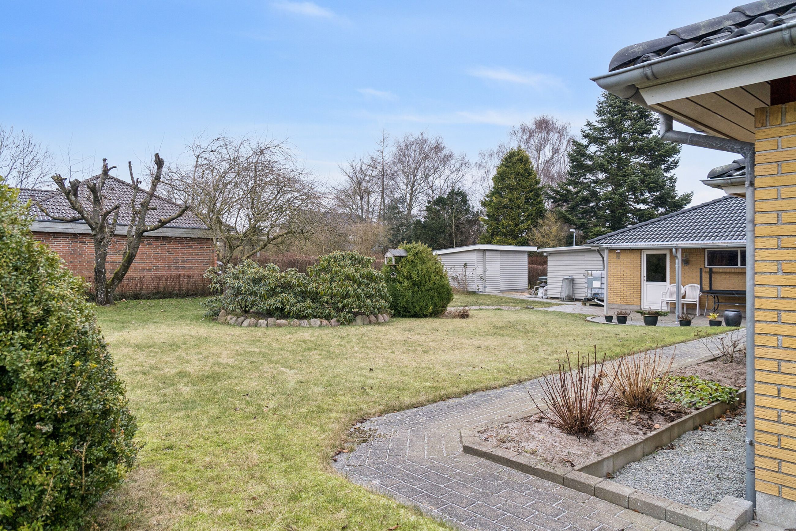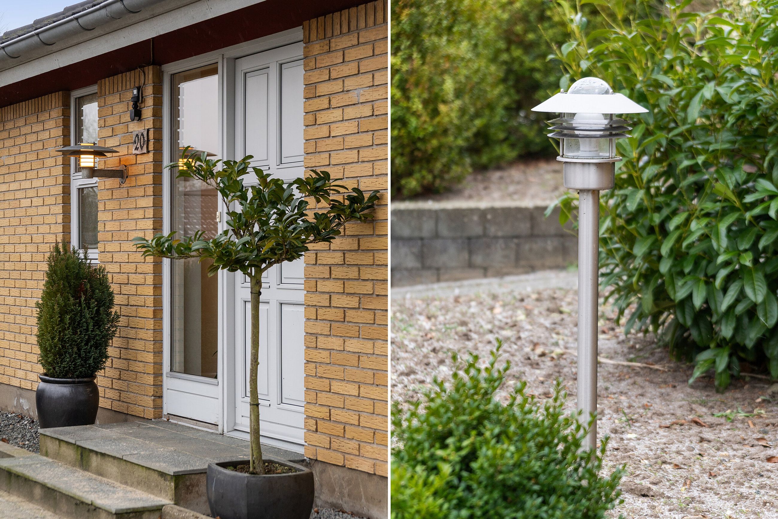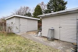 Udenfor venter en skøn og velanlagt have med flere dejlige terrasser, hvor solen kan nydes dagen igennem. Til ejendommen hører desuden en stor garage på hele 49 m2 samt to udhuse, der giver gode opbevaringsmuligheder.