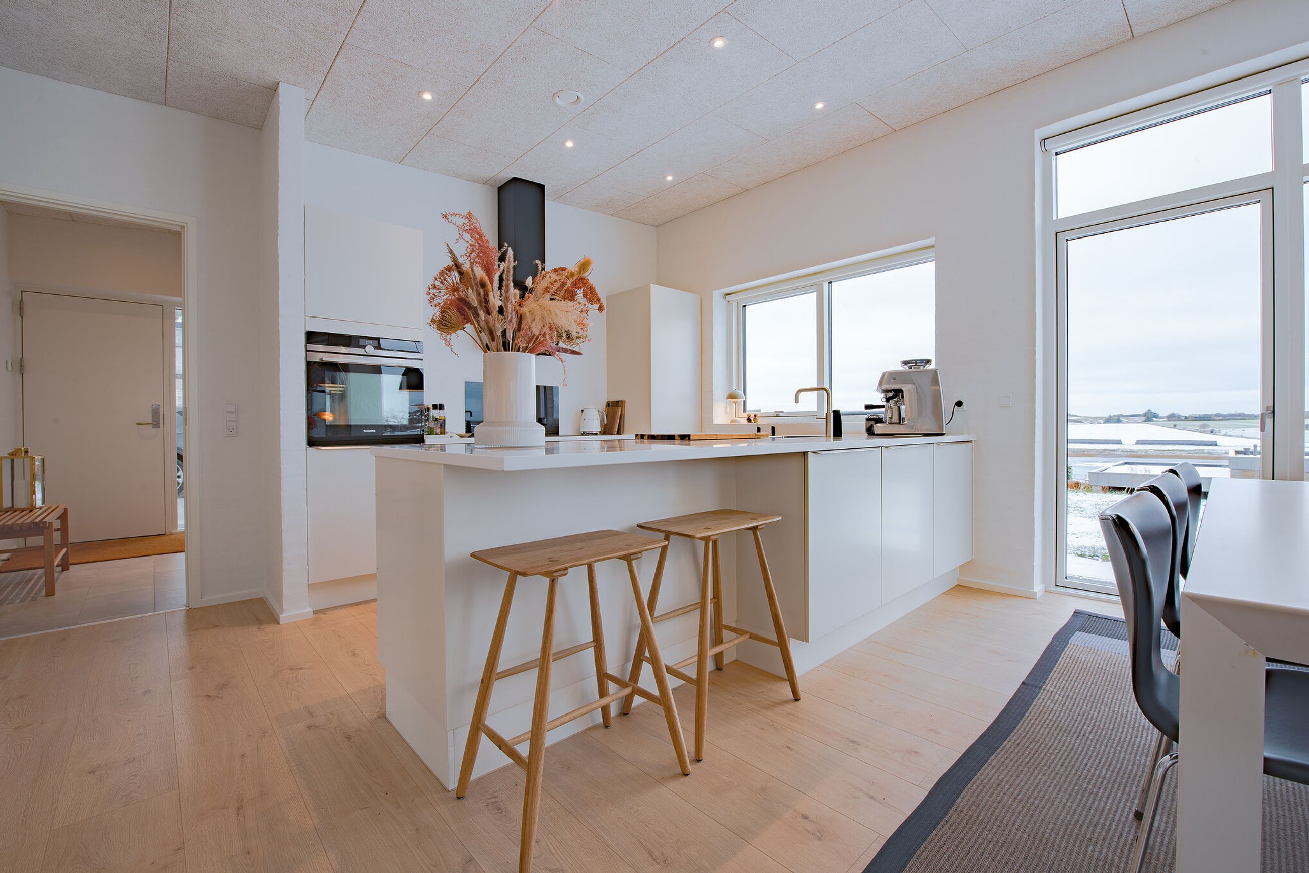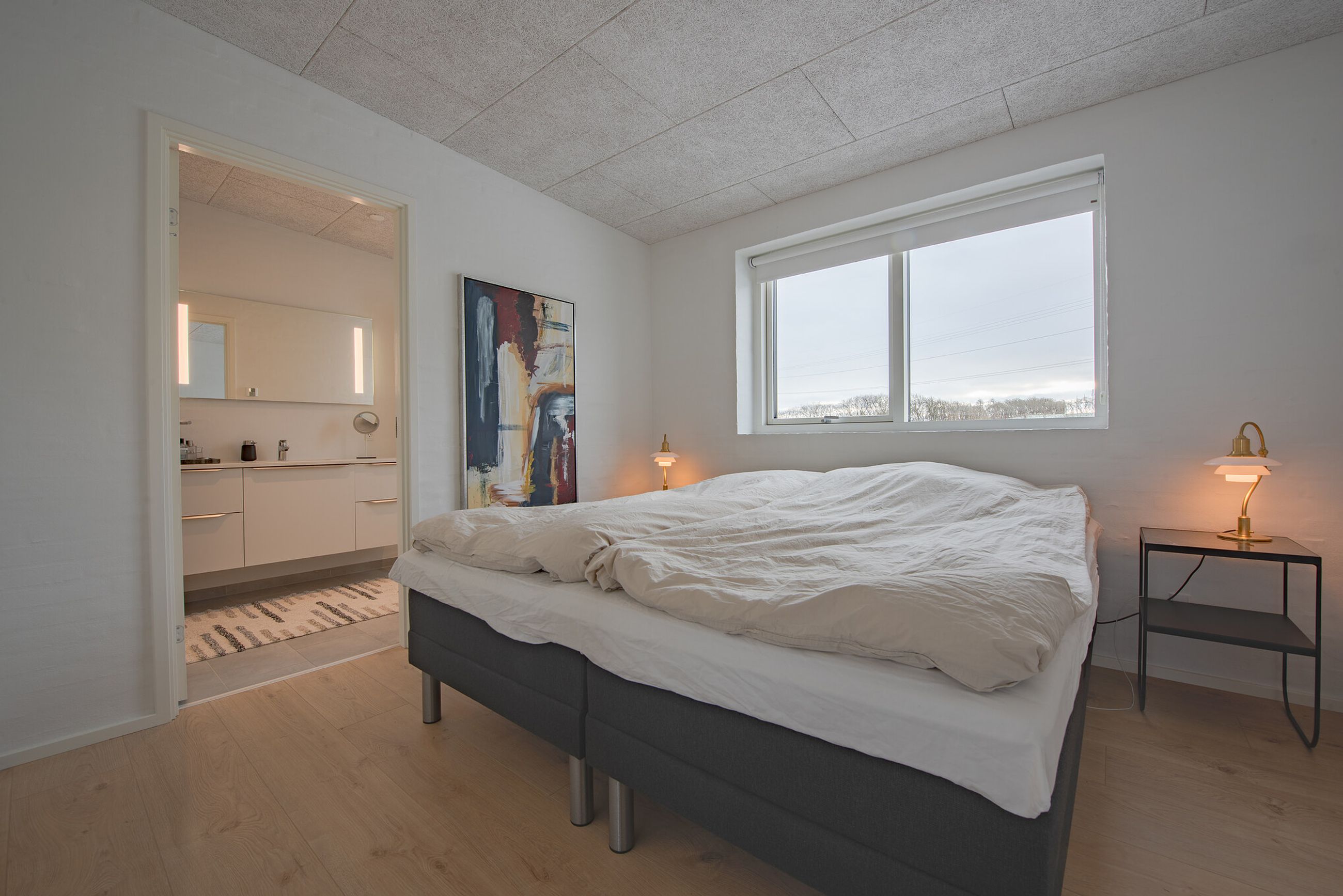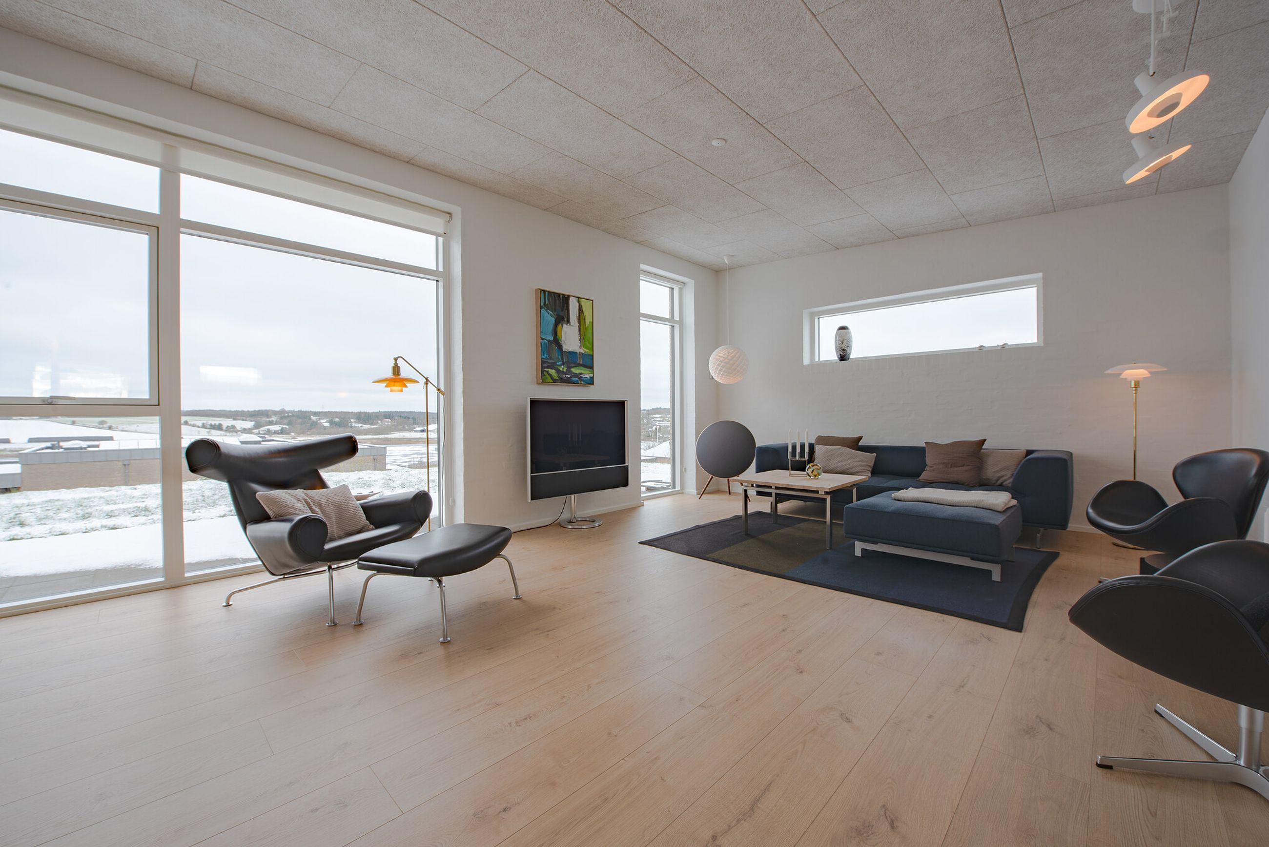 Planløsningen er gennemtænkt med lyse opholdsrum, hvor store vinduespartier inviterer udsigten og dagslyset helt indenfor. Her får man en bolig, der er ideel for både børnefamilien, parret eller seniorerne, som ønsker en nem og komfortabel hverdag i naturskønne omgivelser – men stadig med kort afstand til Viborgs mange tilbud.