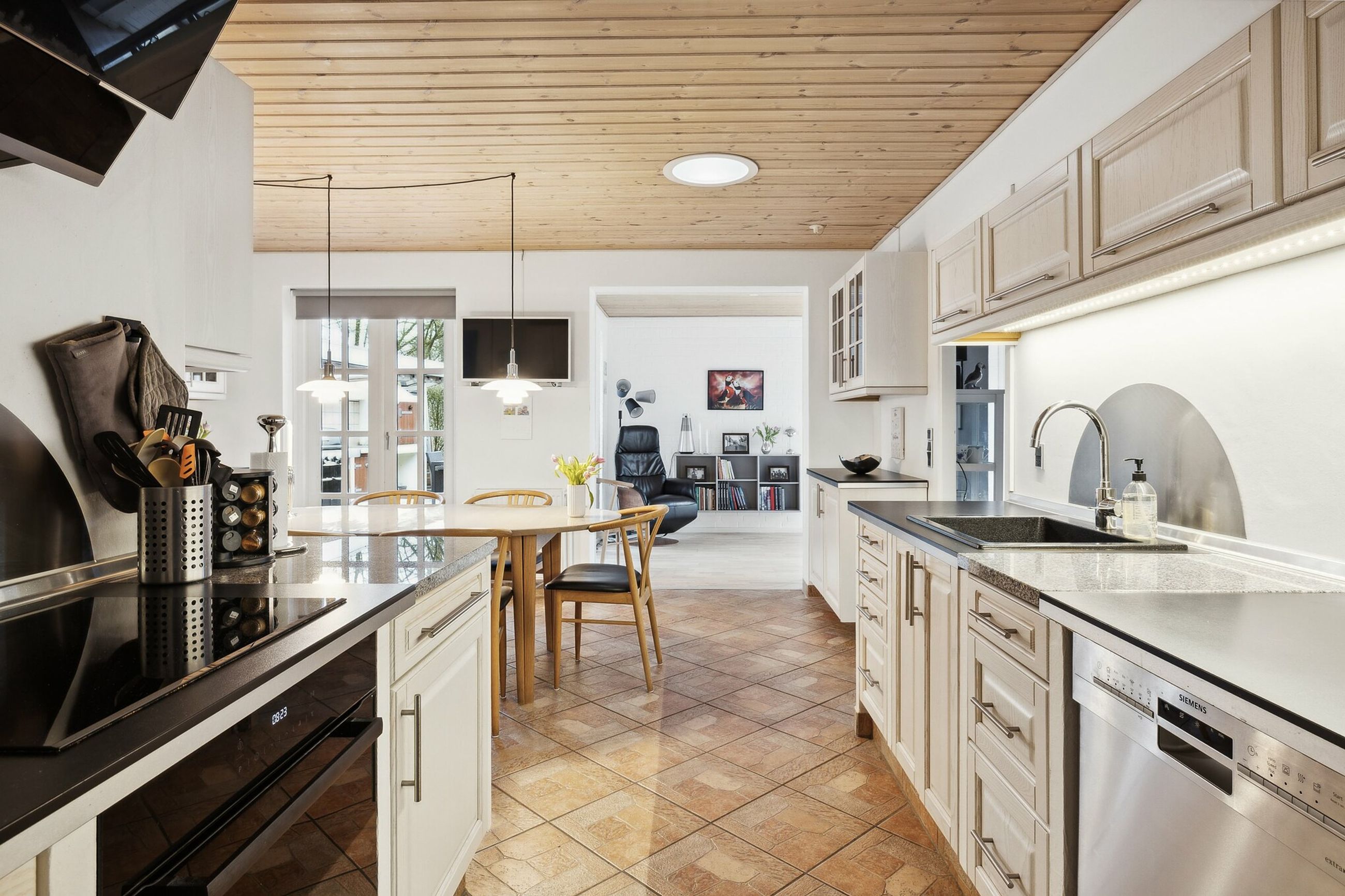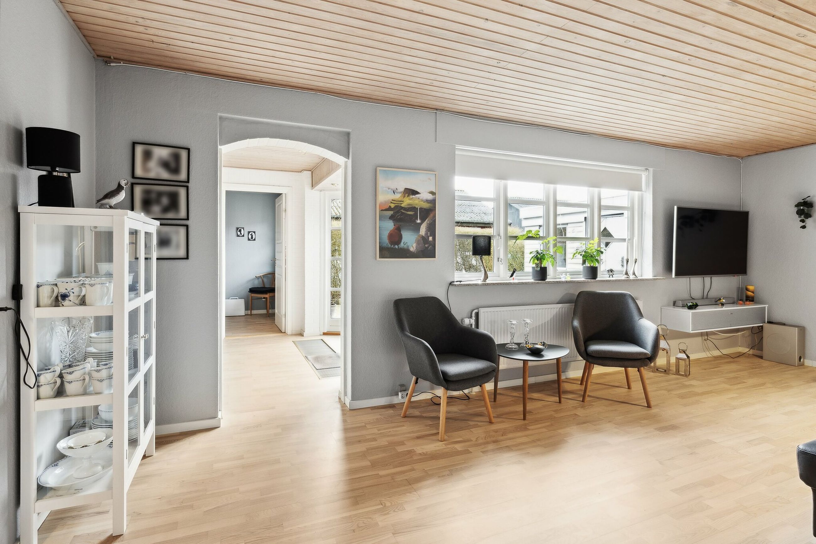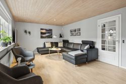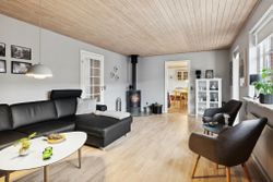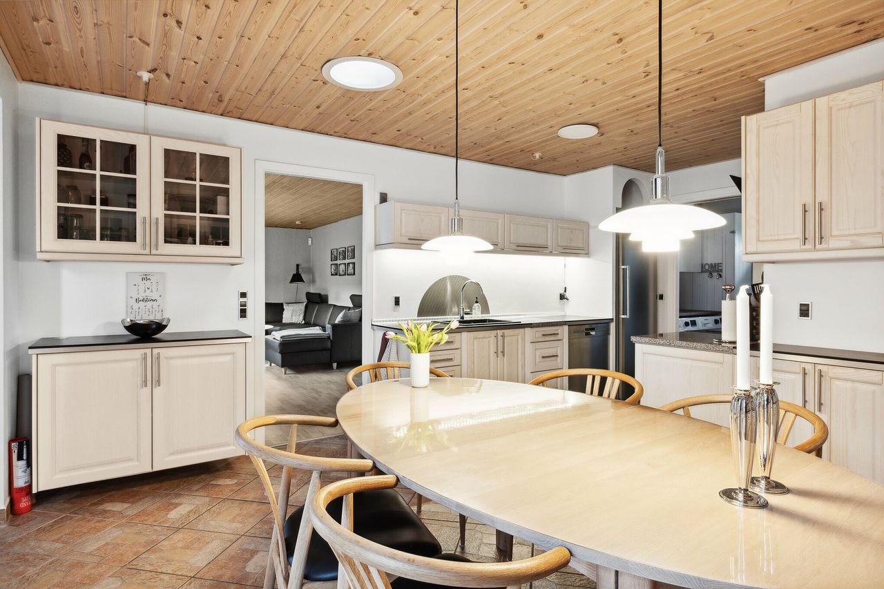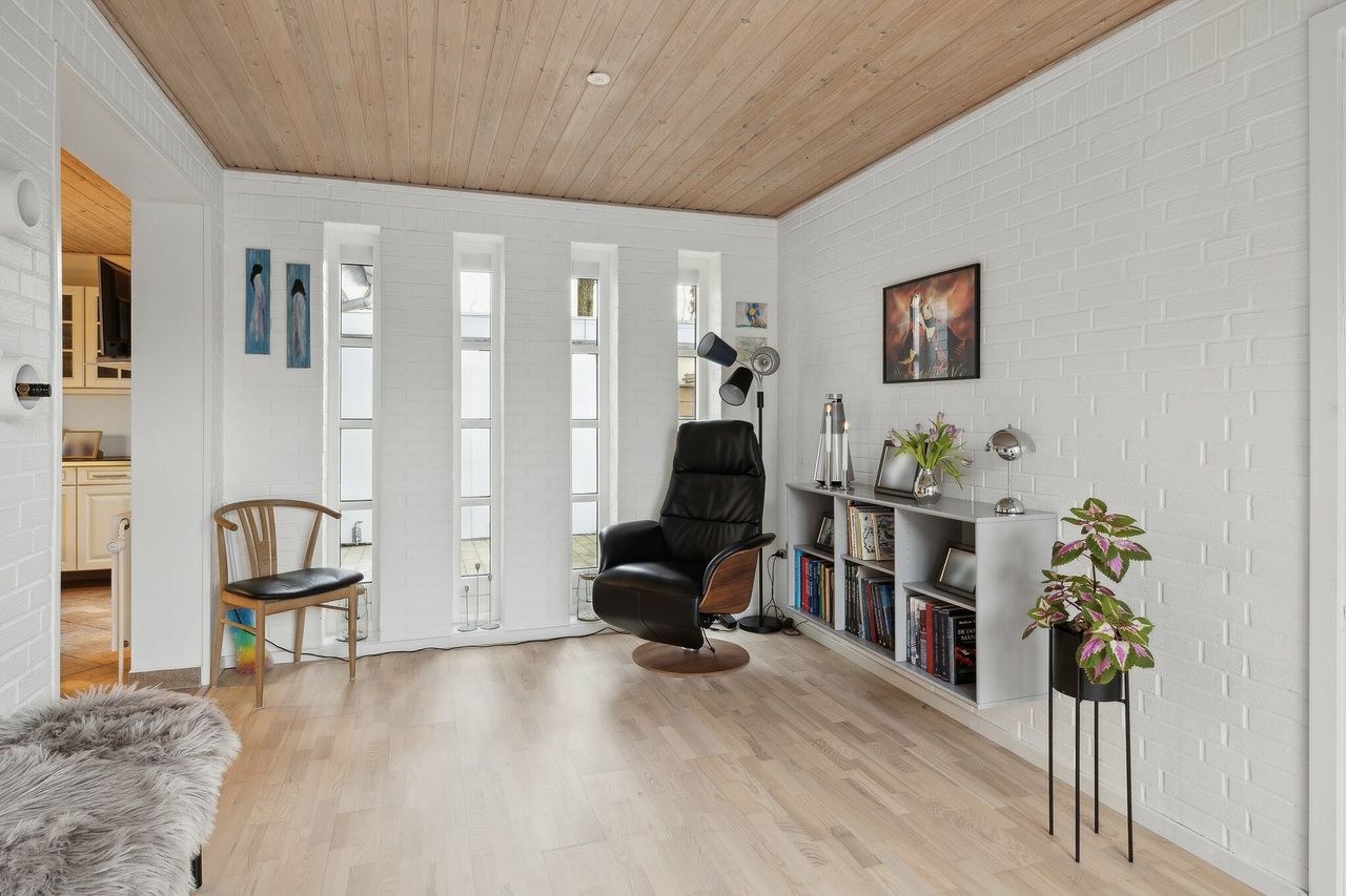 Boligen fremstår pæn og velholdt, og der er foretaget flere opdateringer gennem de seneste år. I 2020 blev der lagt lyse egetræsgulve i stuer og værelser. Fra 2023 er køkkenets hvidevarer løbende udskiftet, og i 2024 blev både bryggers og badeværelse renoveret. Det gode lysindfald understøttes af flere terrassedøre, som skaber en naturlig forbindelse mellem inde og ude.