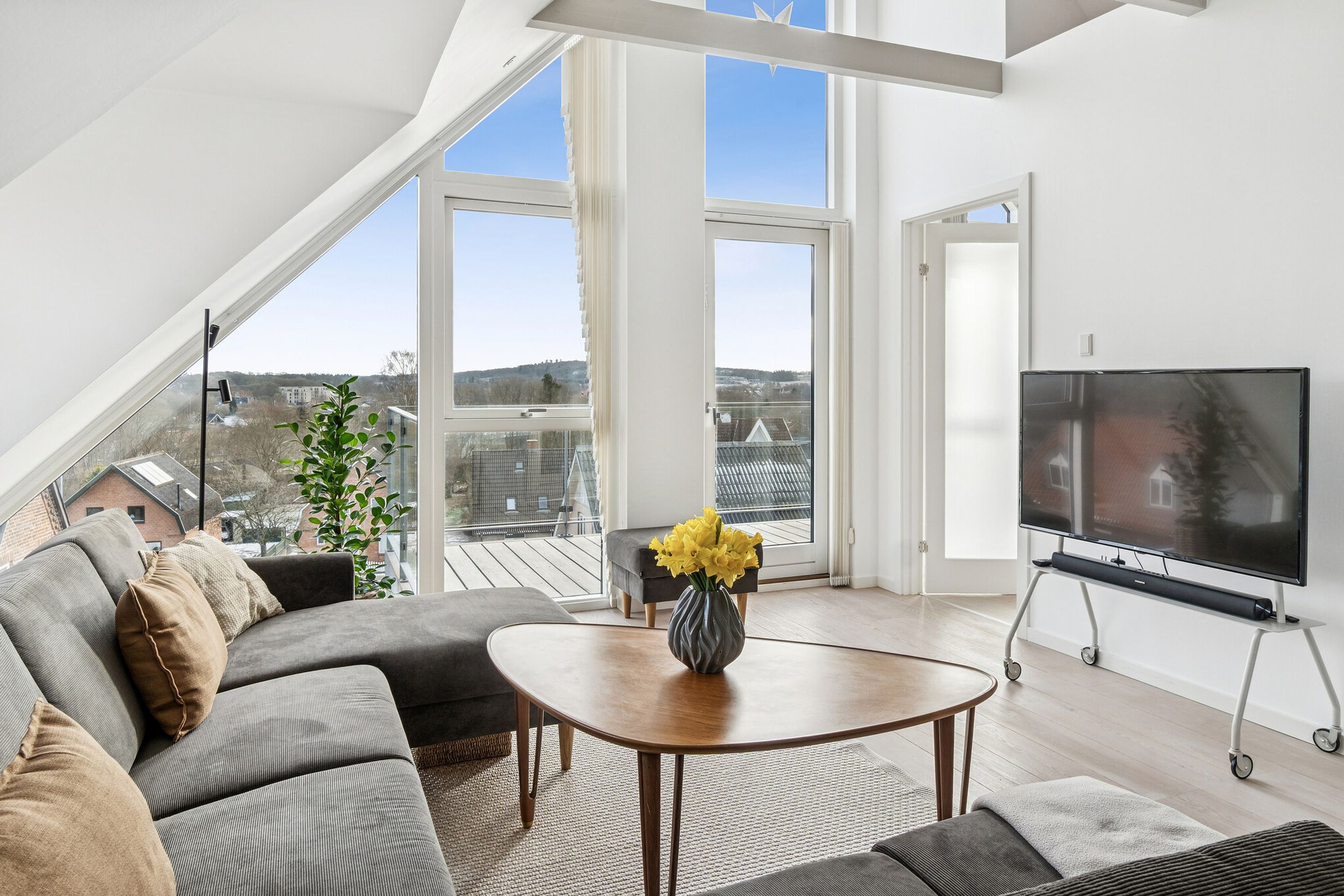 Her bor du med kort afstand til centrum og byens mange faciliteter, samtidig med at du får ro, privatliv og en udsigt i særklasse. Komforten er i høj klasse, og hele huset oser af kvalitet og velvære.