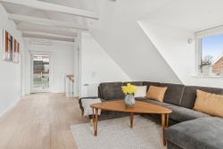 Ejendommen er flot istandsat og fremstår i gennemført god stand med fokus på kvalitet, æstetik og funktionalitet. De tre etager er indrettet med en gennemtænkt planløsning, der skaber både rummelighed og en naturlig opdeling mellem opholdsafdeling, værelser og eventuelle gæste- eller teenageafsnit.