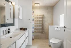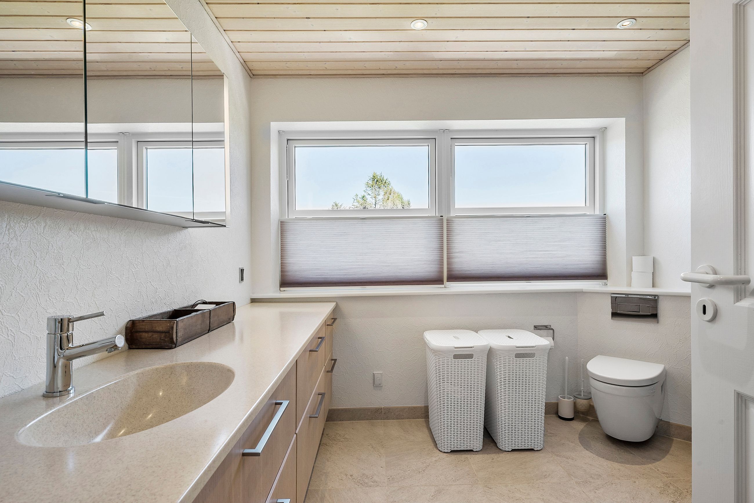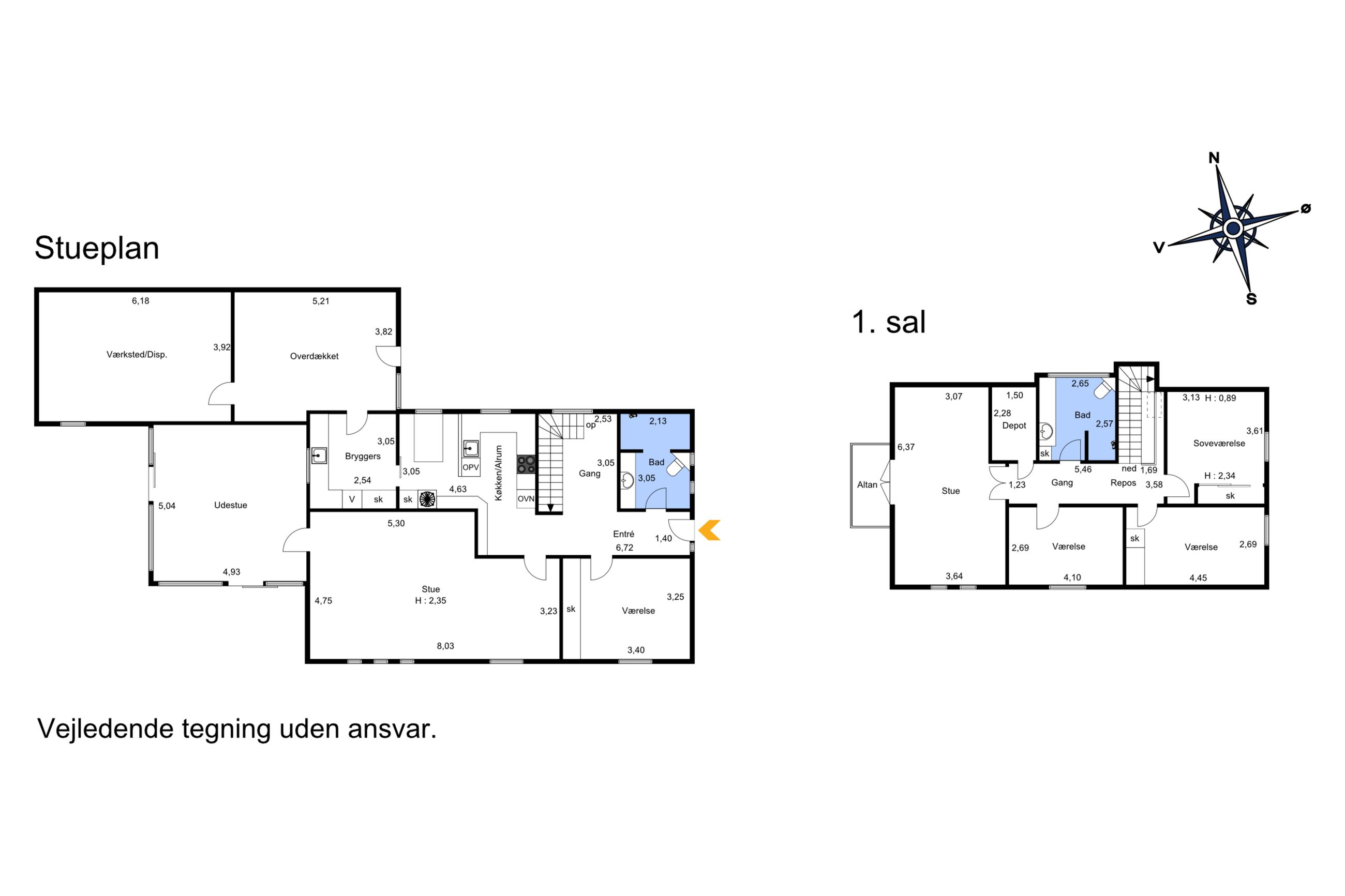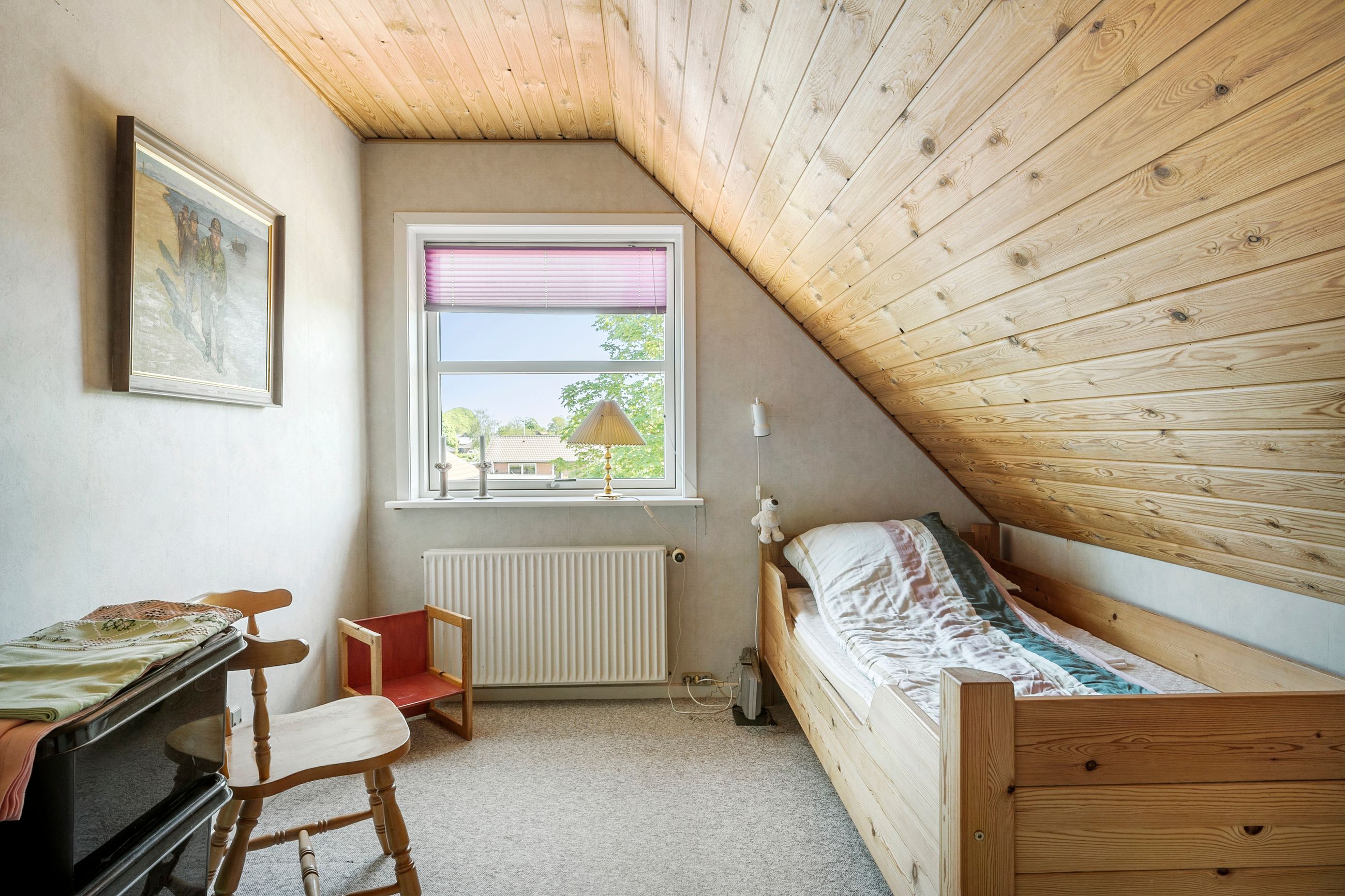 På 1. sal er der hele fire gode værelser, et depotrum samt et pænt badeværelse fra 2013 med gulvvarme og brus.