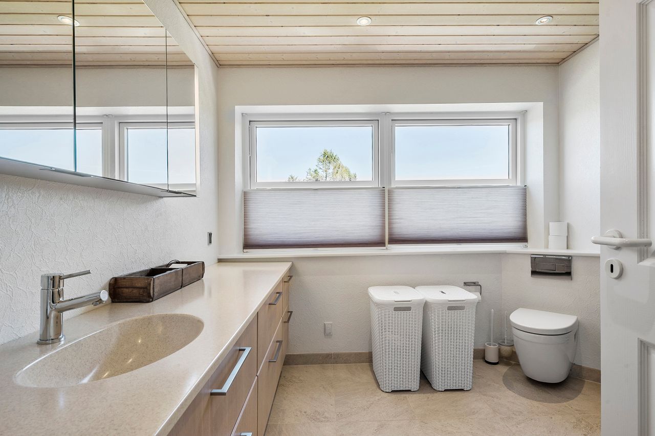 Alt i alt er der tale om en særdeles velholdt og velindrettet villa med masser af plads, centralstøvsuger, hyggelig anlagt have med flere skønne terreasser samt et stort udhus, moderne opdateringer og en attraktiv beliggenhed.