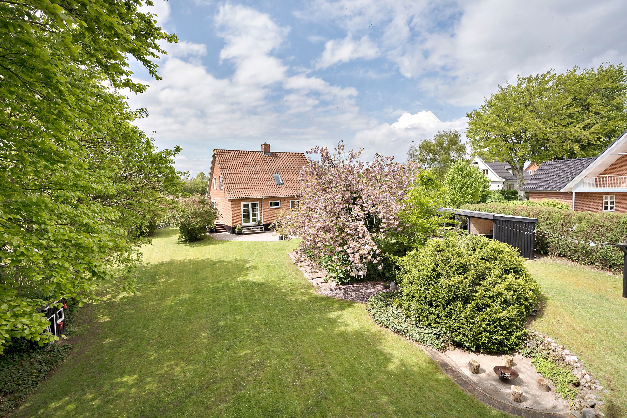 Tilbagetrukken, pæn og vedligeholdt treplans-familievilla udbydes her på Hovedgaden i Skals.