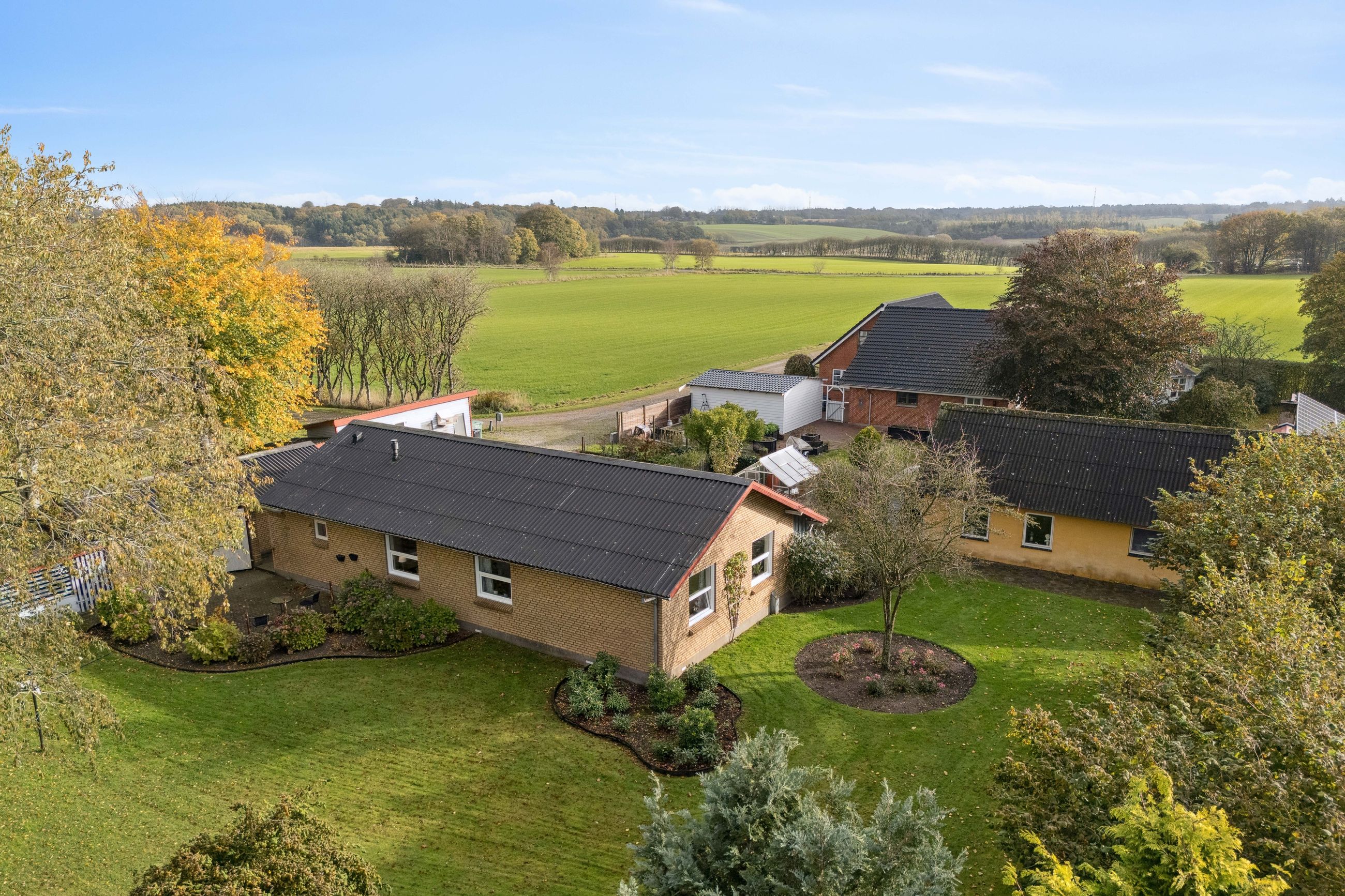 Midt i naturskønne og idylliske omgivelser med udsigt til åbne marker og frodig natur, finder du denne meget velholdte og moderniserede villa.