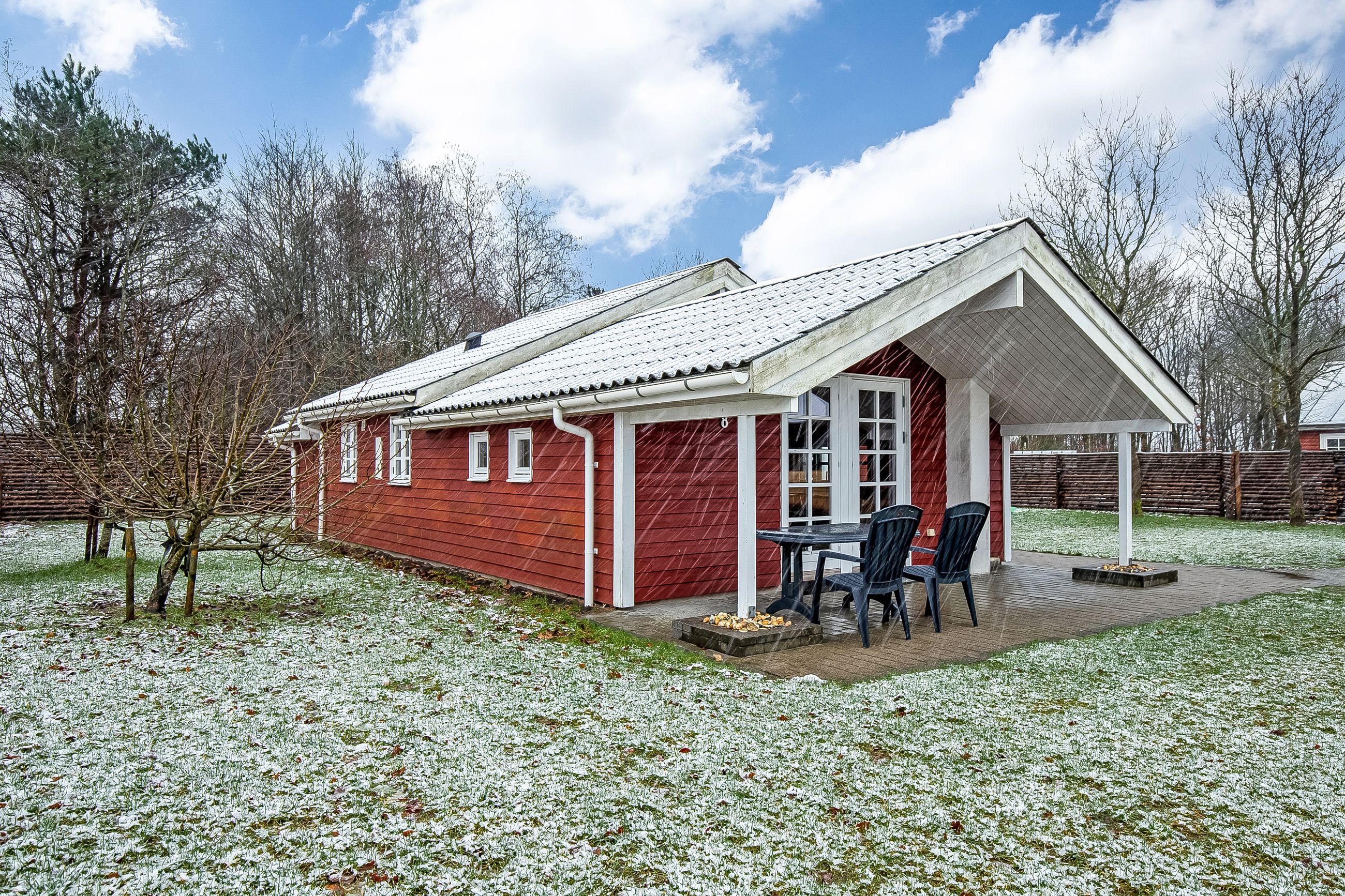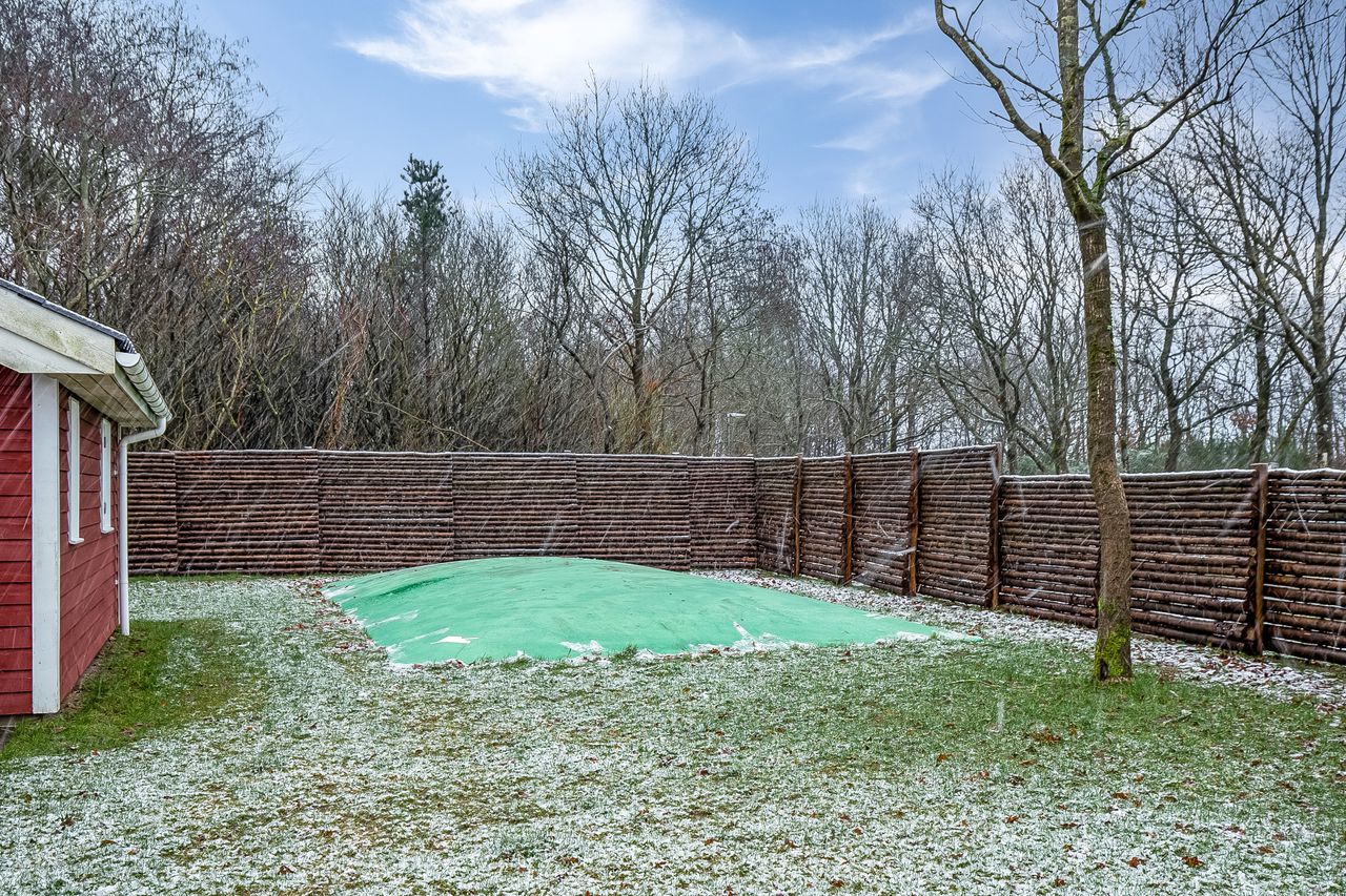 Omgivelserne er læflude og afgrænset med et fint tilpasset hegn i skel.