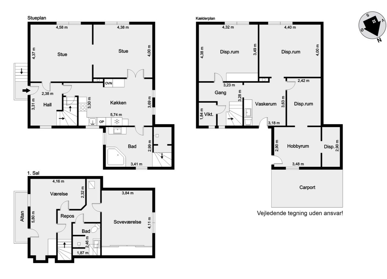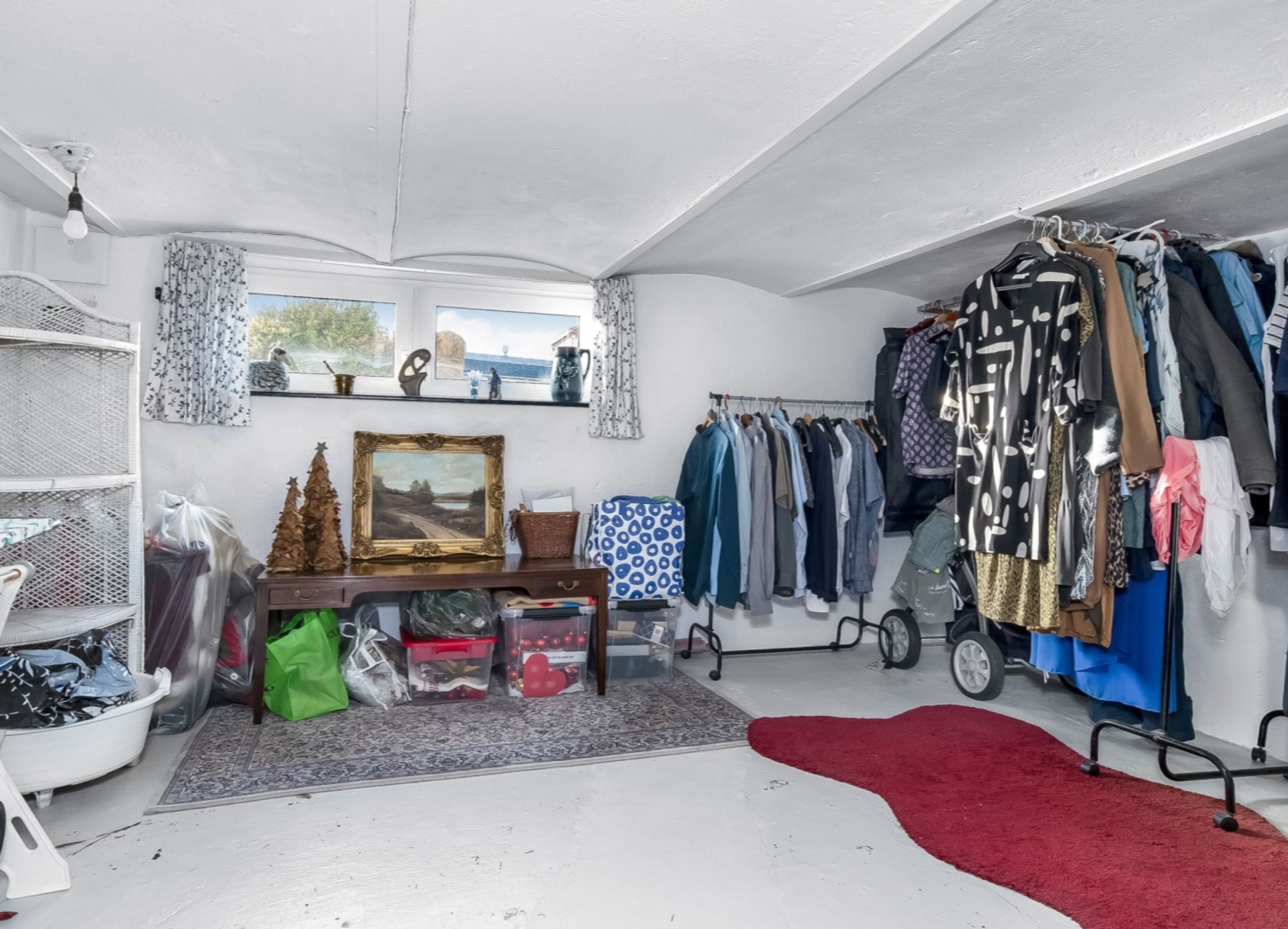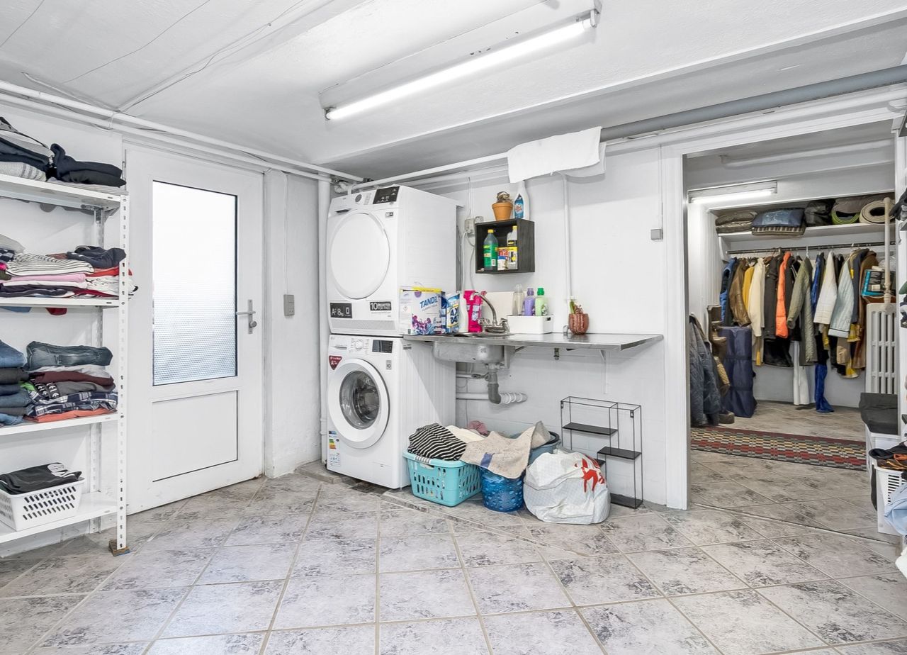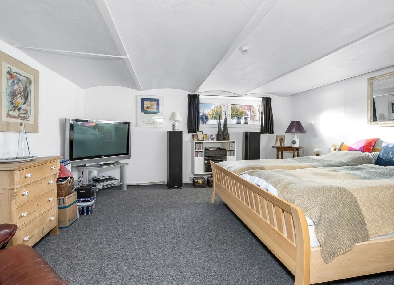 Udnyttet etage med ud-/ og indvendig opgang og vinduer over terræn. Indretning med stort gæsteværelse, værelse, depotrum, viktualierum, bryggers/vaskerum samt hobbyrum.