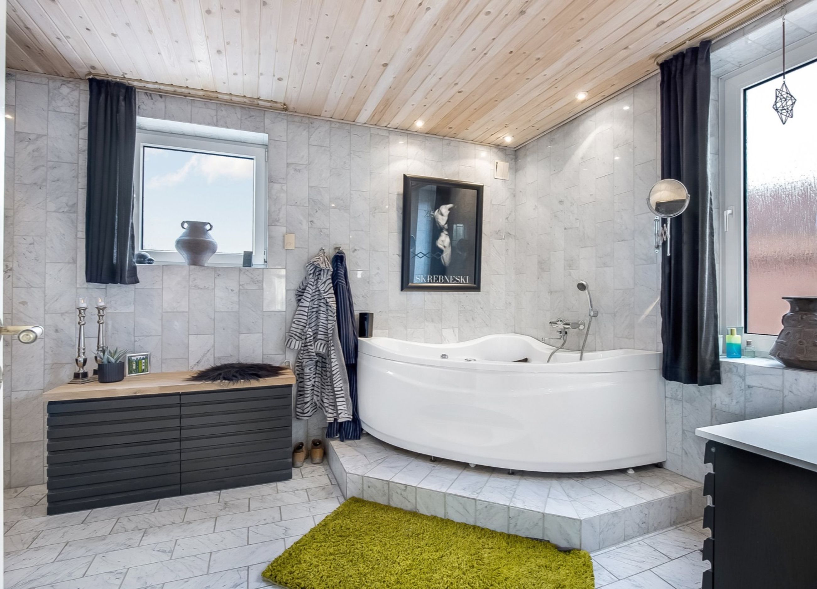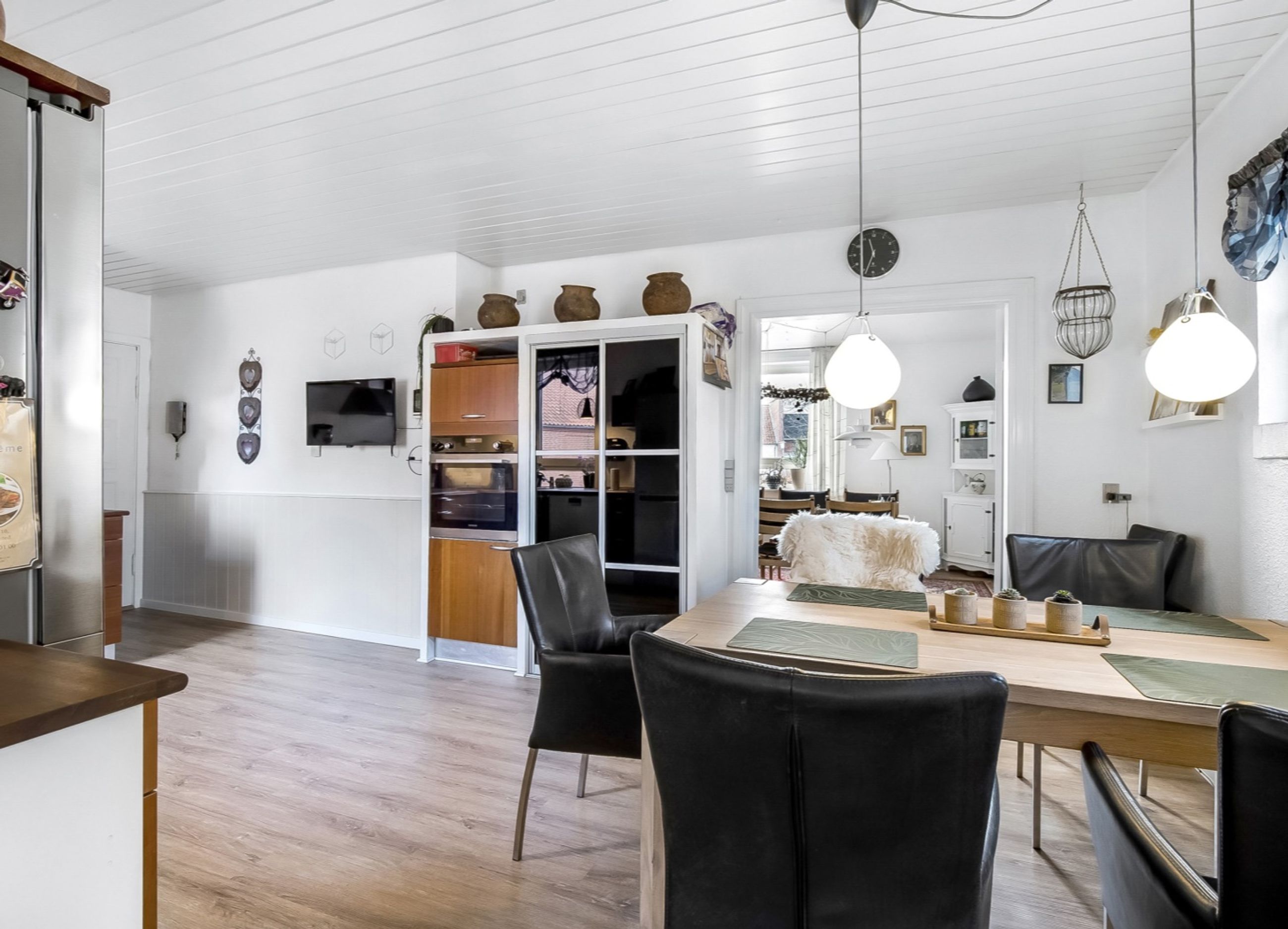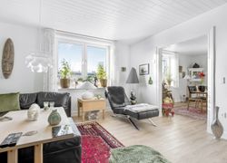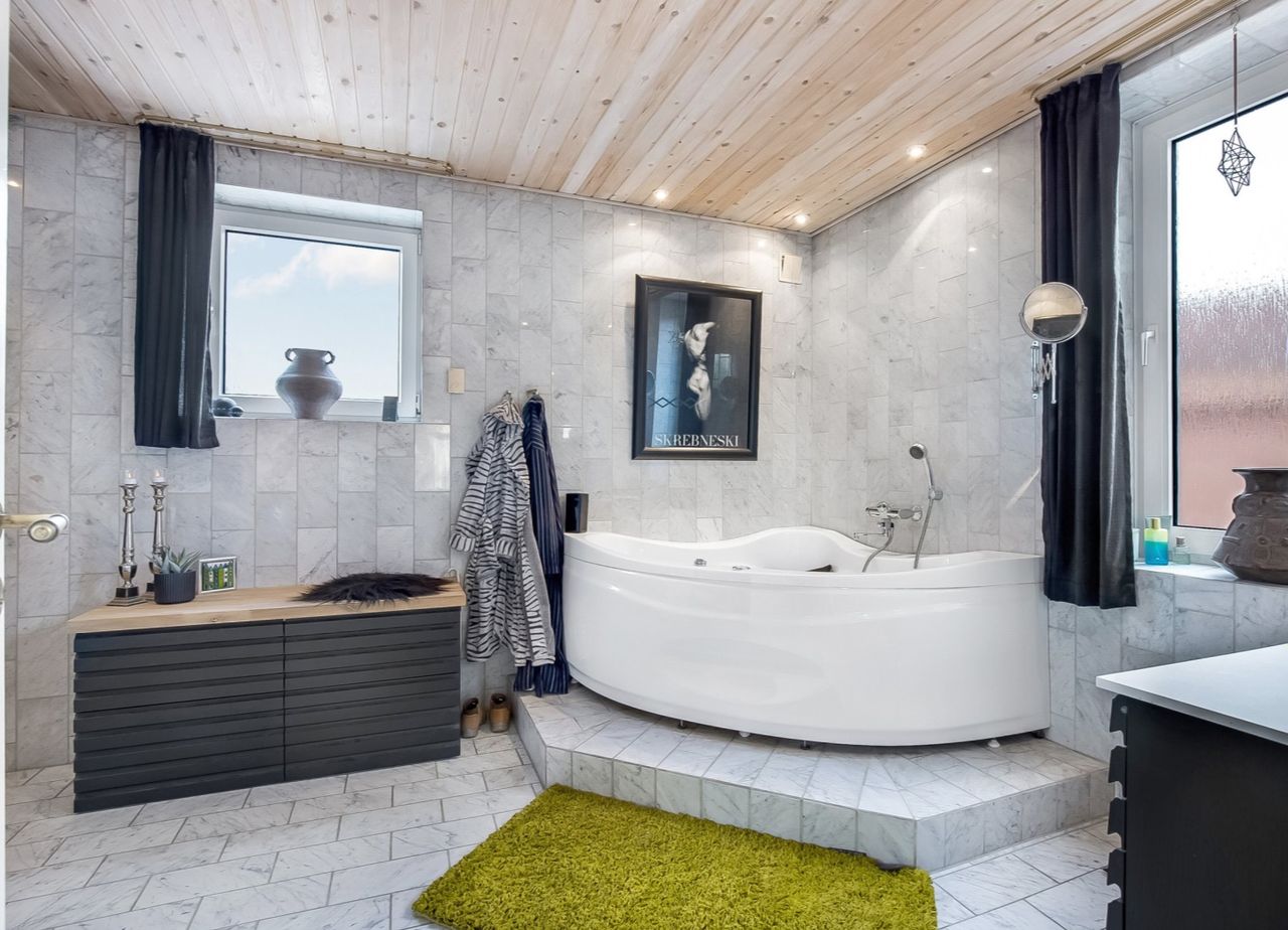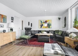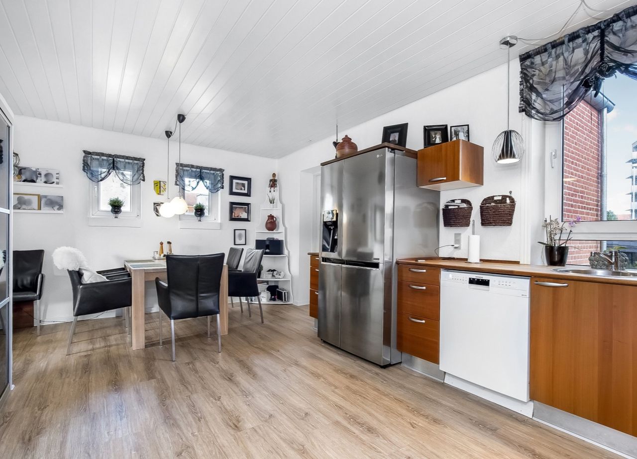 Entre /garderobe med trappe til 1. salen og i forb. m. opholdsstue. Herfra åben forb. til spisestue. Stort køkken m. nyere inventar og hd. hvidevarer. Rummelig moderne bad m. kar og forskudt sænket plan til stor bruseniche.
