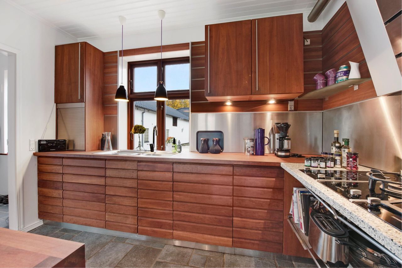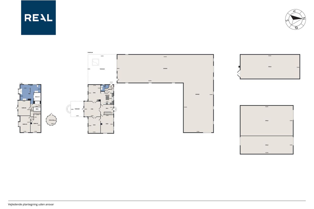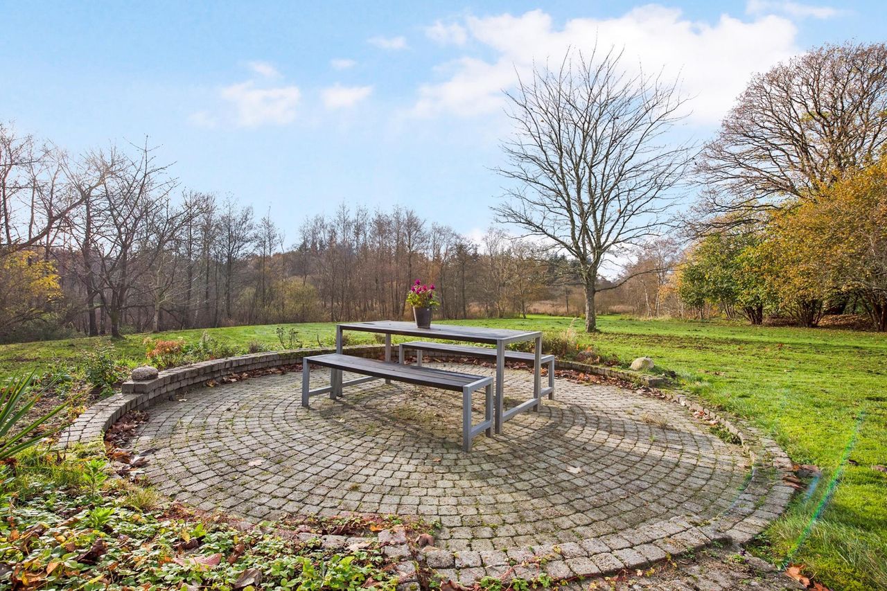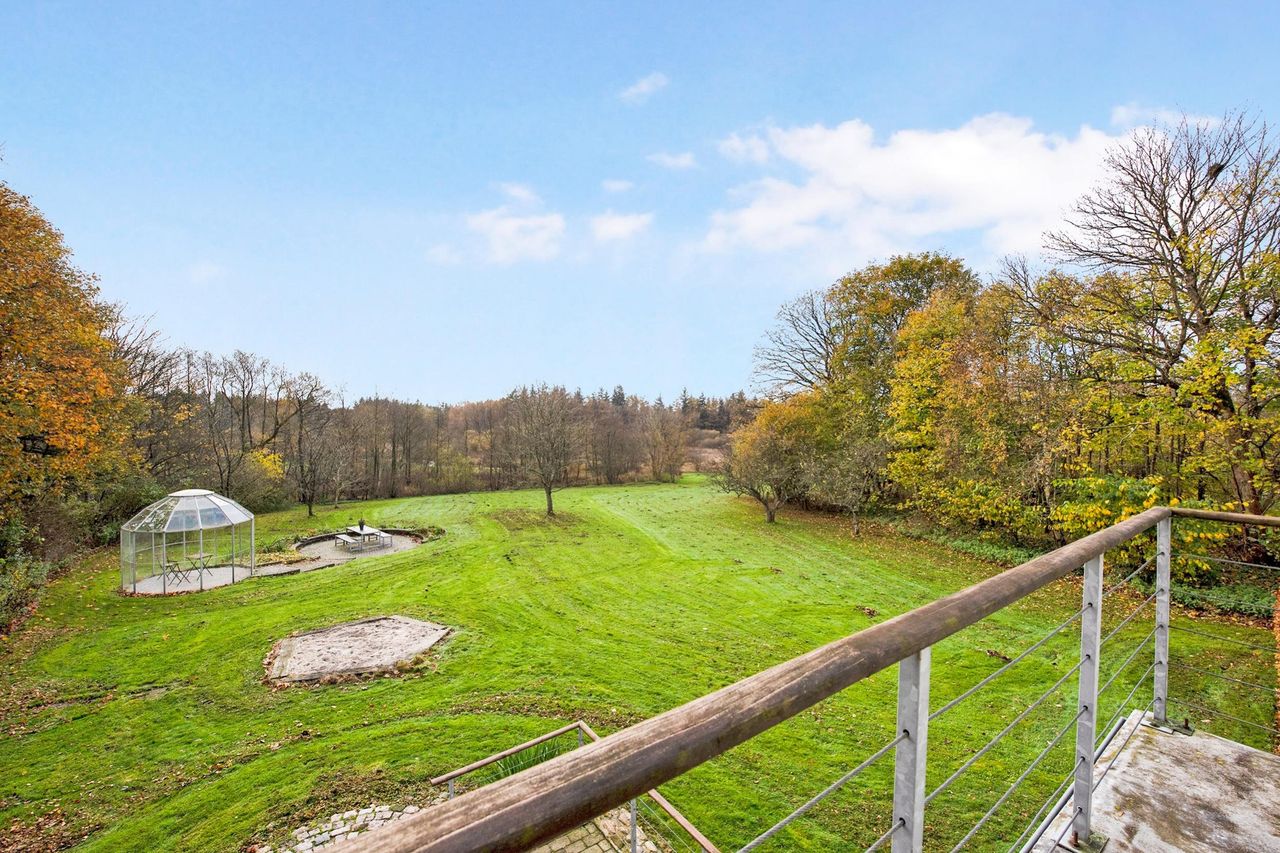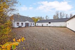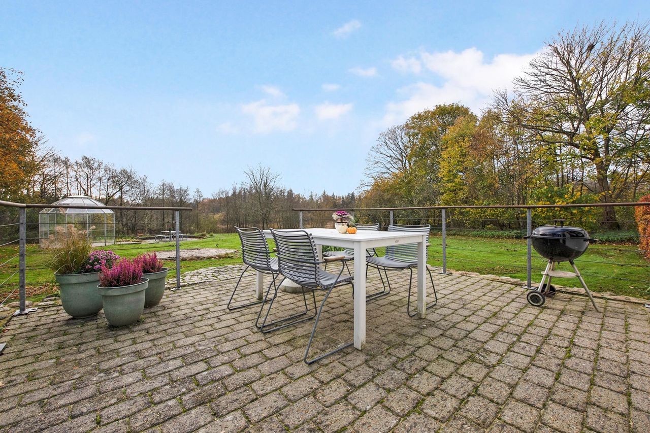 Landsted / domicilejendom med et jordtilliggende på 51.218 m2 (5.1229 ha.) hovedageligt bestående af skov af varierende træsorter. Optimale jagtforhold på ejendommen, der grænser op til store natur- / og skovområder.Bygningsfaciliteterne består af gennemrenoveret stuehus og opdaterede udhuse. Faciliteterne er placeret passende tilbagetrukket (ca. 250 m ) fra hovedfærdselsåren - Tarm Landevej. Herfra asfalteret tilkørselsvej til ejendommen. Hovedbygningen, med den parklignende have grænsende til Omme å, repræsenterer en smuk afbalanceret helhed. Der er tilsagn om tilskud på kr. 125.0000,00 salg af det bevoksede område til flisbehandling. Arealet afleveres efterfølgende rodfræst. INFRASTRUKTUR:--------------------------Ejendommen er beliggende med en afstand til 7400 Herning på ca. 40 km og 7190 Billund - med bl.a. international lufthavn - ca. 25 km. LOKALOMRÅDET:-------------------------Kort afstand - ca. 2 km - til Sdr. omme by med indkøb, dagligvarebutikker, byggemarked, Sdr. Omme Kro, børnehave, nyrenoveret skole, samt moderne kultur-/ og sportsfaciliteter med bl.a. fitnesscenter.Byen, der repræsenterer et aktivt hjørne af Billund Kommune, er kendt for et stærkt og levende lokalengagement. BYGNINGSFACILITETER:==================== STUEHUS:---------------Markant præsentabel bygning, der fremstår i absolut god vedligeholdelsesstand.Facade med pudsede murvægge, mahogni vinduer og -døre og tag af glaseret tegl.Huset har undergået en gennemgribende renovering / opdatering over de senere år. Arbejdets udførelse repræsenterer god og solid håndværksmæssig kvalitet og med anvendelse af et udsøgt materialevalg i respekt for husets oprindelige stil og karakter.Indgangsparti via den store lyse hall med den smukt svungne trappe til 1. salen. Fra hallen adgang til stort kontor / alrum, rummelig opholdsstue med udgang til sydvendt terrasse og via dobbeltdør forbundet med TV-/ opholdsstue. Plankegulve i alle opholdsrum. Fra opholdsstuen dobbeltdør til spisestue med åben bueforbindelse til veldisponeret køkken m. klingkegulv. Herfra mellemgang / baggang til bad m. brus. Gulvvarme overalt i stueetagen.1. salen er indrettet med repos / mellemgang over trappetårnet. I forb. hermed stort soveværelse i sydvendt karnap m. udgang til altan med panorama over omgivelserne. Endvidere 2 gode østvendte gavlværelser. Et kapitel for sig er det meget rummelige luksusbad / walk-in med bl.a. stor skabsvæg og centreret fritliggende bruseniche i åbent glasparti. I direkte forbindelse hermed forskudt hævet badekar ved sydvendt vinduesparti, hvorfra udsigten over landskabet kan nydes. Interiør og materialevalg fremstår fint indbyrdes afstemt. Klinkegulv ilagt varme.Samlet boligareal jfr. BBR-meddelelse: 230 m2. UDHUS:------------Facade med pudsede murvægge og tag af Lindab Stål.Indretning med fyrrum, vaskerum, grovkøkken samt værksted /maskinhus.Areal jfr. BBR-medd.: 383 m2 + 162 m2 tagetage. UDHUS:-----------Facade med pudsede letbetonsten og tag af Lindab Stål.Indretning som ladebygning / magasin.Areal jfr. BBR-medd.: 232 m2. UDHUS:------------Facade af pudsede letbetonsten og tag af Lindab Stål.Anvendelse oplag af træpiller m.v.Areal jfr. BBR-medd.: 129 m2.