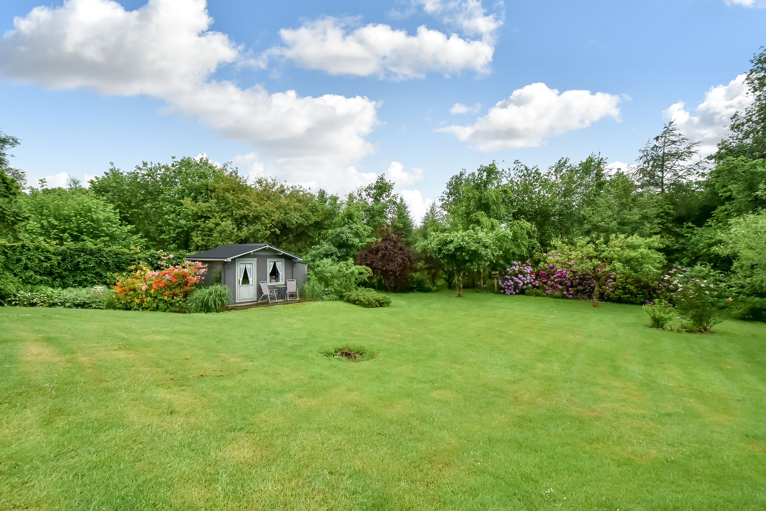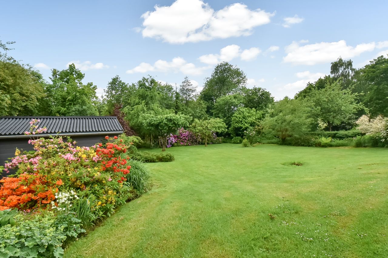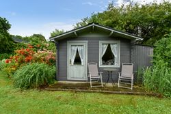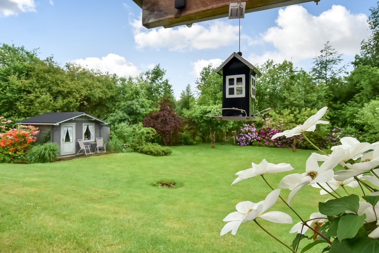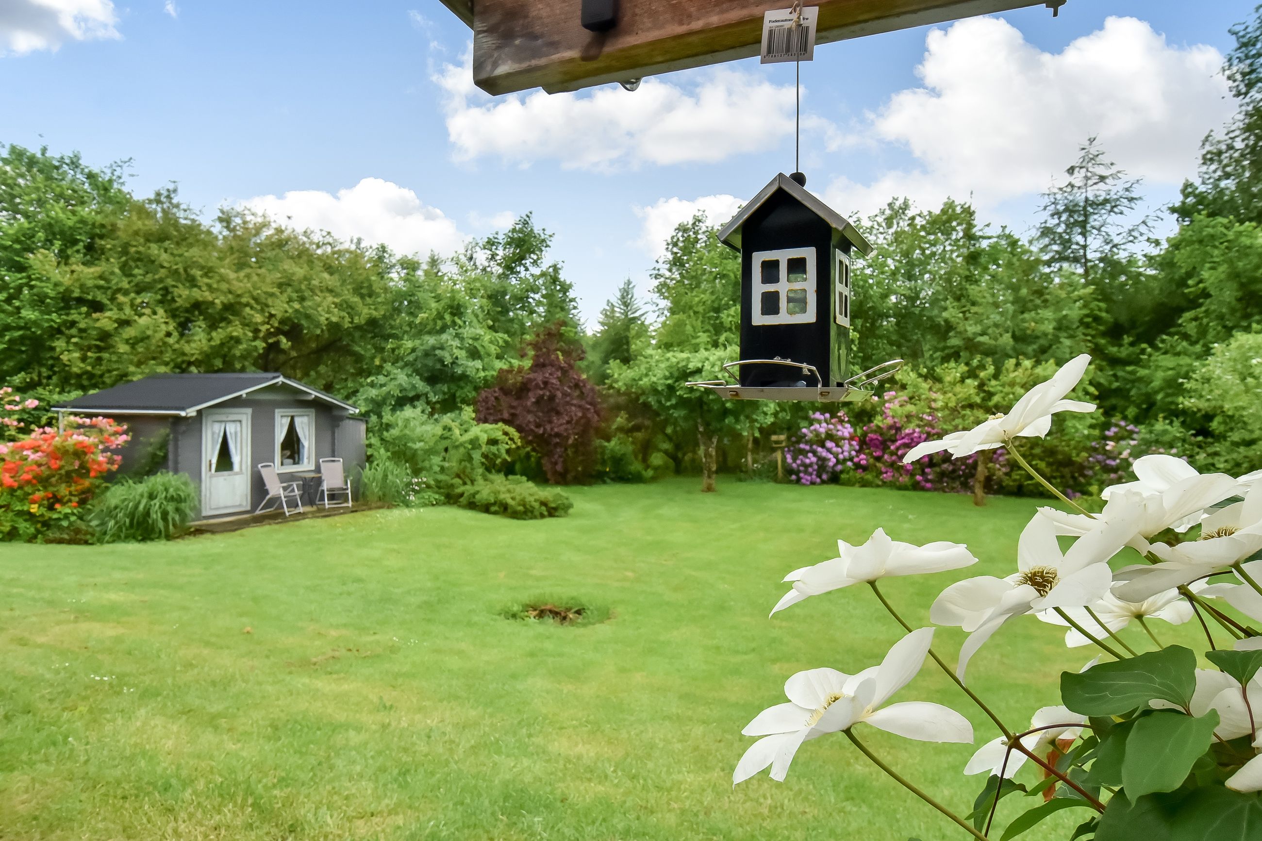 primært af græs og buske, men også med små hyggekroge og et mindre havehus. Nederst hvor haven