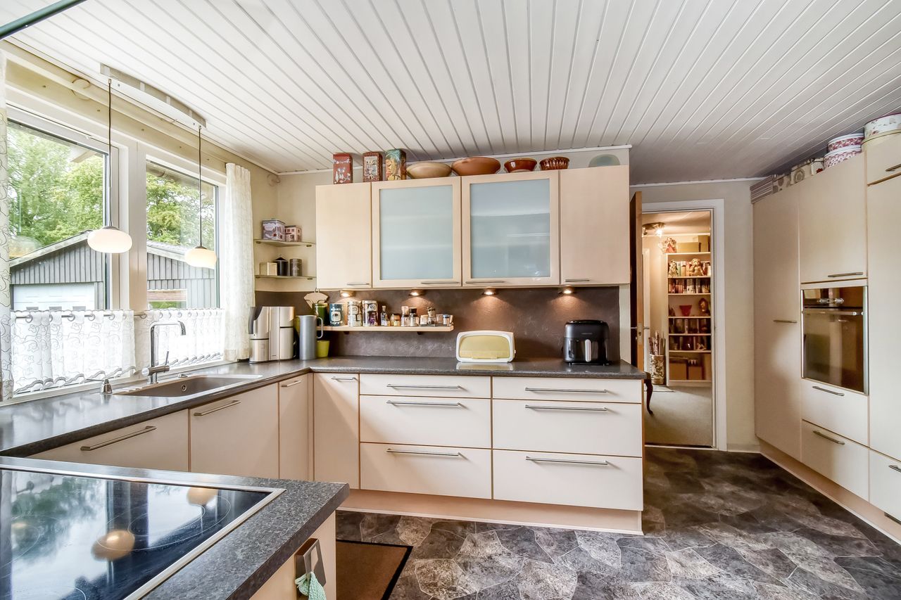 Boligen er fra 1975 og fremstår lys og velholdt. Indretningen er god, og indeholder en stor vinkelstue i