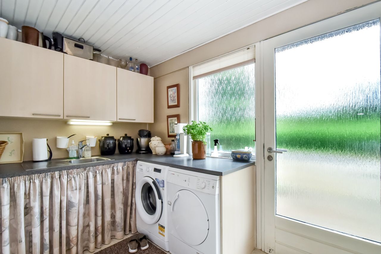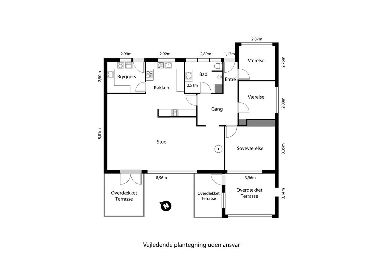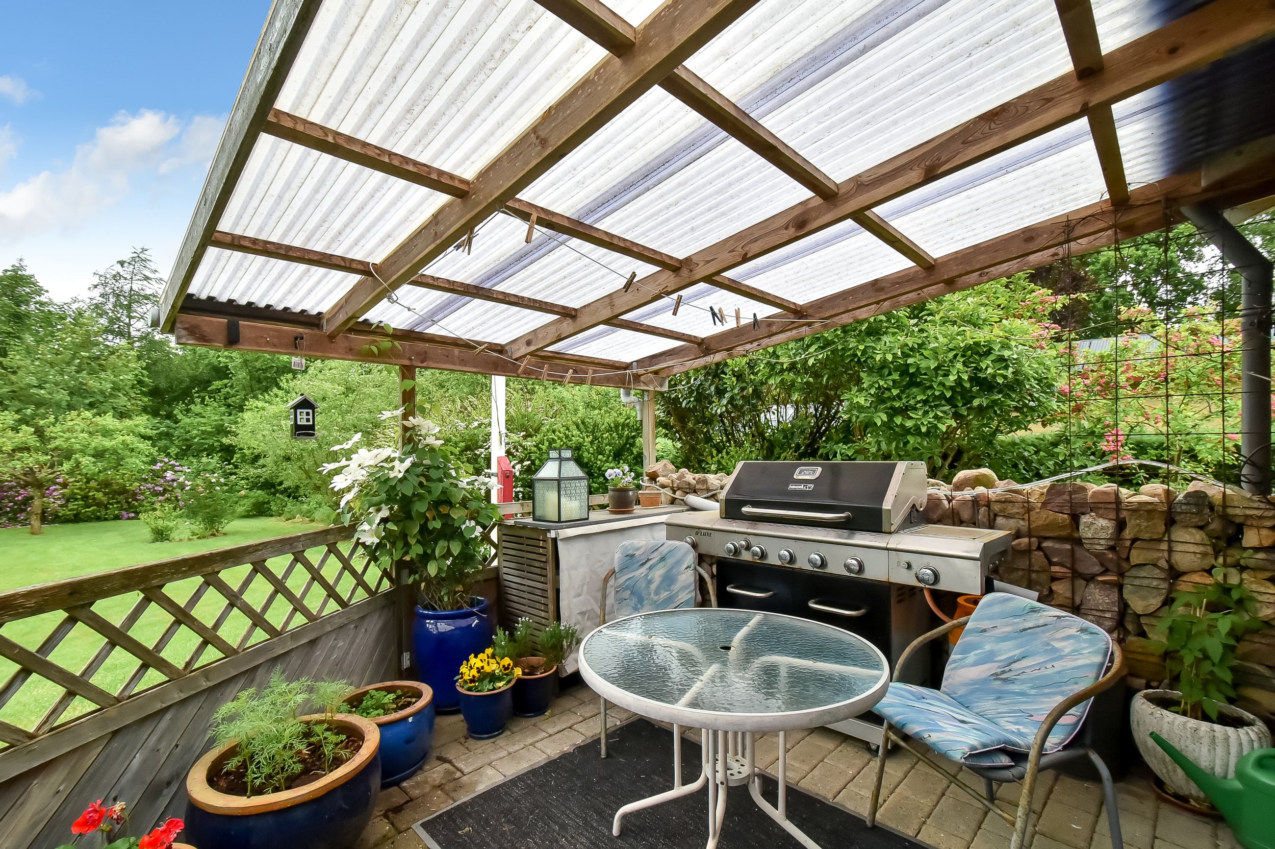 udgang til en hyggelig udestue. Herfra kan man gå videre til haven eller en mindre overdækket terrasse.