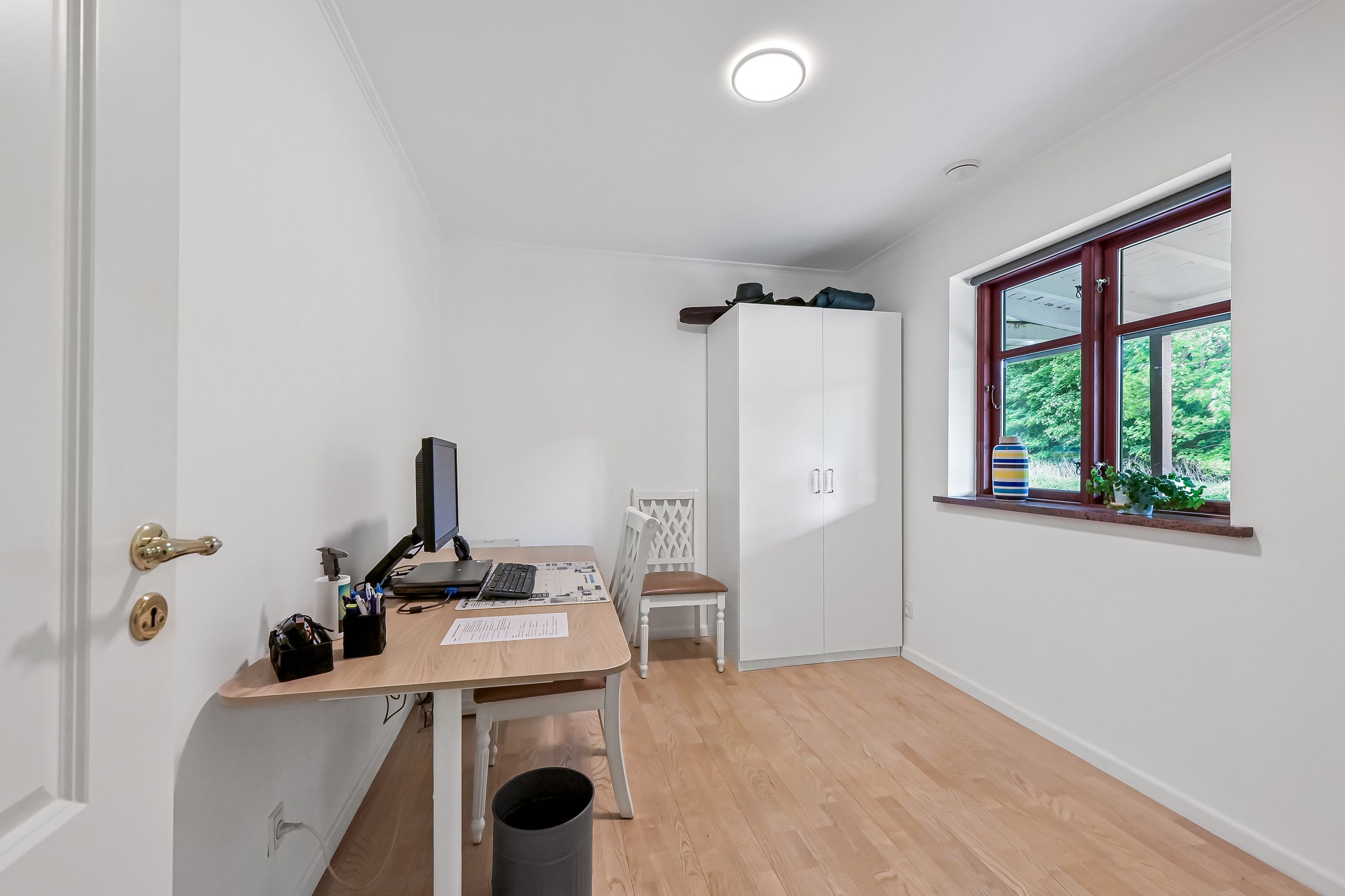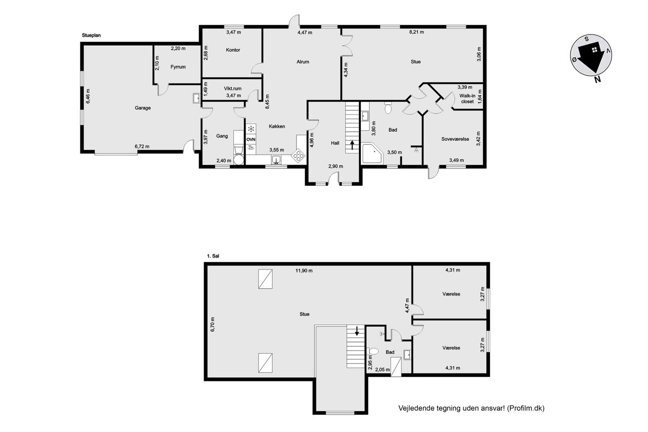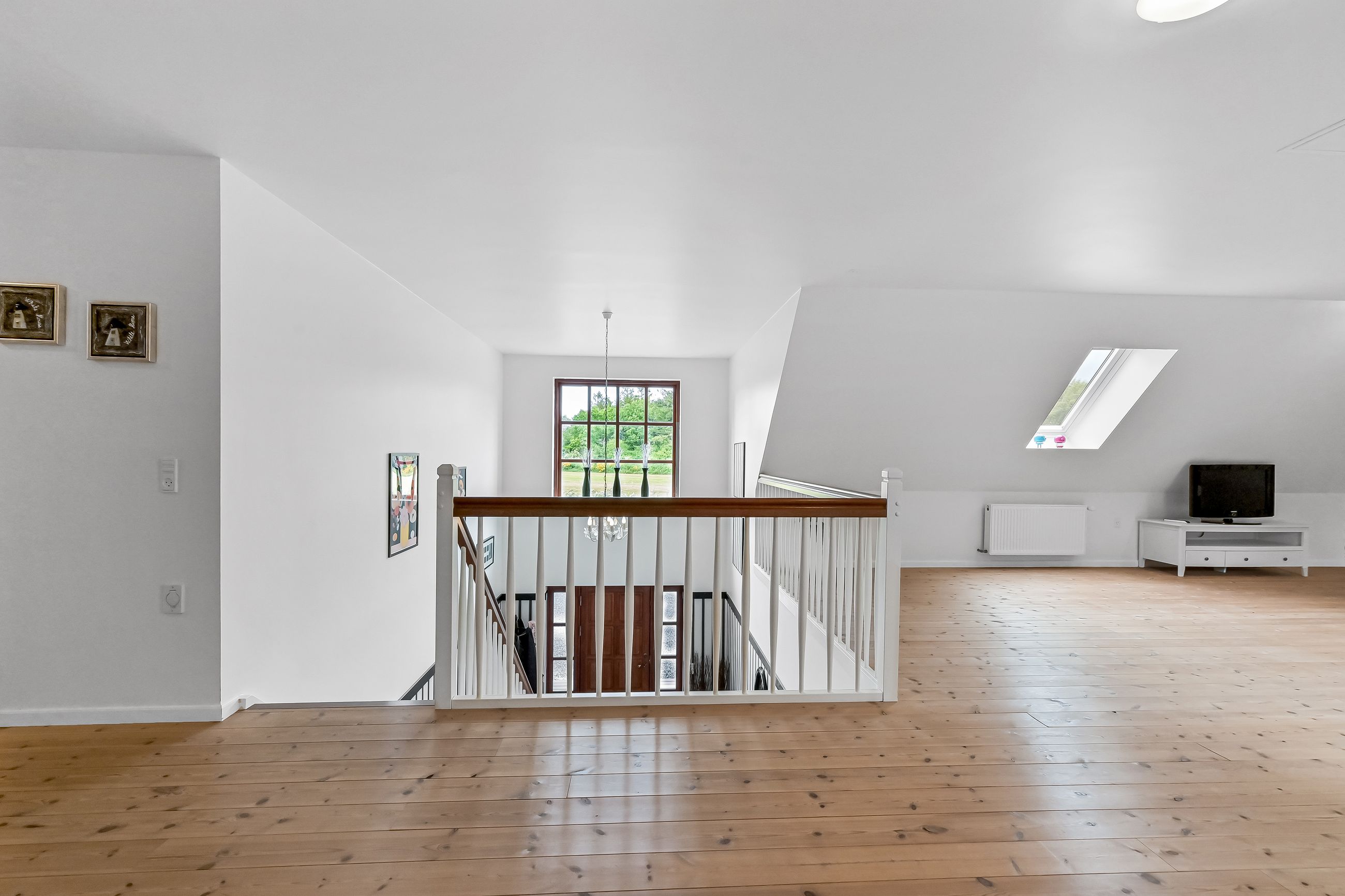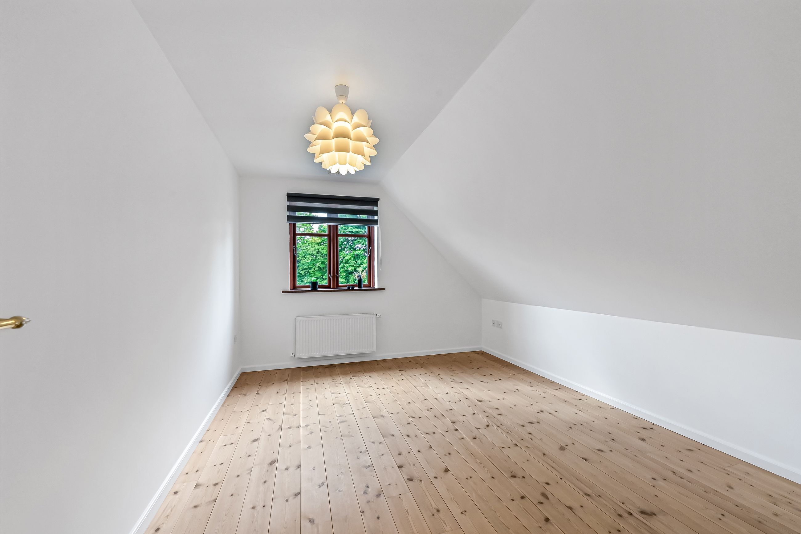 På første sal venter to store værelser samt endnu et badeværelse med bruseniche. En stor stue giver ekstra plads til afslapning eller leg for familiens yngste medlemmer. Hele stueetagen har behagelig gulvvarme, mens radiatorerne på første sal sikrer en jævn varmefordeling i vintermånederne.