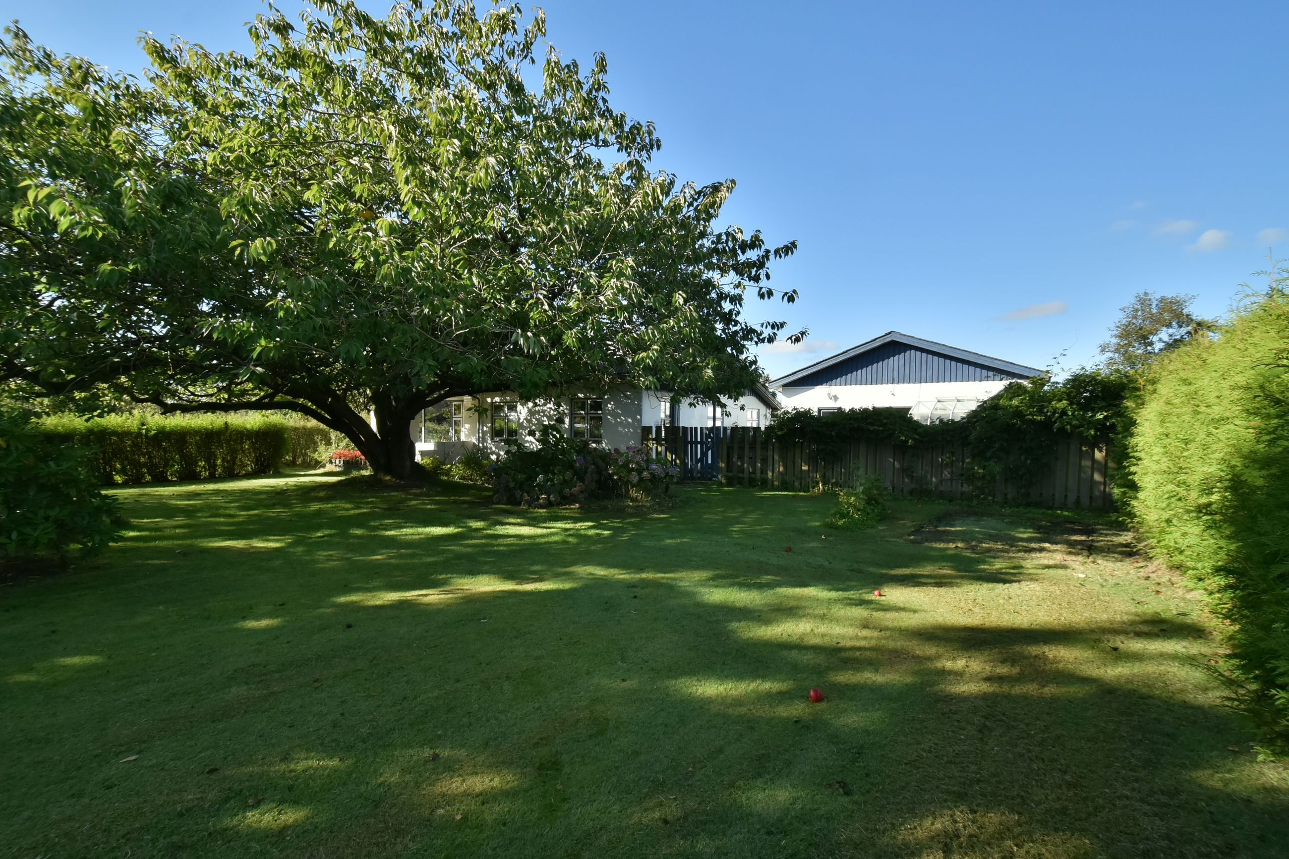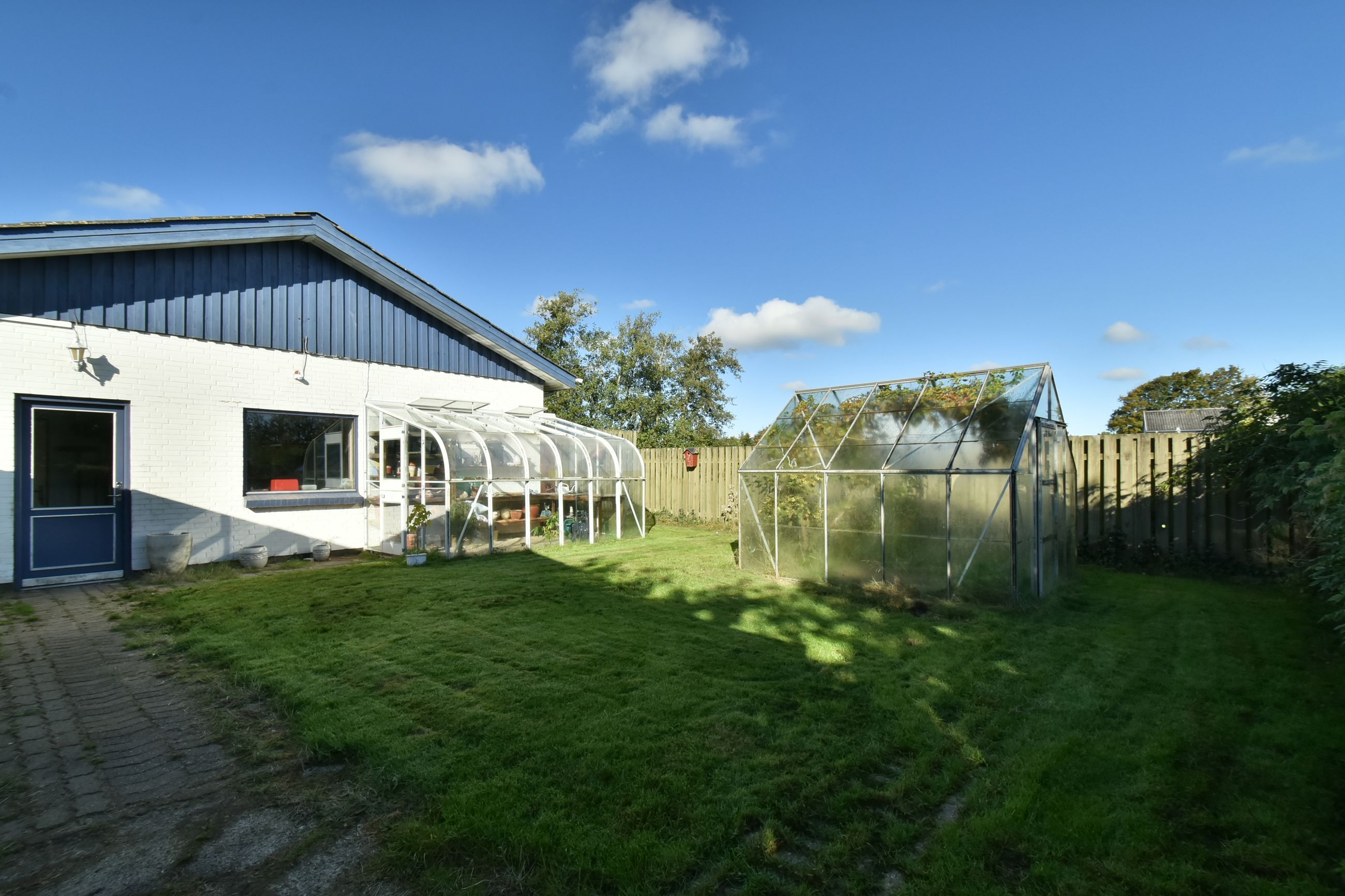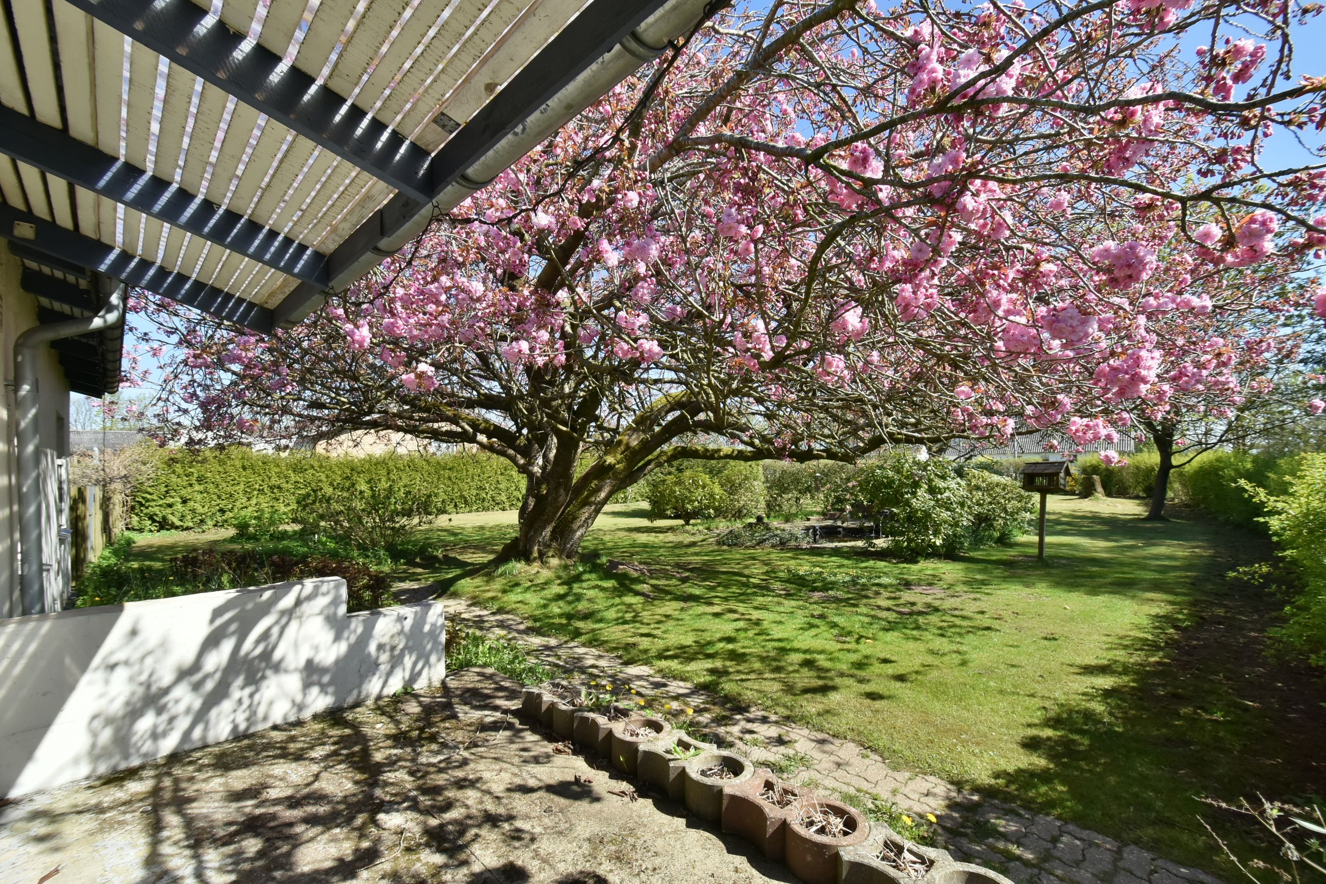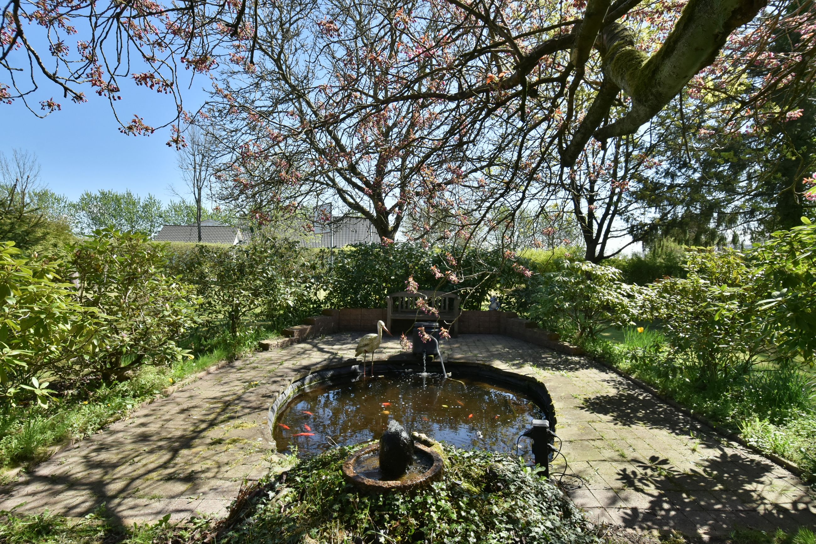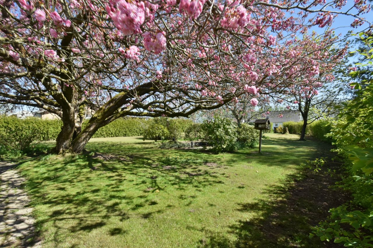 Haven er stor og byder på en række charmerende elementer, herunder en havedam, drivhuse og ikke mindst et meget stort og flot japansk kirsebærtræ, som virkelig er et smukt syn, især når det blomstrer.