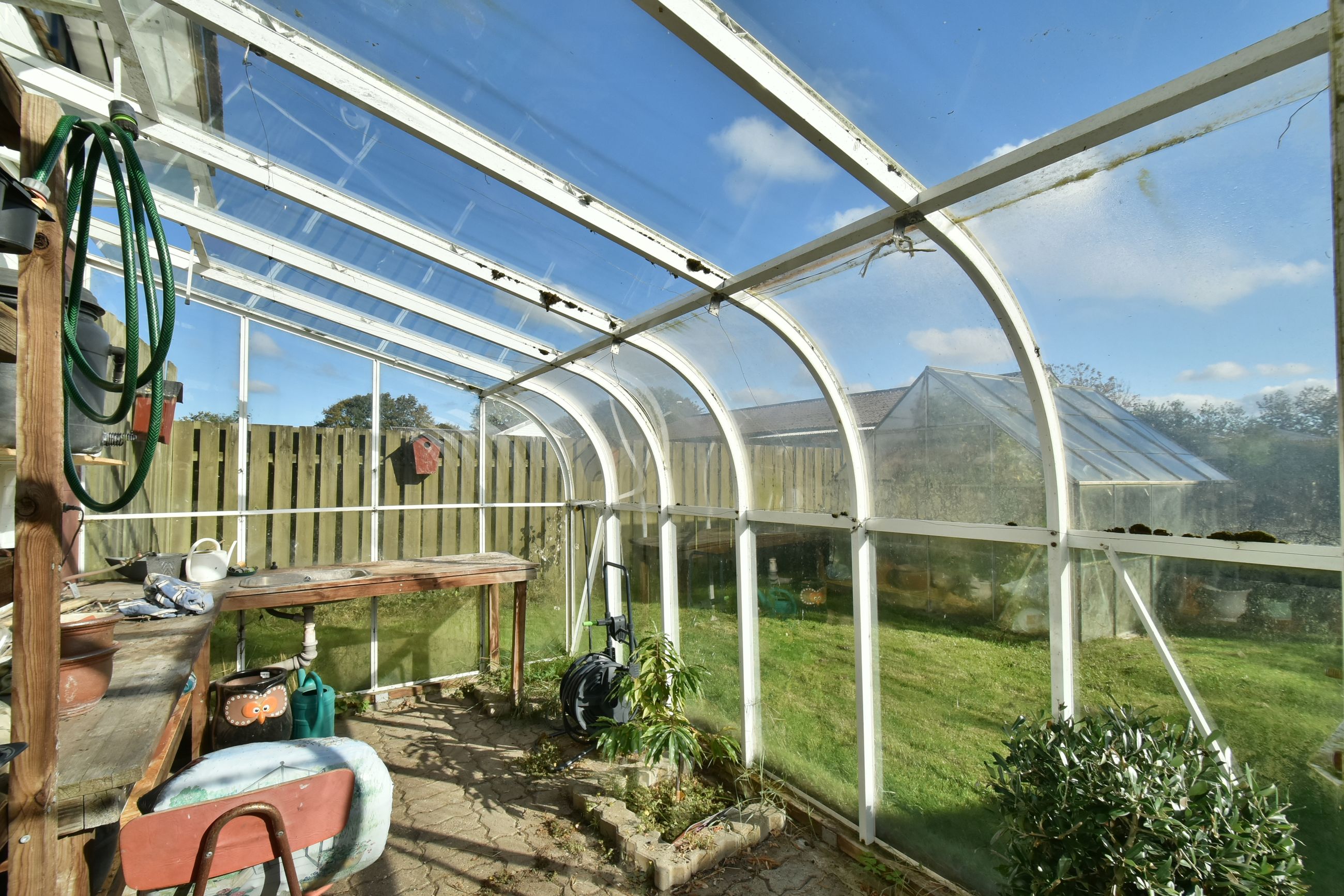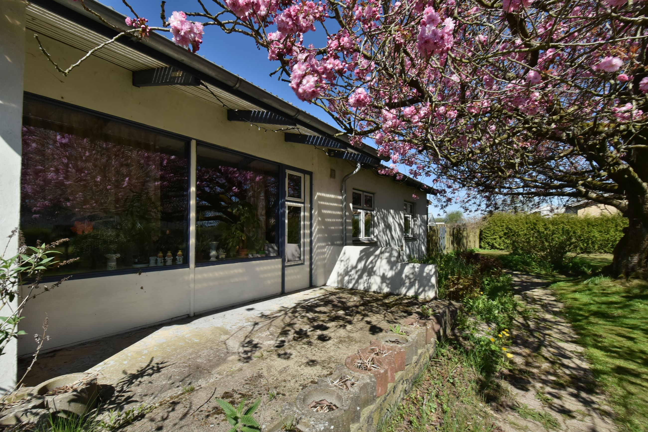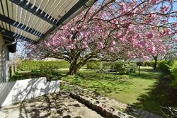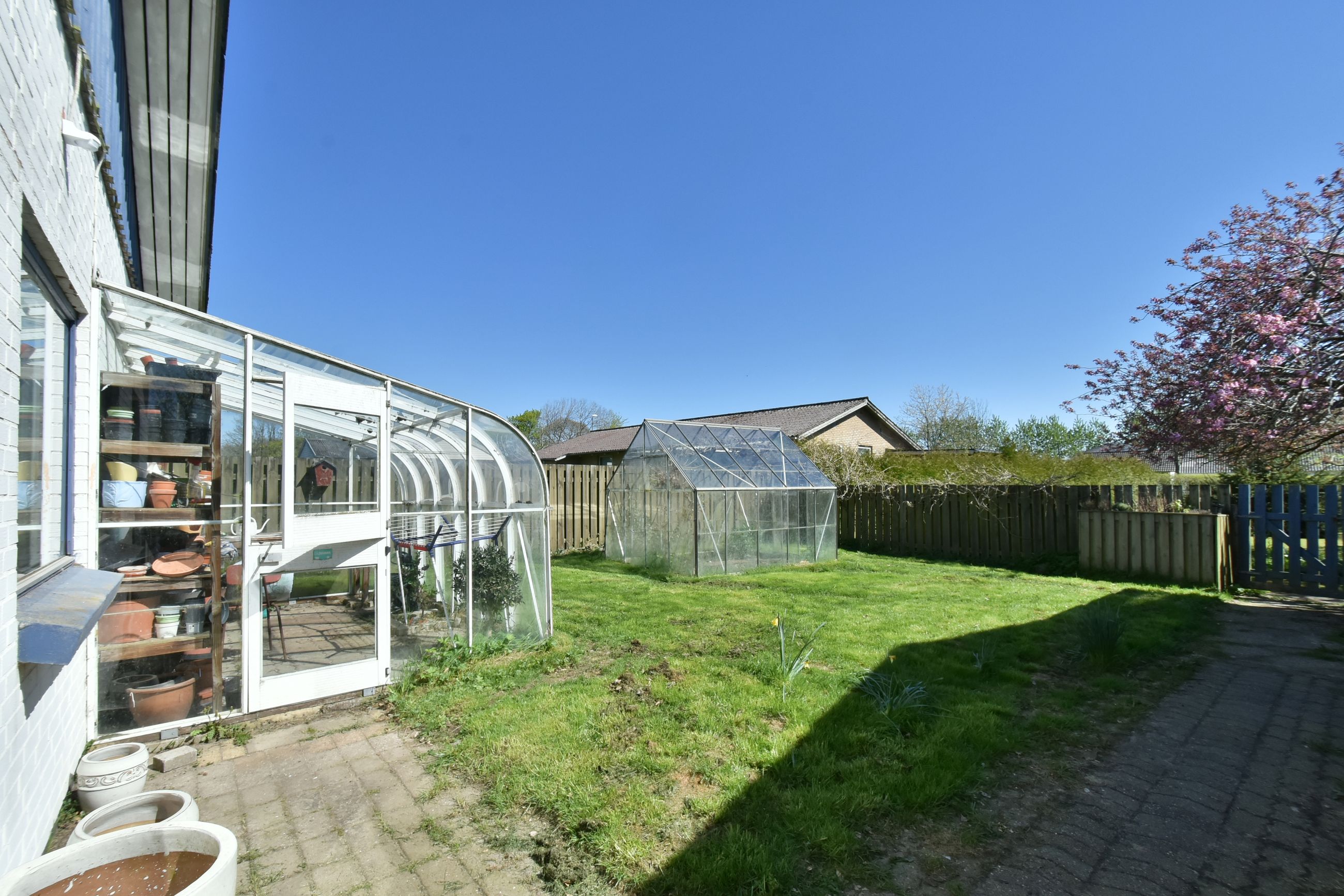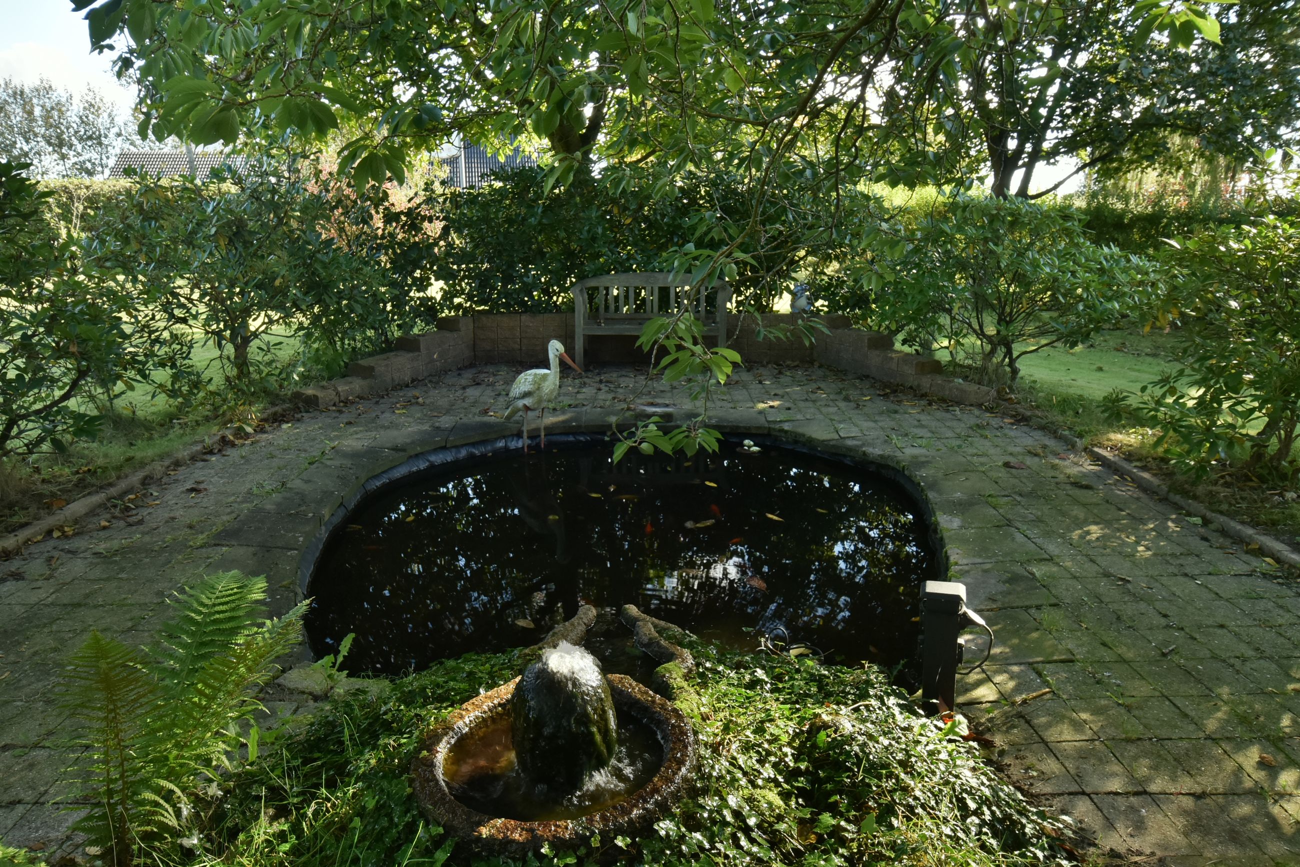 Haven er stor og byder på en række charmerende elementer, herunder en havedam, drivhuse og ikke mindst et meget stort og flot japansk kirsebærtræ, som virkelig er et smukt syn, især når det blomstrer.