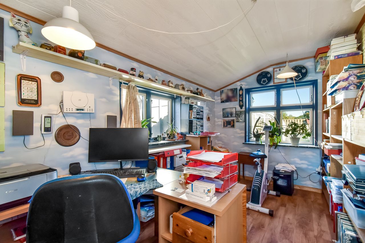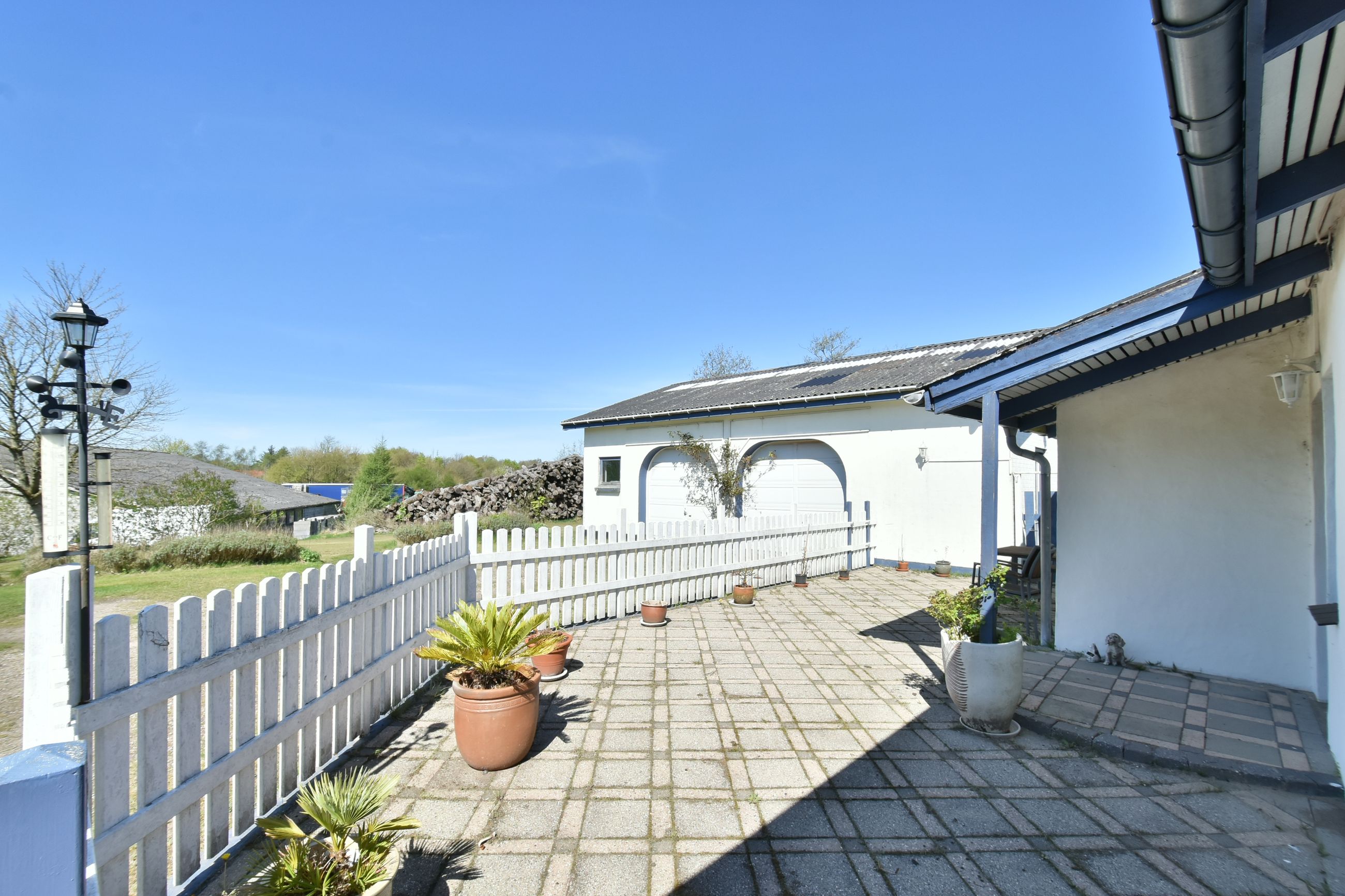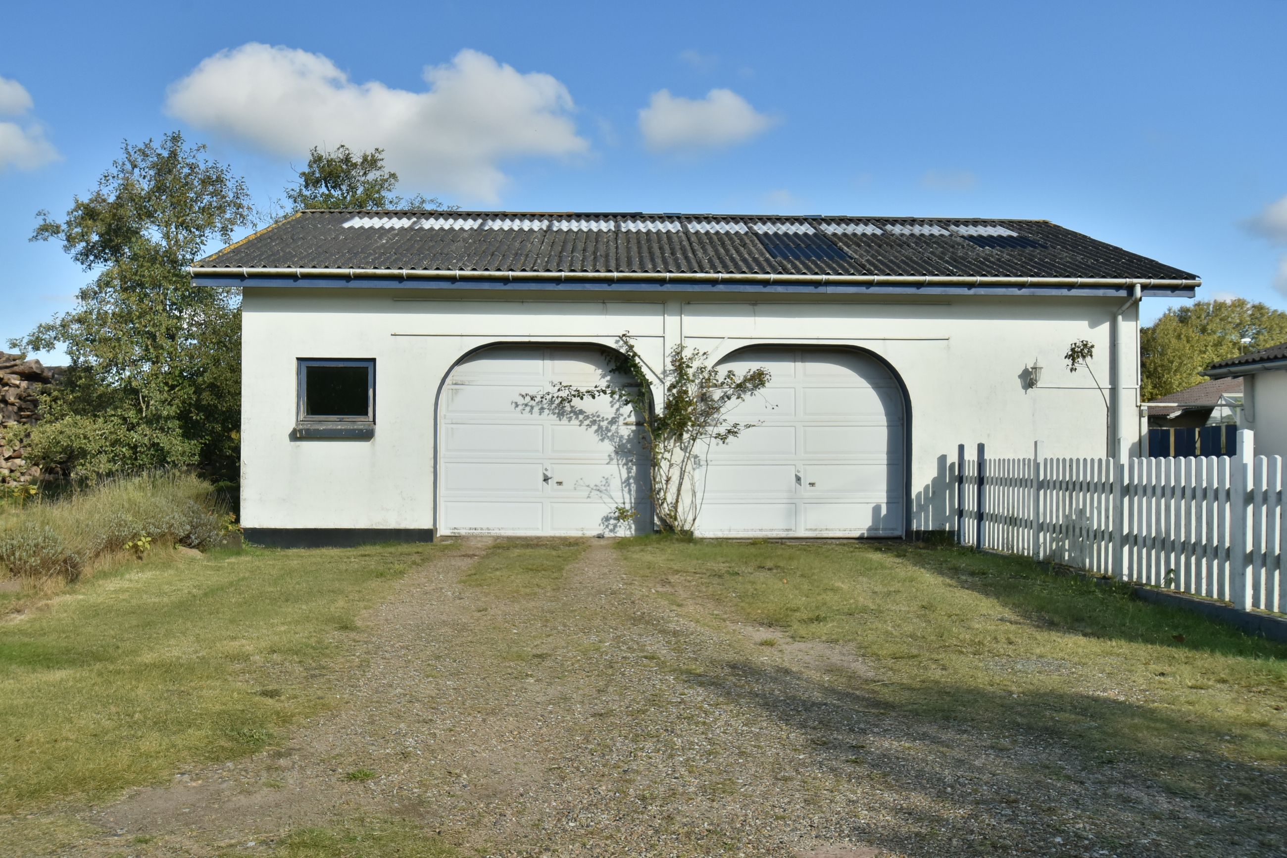 En af ejendommens helt store fordele er den imponerende garagebygning på hele 95 m2. Her er der højt til loftet, hvilket skaber masser af plads og muligheder for forskellige projekter. Garagen er udstyret med to elektriske porte og en værkstedsafdeling, hvilket gør det til det perfekte sted for gør-det-selv-manden eller hobbymekanikeren, som har brug for god plads til både hobby og opbevaring.