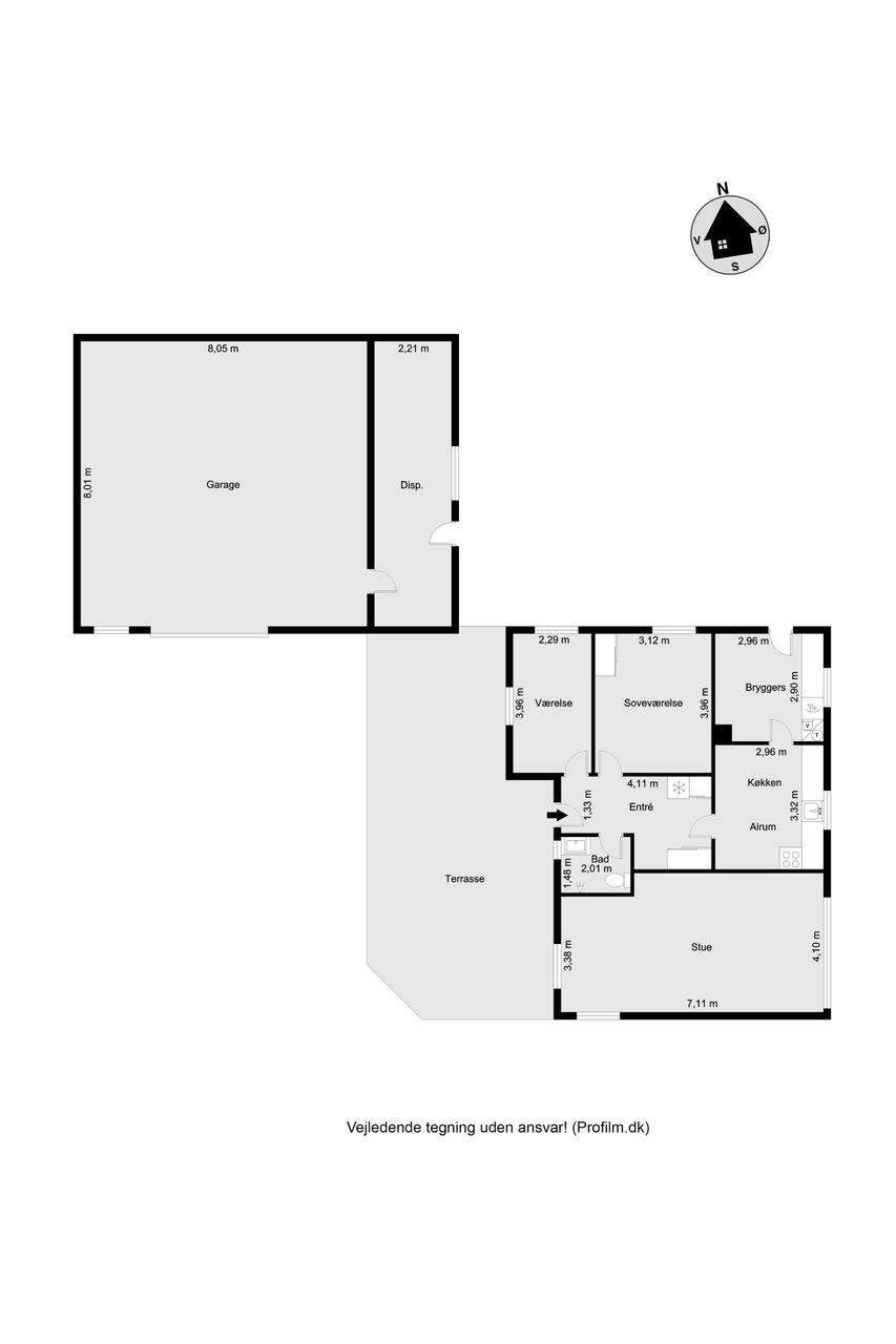 Boligen har et boligareal på 92 m2, og rummene er praktisk fordelt. Du træder ind i en entre, som leder dig videre til et værelse, der enten kan anvendes som kontor eller et ekstra soveværelse, og derudover er der også et stort soveværelse, badeværelse, køkken, stue og bryggers. Boligen er løbende blevet renoveret, og der er blandt andet etableret gulvvarme i stuen og badeværelset. Alle vinduerne er blevet udskiftet.