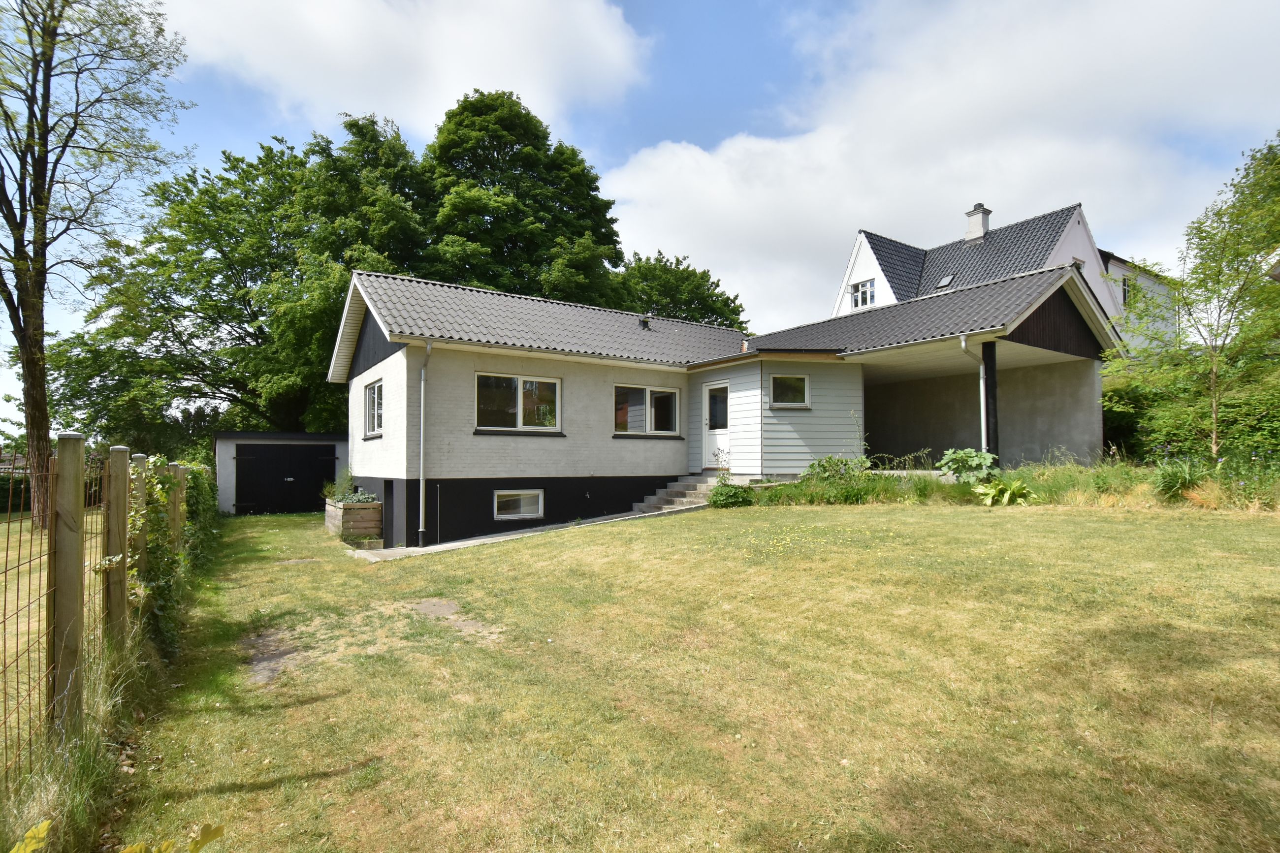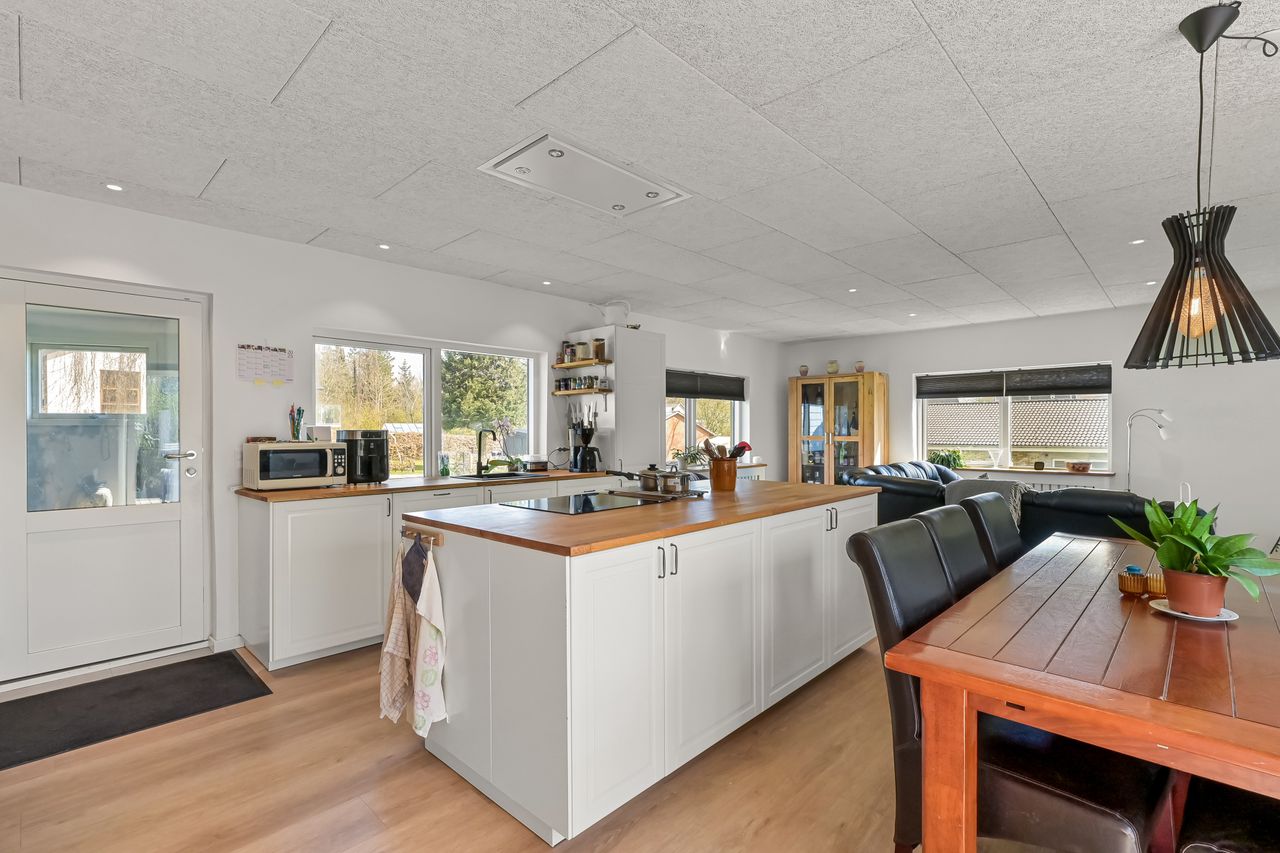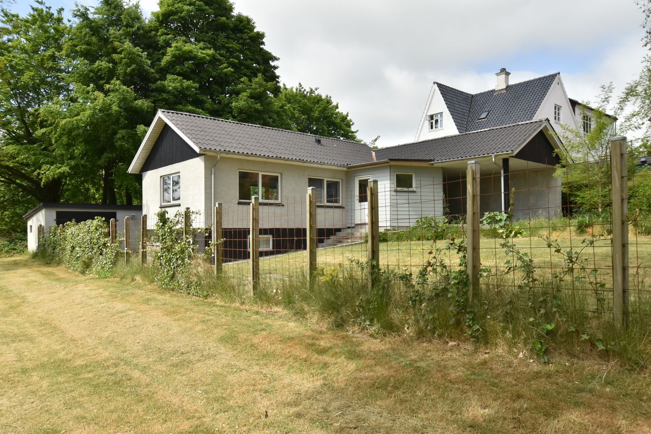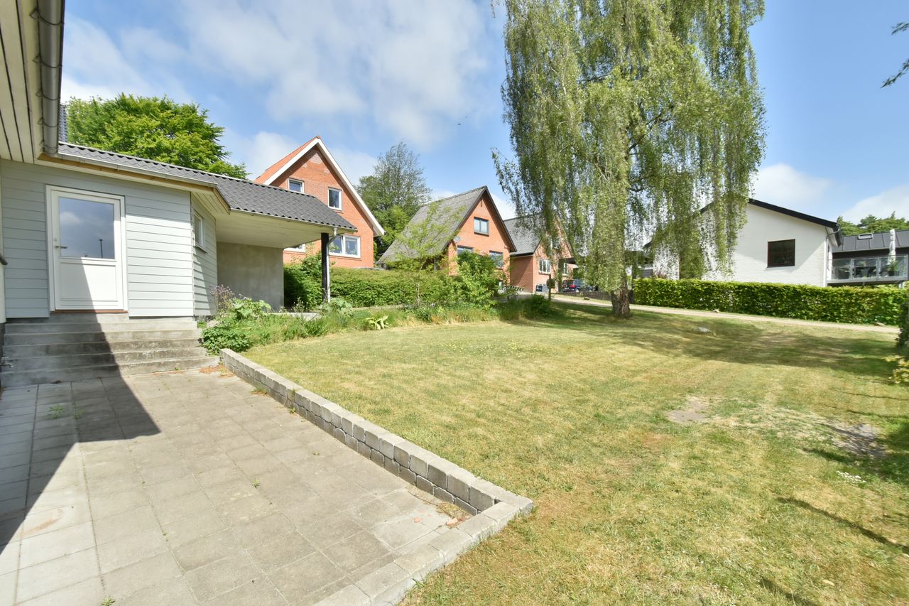 I blandt klassiske huse og etablerede haver, dukker dette fine og velholdte parcelhus op. Et hus med vandskurede facader, hvide vinduer og sorte inddækninger og tag, der samles i en harmonisk byggestil, huset er tilpasset et terræn i forskellige højder både ude og inde. Første møde med huset, er indkørslen, der ender ved huset i en carport, der let kan kombineres til en overdækket terrasse. Irisvej er en lille villavej i Give, nærmest bag midtbyen, som er attraktiv at bo på. Her har man en særdeles bynær beliggenhed, hvor der kun er 2 minutters gang til midtbyen, til togstationen, indkøbsmuligheder og specialbutikker. Endvidere er der kort afstand til Give Plantage og grønne områder. Indenfor i villaen oplever man, ligesom i det udvendige udtryk, et flot moderniseret hus, med lyse og indbydende materialer og detalje valg. Huset rummer blot 74 m2 beboelse, som er veludnyttet i alle funktioner. Huset er bygget i 1½ plan, med en kælder på 20 m2 indbygget under huset og i terrænet. Kælderen består af to disponible rum, som anvendes til vaskerum og depot. På husets stueplan findes selve boligen, hvor der er et stort, lyst og åbent rum, som kombinerer både køkken, alrum og stue i ét. Alt er moderniseret i 2021, med bl.a. flotte gulve, troldtekt lofter, hvide vægge og et charmerende køkken med integrerede hvidevarer. Fra alrummet, har man mod syd/vest terrassedør til haven, til en velanlagt åben træterrasse, hvor sommerdage med familie og venner kan nydes. Bagved alrummet fortsætter samme moderniserede stil i et dejligt soveværelse og et flot badeværelse, også moderniseret i 2021. Haven udenfor kan nemt laves helt privat og ugeneret. Man har store gamle træer nederst, der giver læ og liv bagerst, mens huset skærmer mod resten. Her er nem vedligeholdelse, med en stor græsplæne omkring huset, og hegn og hæk mod naboerne. Nederst i haven er der en garagebygning, som benyttes til værksted og redskabsrum for blandet opbevaring.