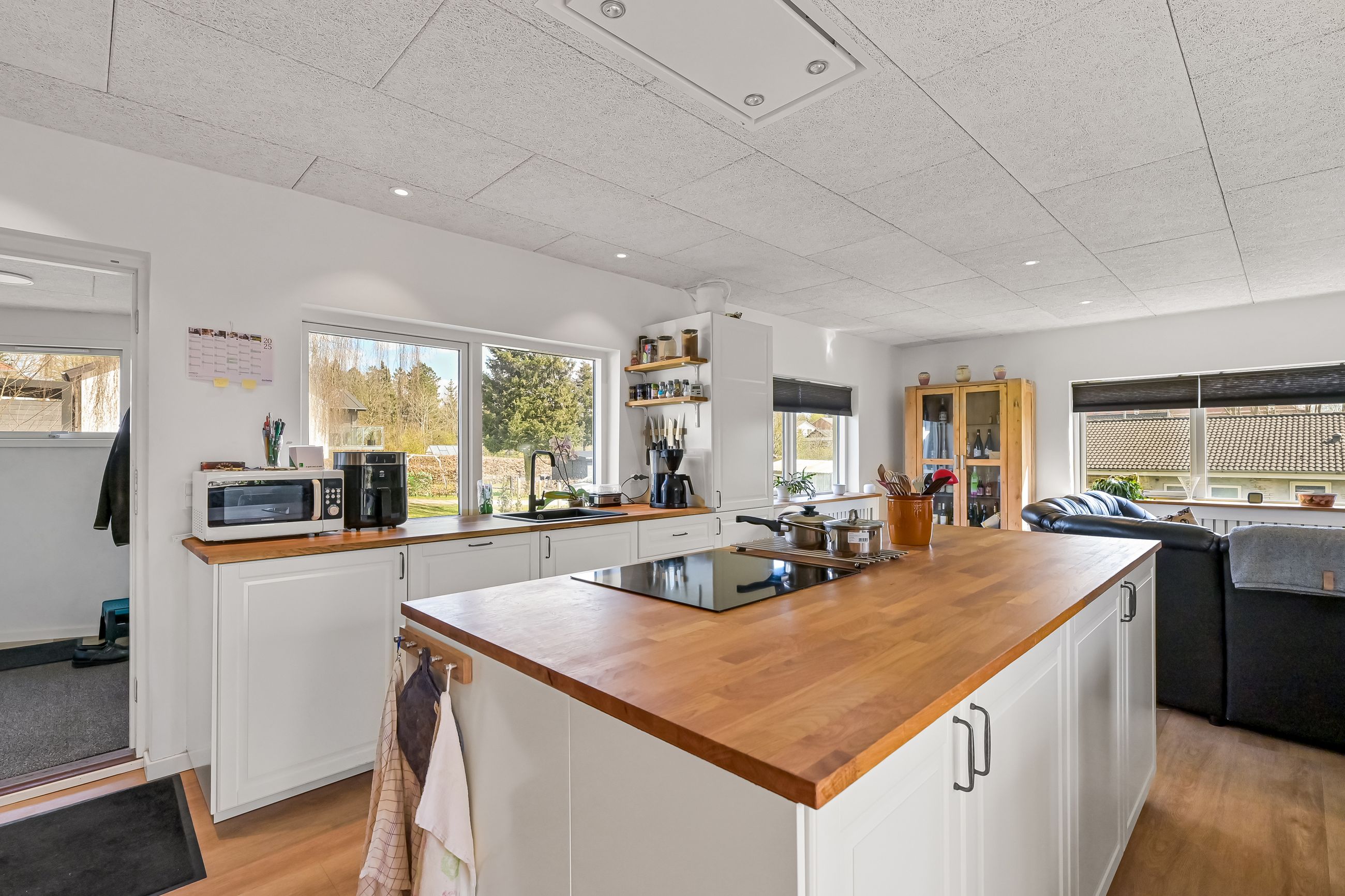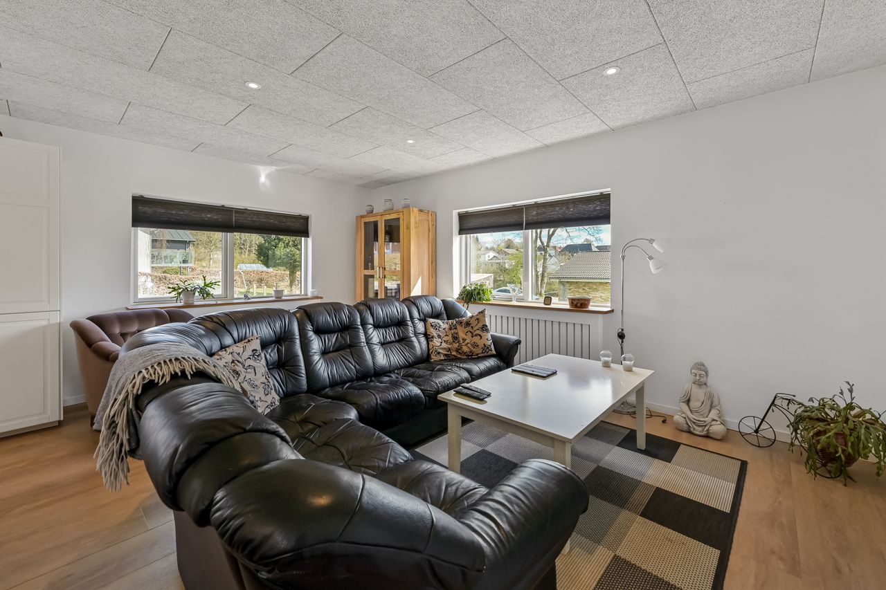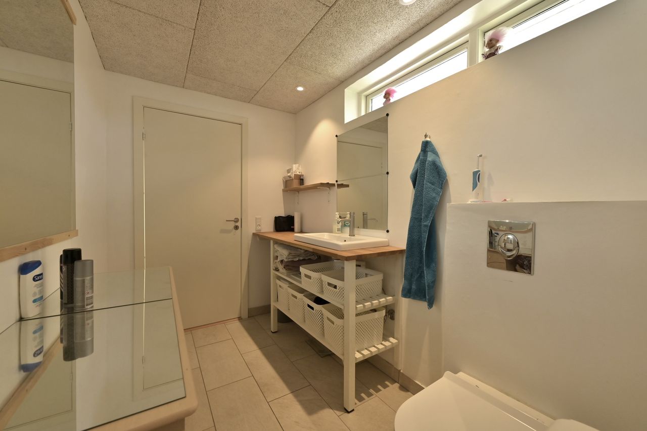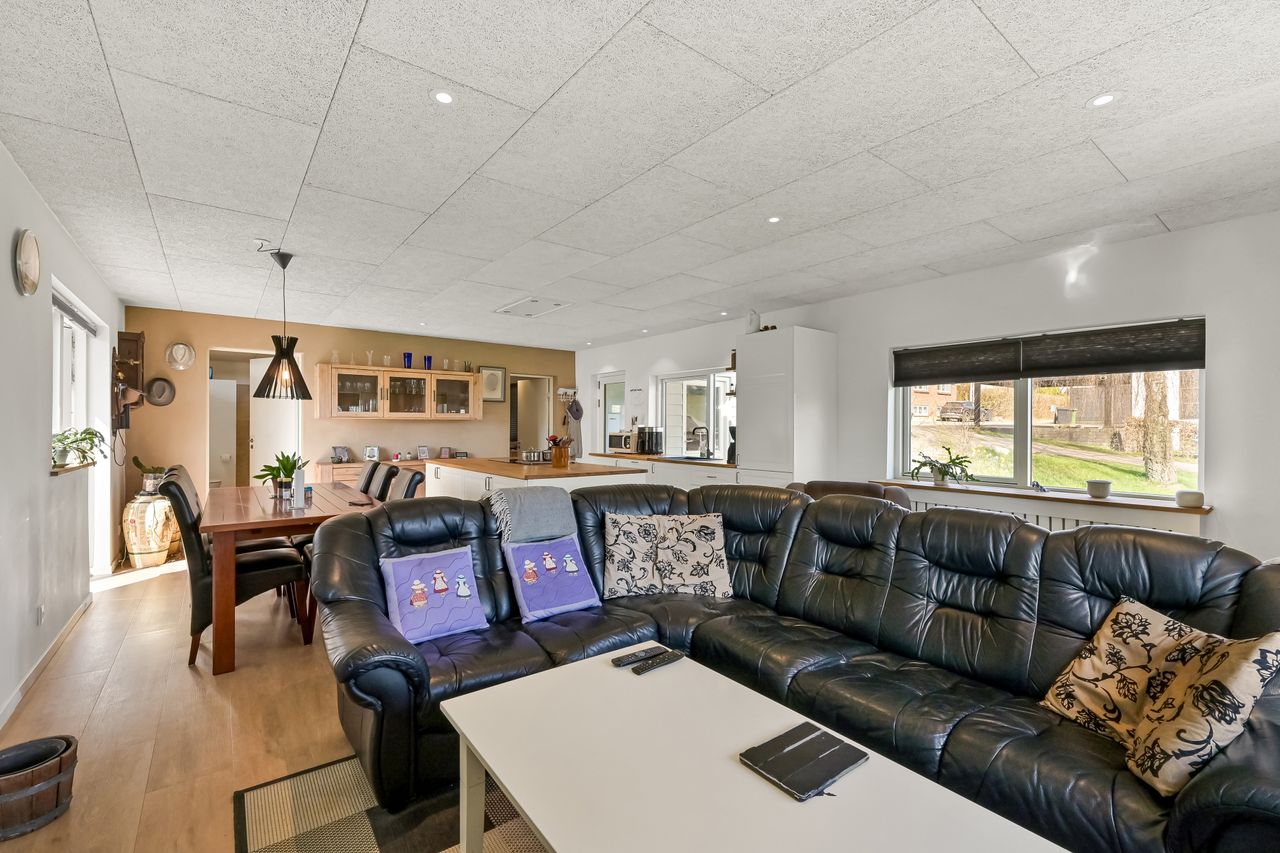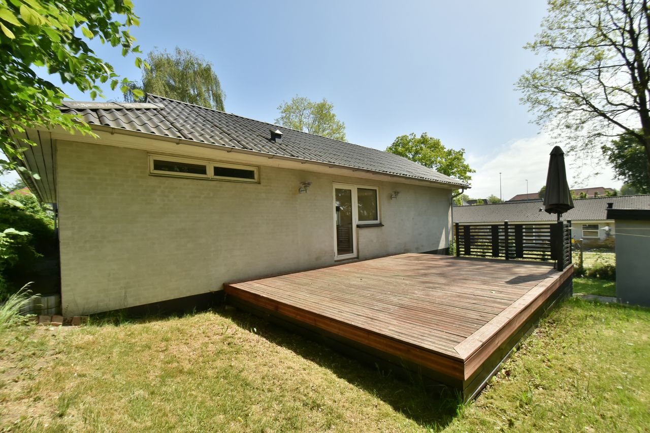 I blandt klassiske huse og etablerede haver, dukker dette fine og velholdte parcelhus op. Et hus med vandskurede facader, hvide vinduer og sorte inddækninger og tag, der samles i en harmonisk byggestil, huset er tilpasset et terræn i forskellige højder både ude og inde. Første møde med huset, er indkørslen, der ender ved huset i en carport, der let kan kombineres til en overdækket terrasse. Irisvej er en lille villavej i Give, nærmest bag midtbyen, som er attraktiv at bo på. Her har man en særdeles bynær beliggenhed, hvor der kun er 2 minutters gang til midtbyen, til togstationen, indkøbsmuligheder og specialbutikker. Endvidere er der kort afstand til Give Plantage og grønne områder. Indenfor i villaen oplever man, ligesom i det udvendige udtryk, et flot moderniseret hus, med lyse og indbydende materialer og detalje valg. Huset rummer blot 74 m2 beboelse, som er veludnyttet i alle funktioner. Huset er bygget i 1½ plan, med en kælder på 20 m2 indbygget under huset og i terrænet. Kælderen består af to disponible rum, som anvendes til vaskerum og depot. På husets stueplan findes selve boligen, hvor der er et stort, lyst og åbent rum, som kombinerer både køkken, alrum og stue i ét. Alt er moderniseret i 2021, med bl.a. flotte gulve, troldtekt lofter, hvide vægge og et charmerende køkken med integrerede hvidevarer. Fra alrummet, har man mod syd/vest terrassedør til haven, til en velanlagt åben træterrasse, hvor sommerdage med familie og venner kan nydes. Bagved alrummet fortsætter samme moderniserede stil i et dejligt soveværelse og et flot badeværelse, også moderniseret i 2021. Haven udenfor kan nemt laves helt privat og ugeneret. Man har store gamle træer nederst, der giver læ og liv bagerst, mens huset skærmer mod resten. Her er nem vedligeholdelse, med en stor græsplæne omkring huset, og hegn og hæk mod naboerne. Nederst i haven er der en garagebygning, som benyttes til værksted og redskabsrum for blandet opbevaring.