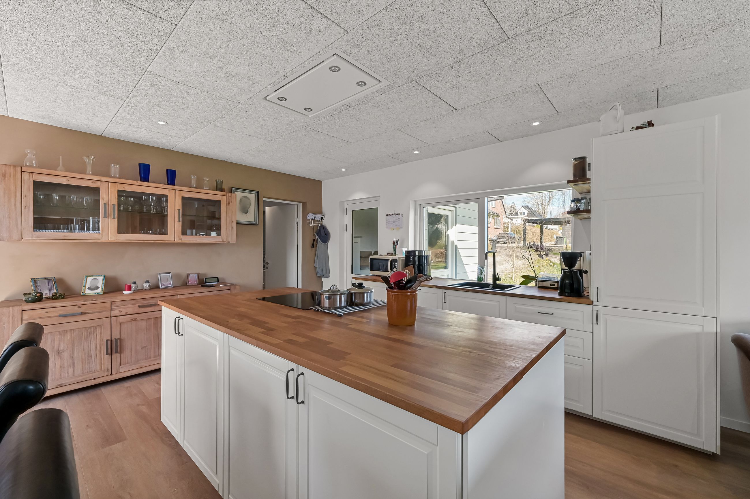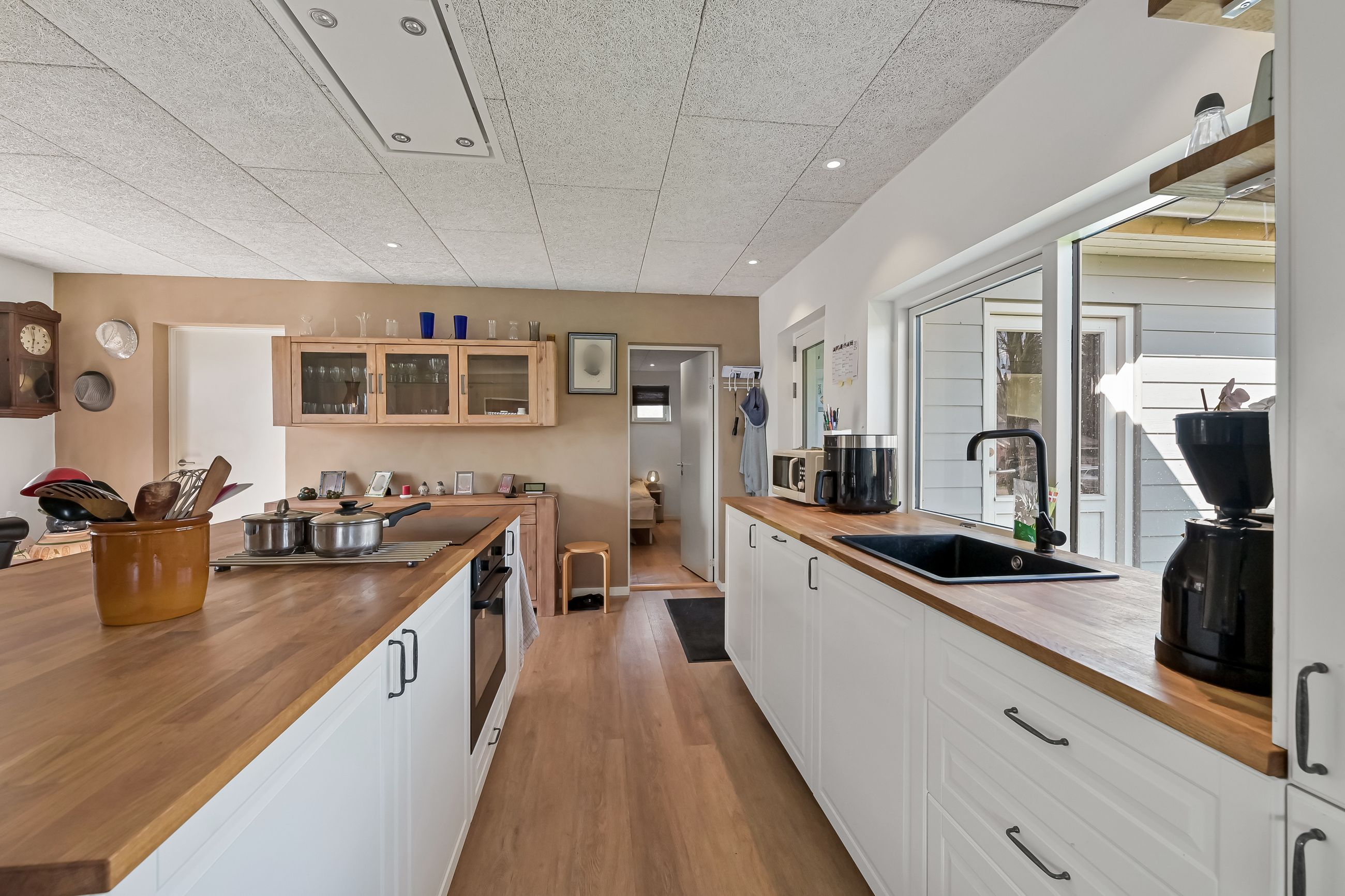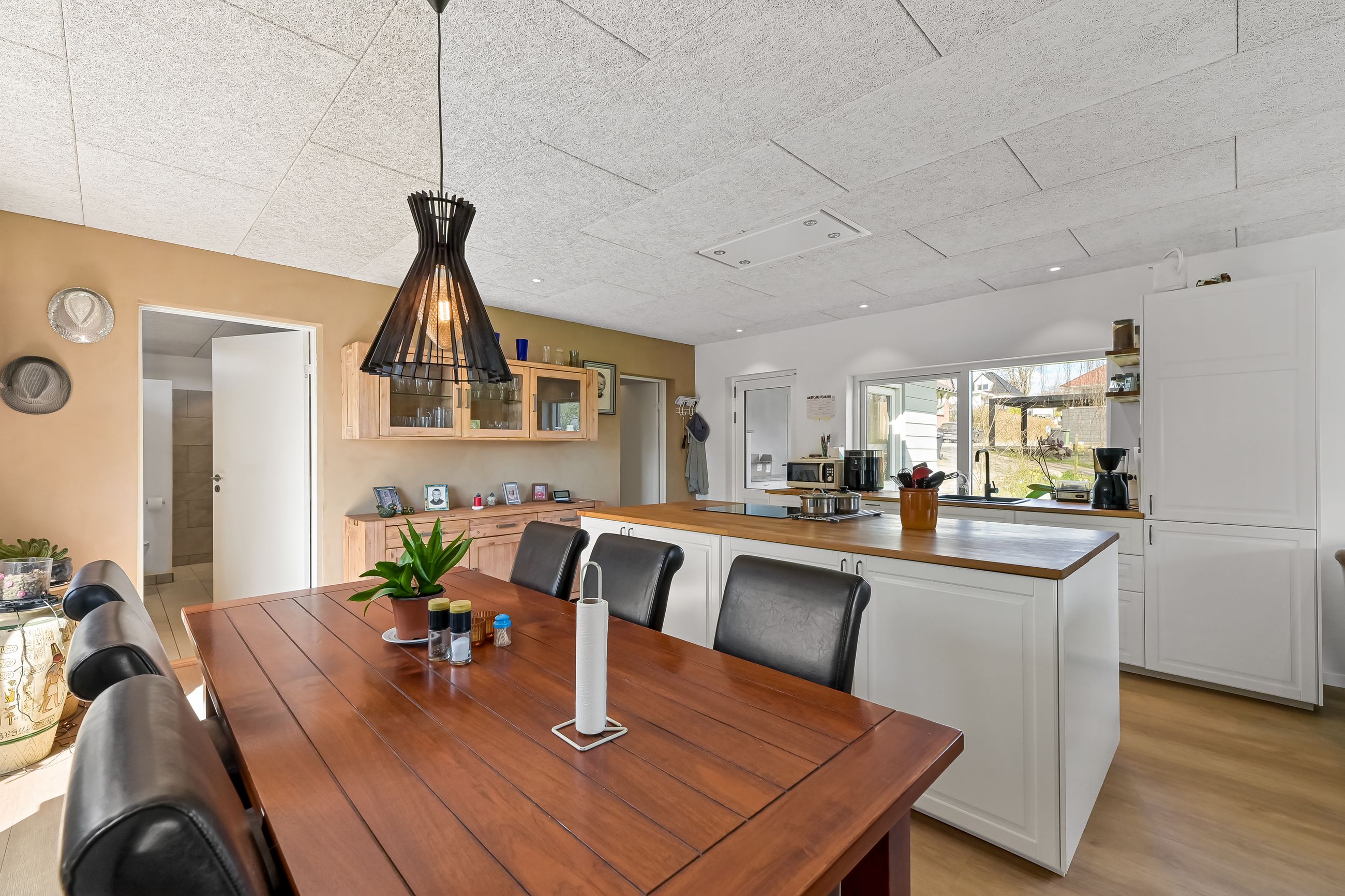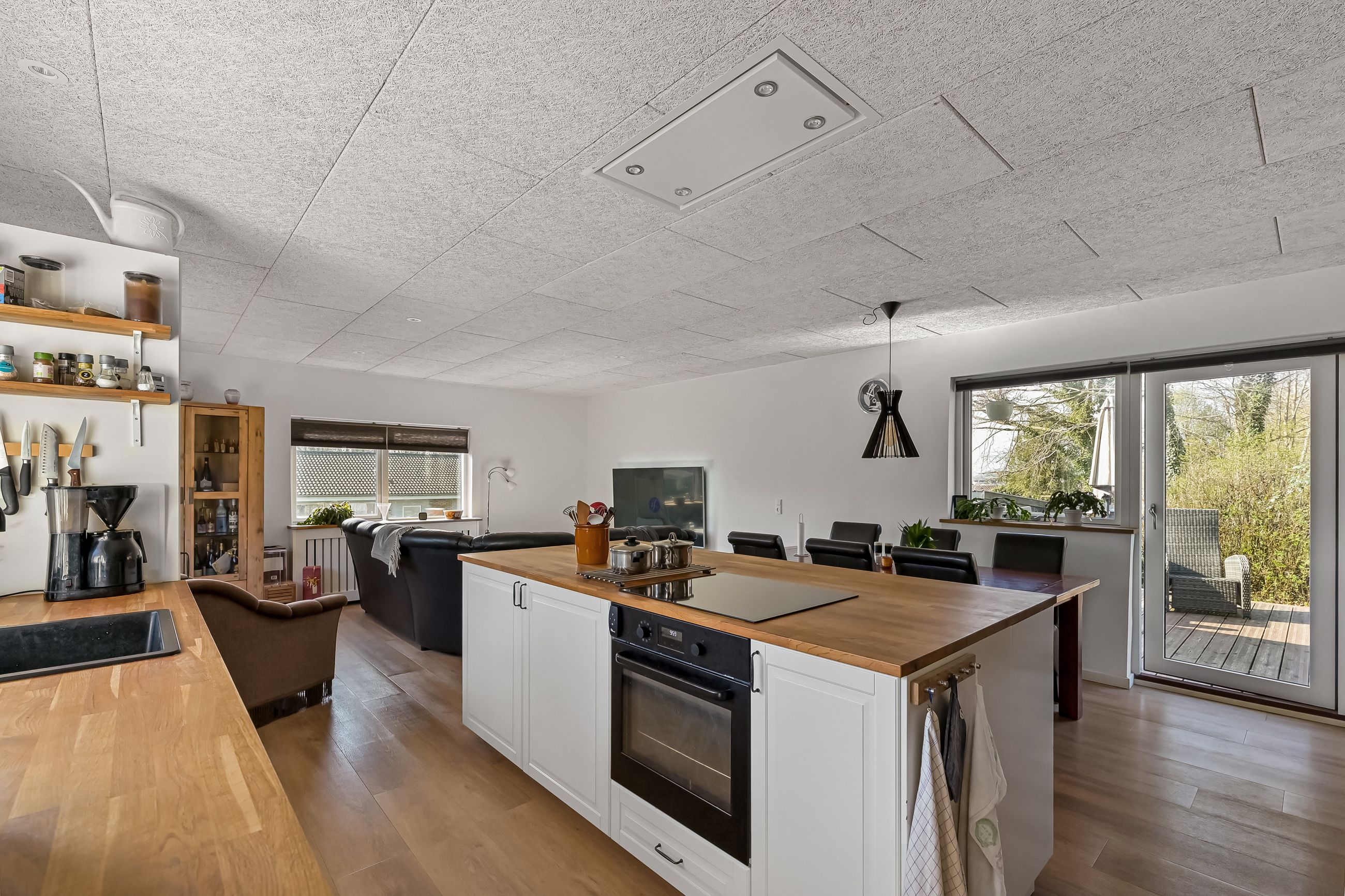 I blandt klassiske huse og etablerede haver, dukker dette fine og velholdte parcelhus op. Et hus med vandskurede facader, hvide vinduer og sorte inddækninger og tag, der samles i en harmonisk byggestil, huset er tilpasset et terræn i forskellige højder både ude og inde. Første møde med huset, er indkørslen, der ender ved huset i en carport, der let kan kombineres til en overdækket terrasse. Irisvej er en lille villavej i Give, nærmest bag midtbyen, som er attraktiv at bo på. Her har man en særdeles bynær beliggenhed, hvor der kun er 2 minutters gang til midtbyen, til togstationen, indkøbsmuligheder og specialbutikker. Endvidere er der kort afstand til Give Plantage og grønne områder. Indenfor i villaen oplever man, ligesom i det udvendige udtryk, et flot moderniseret hus, med lyse og indbydende materialer og detalje valg. Huset rummer blot 74 m2 beboelse, som er veludnyttet i alle funktioner. Huset er bygget i 1½ plan, med en kælder på 20 m2 indbygget under huset og i terrænet. Kælderen består af to disponible rum, som anvendes til vaskerum og depot. På husets stueplan findes selve boligen, hvor der er et stort, lyst og åbent rum, som kombinerer både køkken, alrum og stue i ét. Alt er moderniseret i 2021, med bl.a. flotte gulve, troldtekt lofter, hvide vægge og et charmerende køkken med integrerede hvidevarer. Fra alrummet, har man mod syd/vest terrassedør til haven, til en velanlagt åben træterrasse, hvor sommerdage med familie og venner kan nydes. Bagved alrummet fortsætter samme moderniserede stil i et dejligt soveværelse og et flot badeværelse, også moderniseret i 2021. Haven udenfor kan nemt laves helt privat og ugeneret. Man har store gamle træer nederst, der giver læ og liv bagerst, mens huset skærmer mod resten. Her er nem vedligeholdelse, med en stor græsplæne omkring huset, og hegn og hæk mod naboerne. Nederst i haven er der en garagebygning, som benyttes til værksted og redskabsrum for blandet opbevaring.