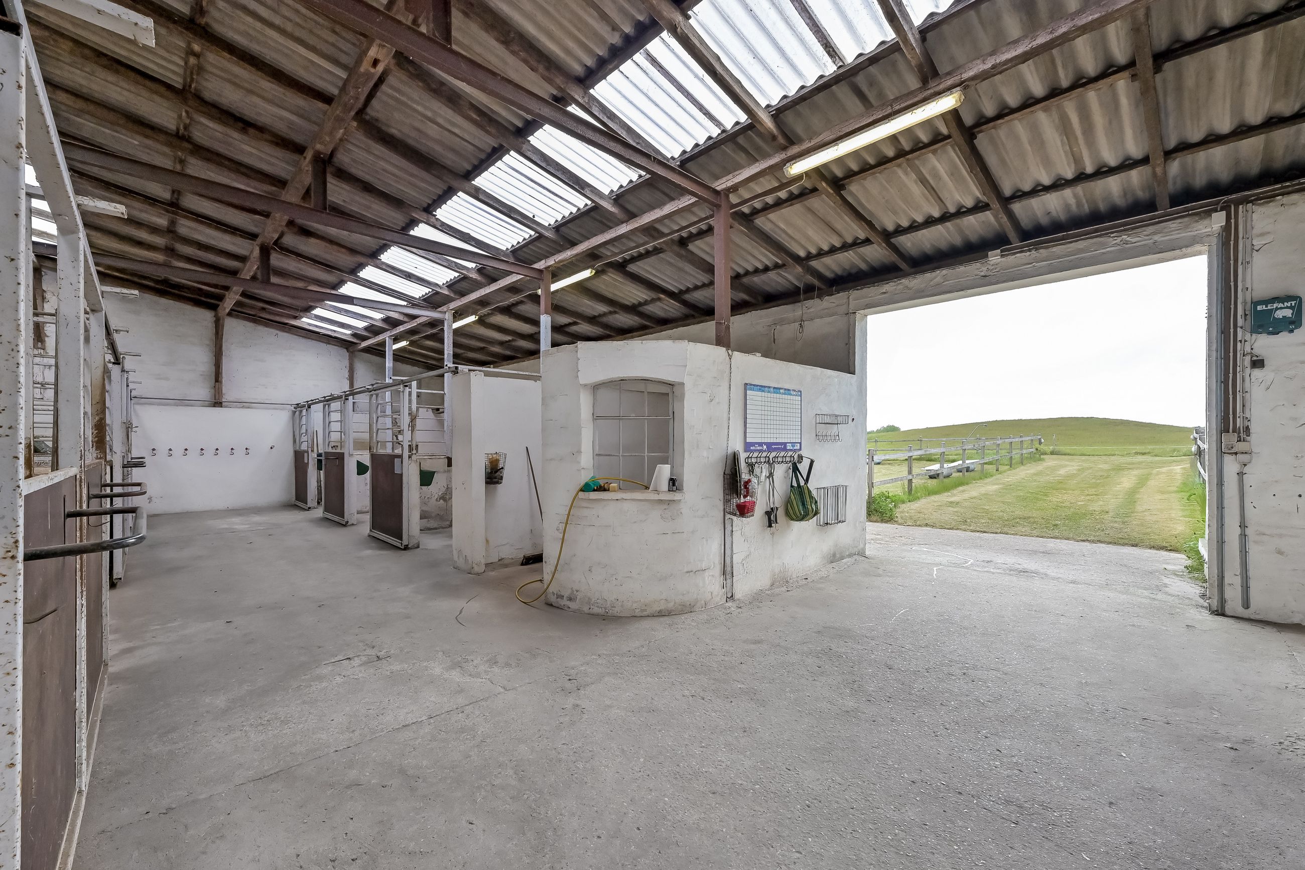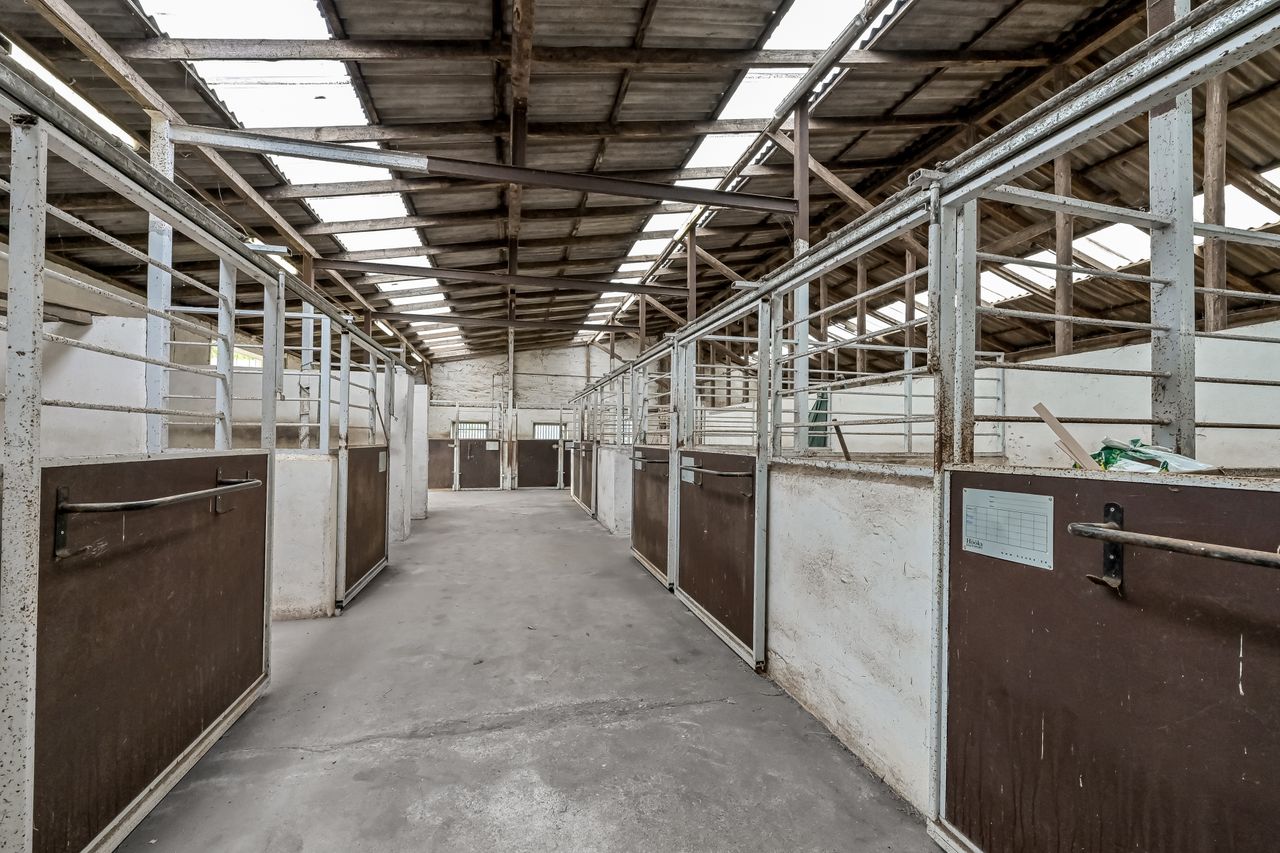 Til hestefaciliteter hører en stor højloftet stald med ti bokse, vaskeplads, sadelrum samt plads til hø og halm. Dertil kommer en ridebane med lys, der måler 60×20 meter, og en travbane på 600 meter med grus-/sandunderlag. To indrettede folde med indlagt vand gør det nemt at drive hestehold.