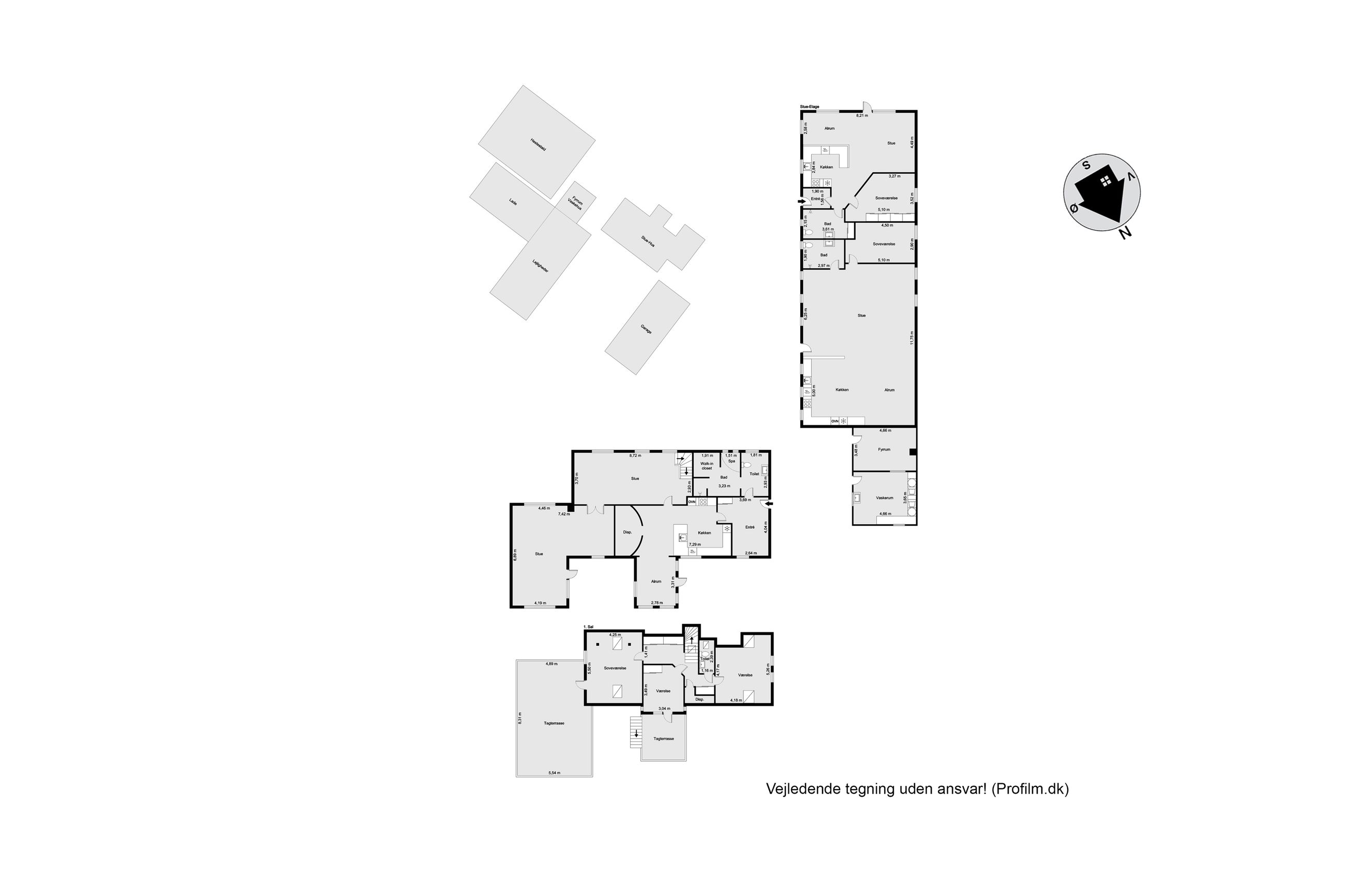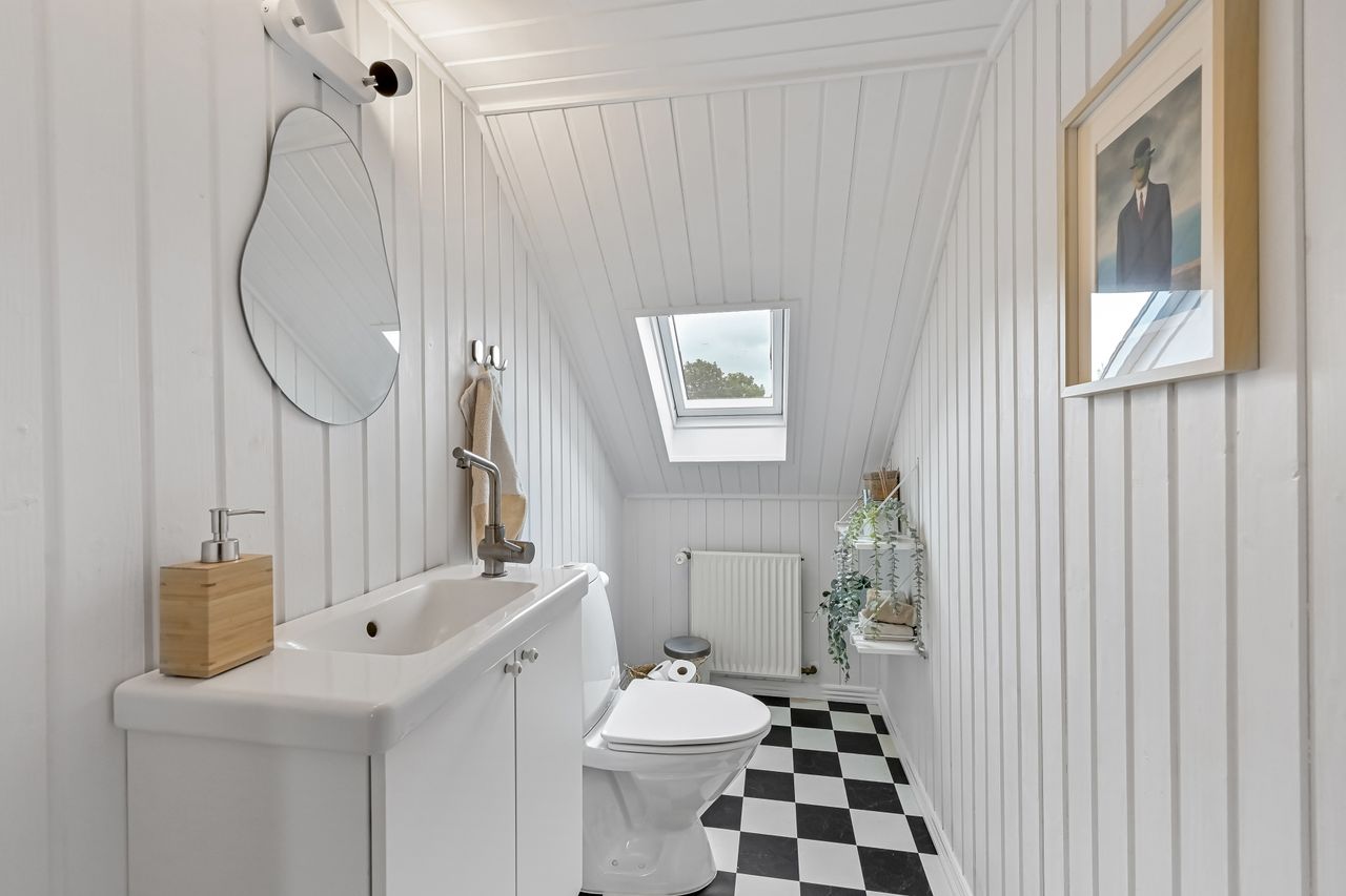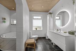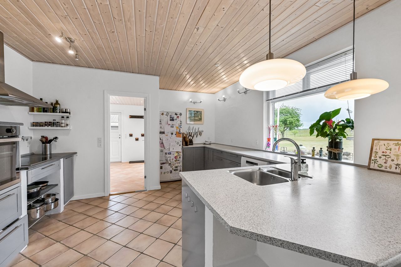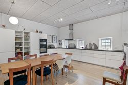 Ud over boligdelen byder ejendommen på flere funktionelle udhusbygninger: et selvstændigt fyrrum, vaskehus, dobbelt garage, lagerrum samt et stort værksted. Denne samling af bygninger giver gode muligheder for opbevaring, håndværk eller mindre erhvervsdrift.
