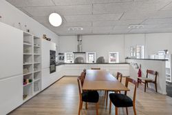 Møllebjergvej 8 er en rummelig landejendom med en skøn beliggenhed. Ejendommen er ideel til den store familie eller som kombineret bolig- og erhvervsejendom. Hovedhuset rummer 230 m2, suppleret af to selvstændige lejligheder på henholdsvis 80 og 140 m2 i en sekundær bygning. Den lille lejlighed fungerer aktuelt som beboelse eller lejeobjekt, mens den større lejlighed anvendes som AirBnB med en god årlig lejeindtægt (i 2024 på ca 29.500 kr.). Denne lejlighed kan naturligvis også benyttes til hobbyformål, gildesal eller aktivitetsrum m.v.