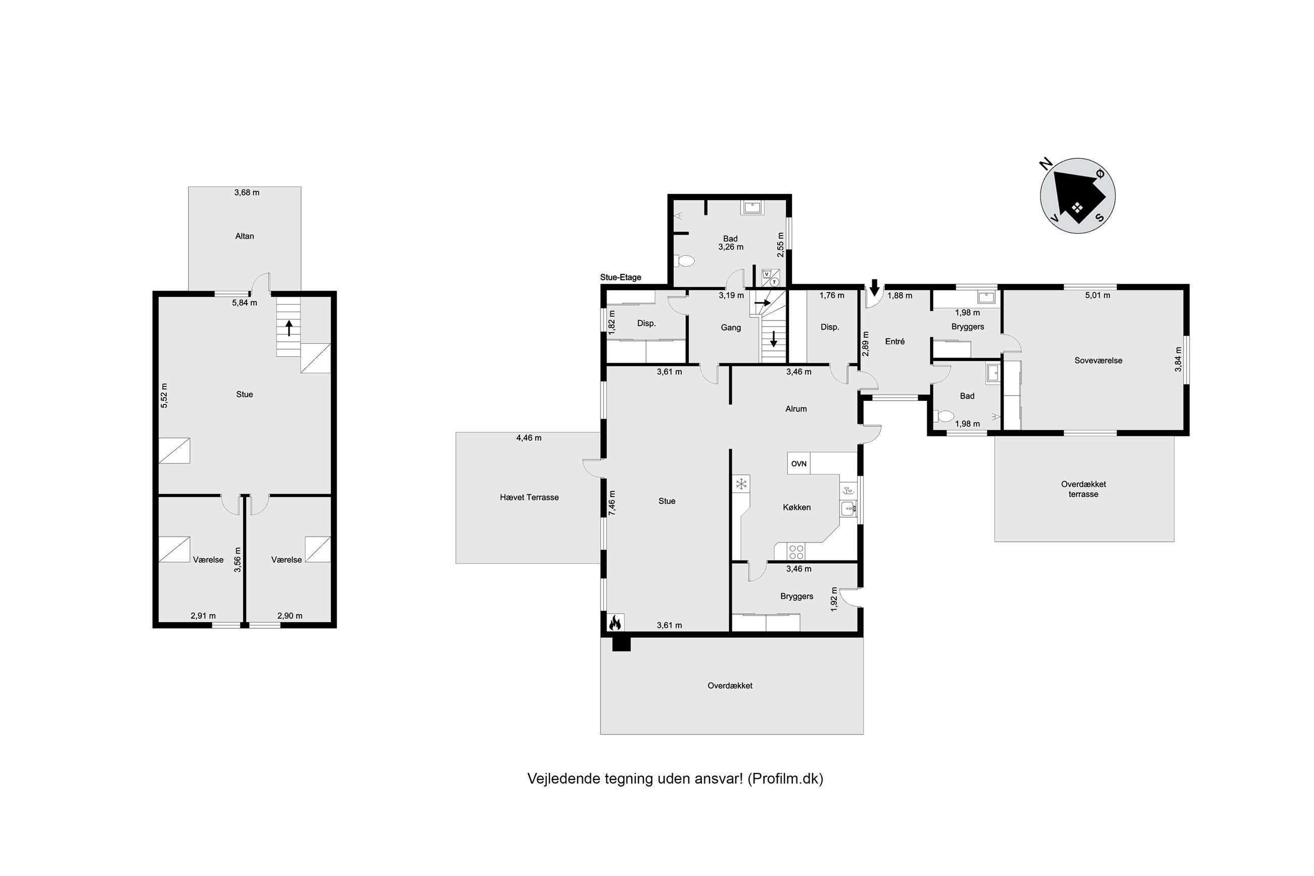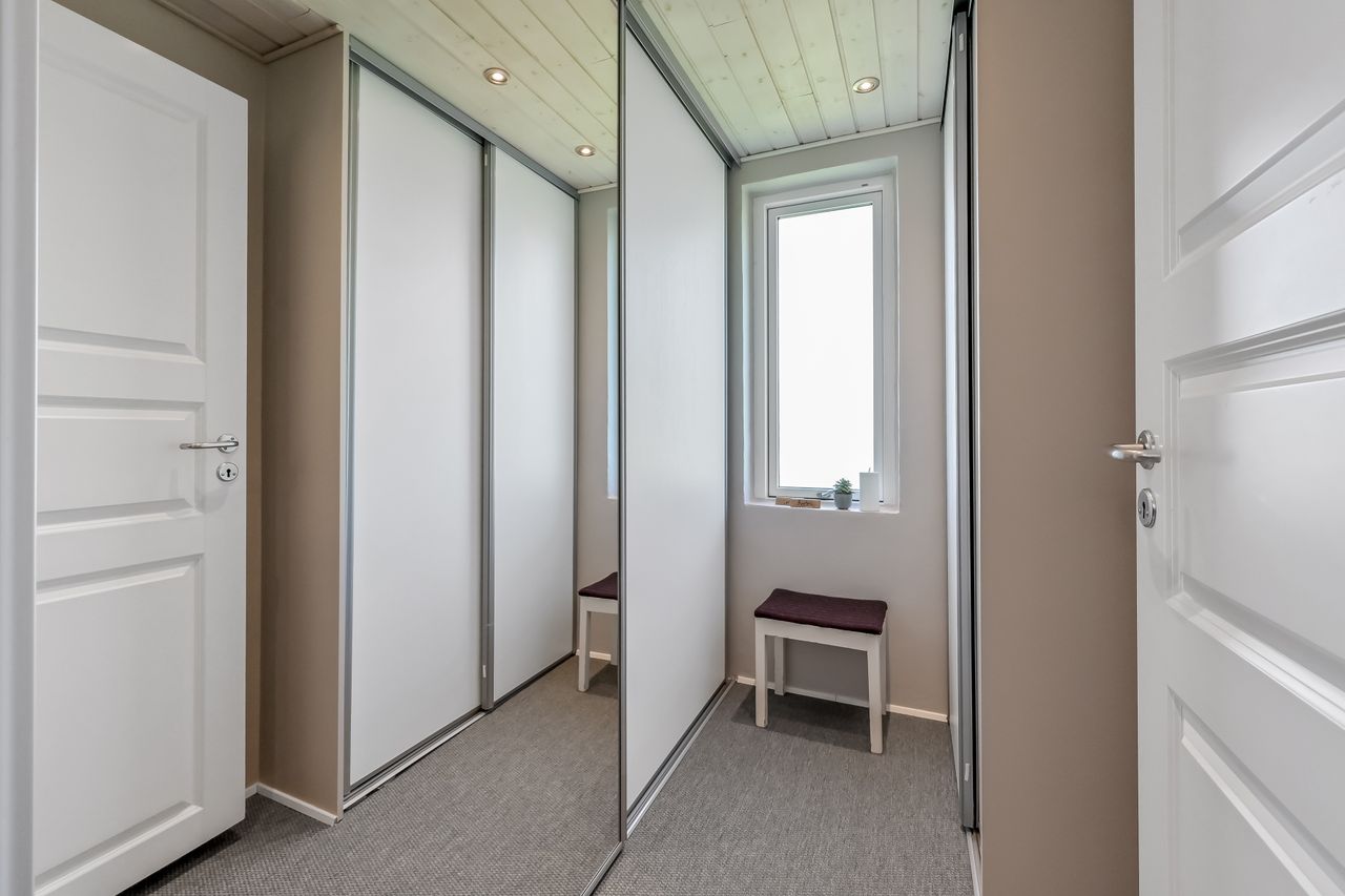 Fra entreen har du adgang til en mulig voksenafdelling med endnu et badeværelse samt en mellemgang og et stort soveværelse.