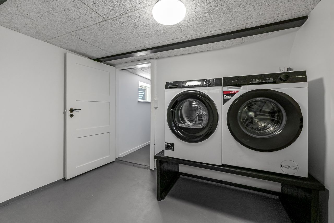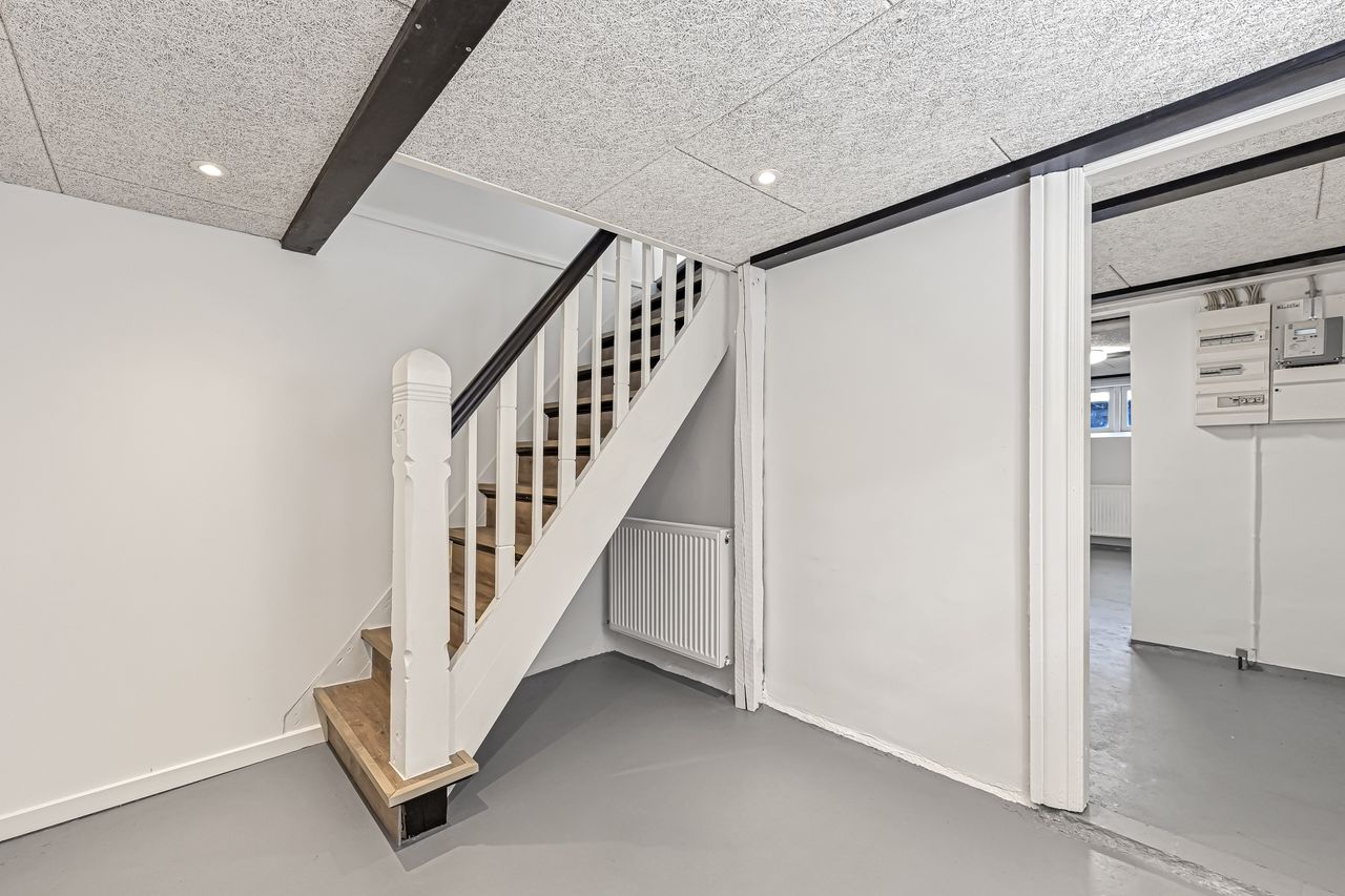 På førstesalen finder man fire regulære soveværelser samt et stort, moderne badeværelse. Kælderen rummer flere anvendelige disponible rum og et praktisk vaskerum. Til ejendommen hører desuden en god garage med elport.