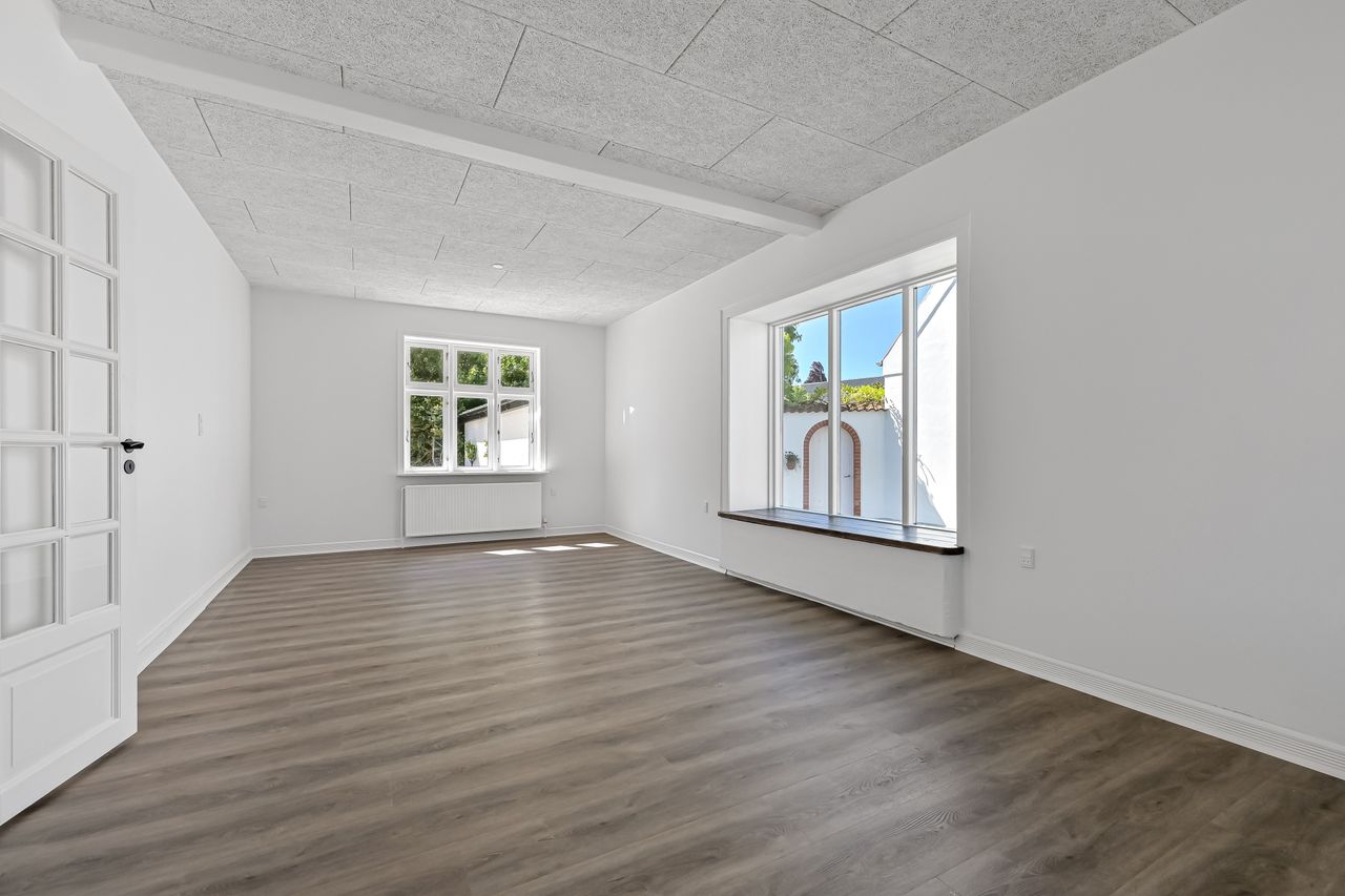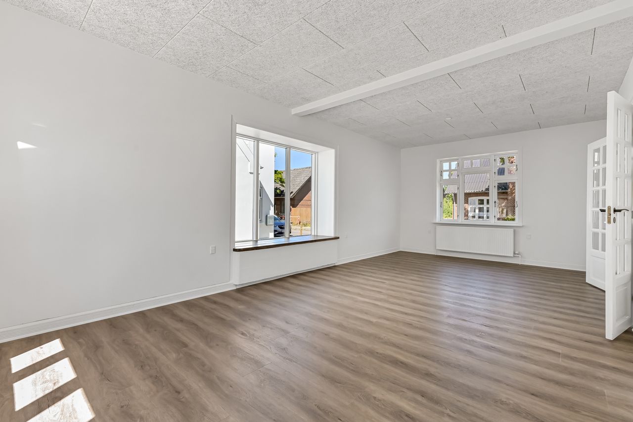 Beliggenheden er central og yderst bekvem – med få minutters gang til både togstation, daginstitutioner, skole, idrætsfaciliteter og byens butikker. En indflytningsklar bolig med både charme og moderne komfort.