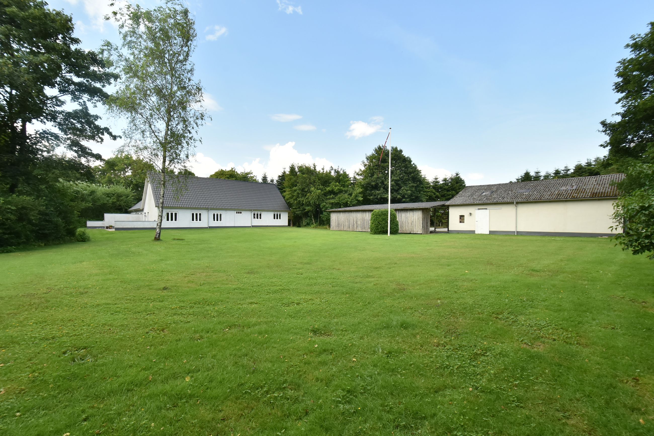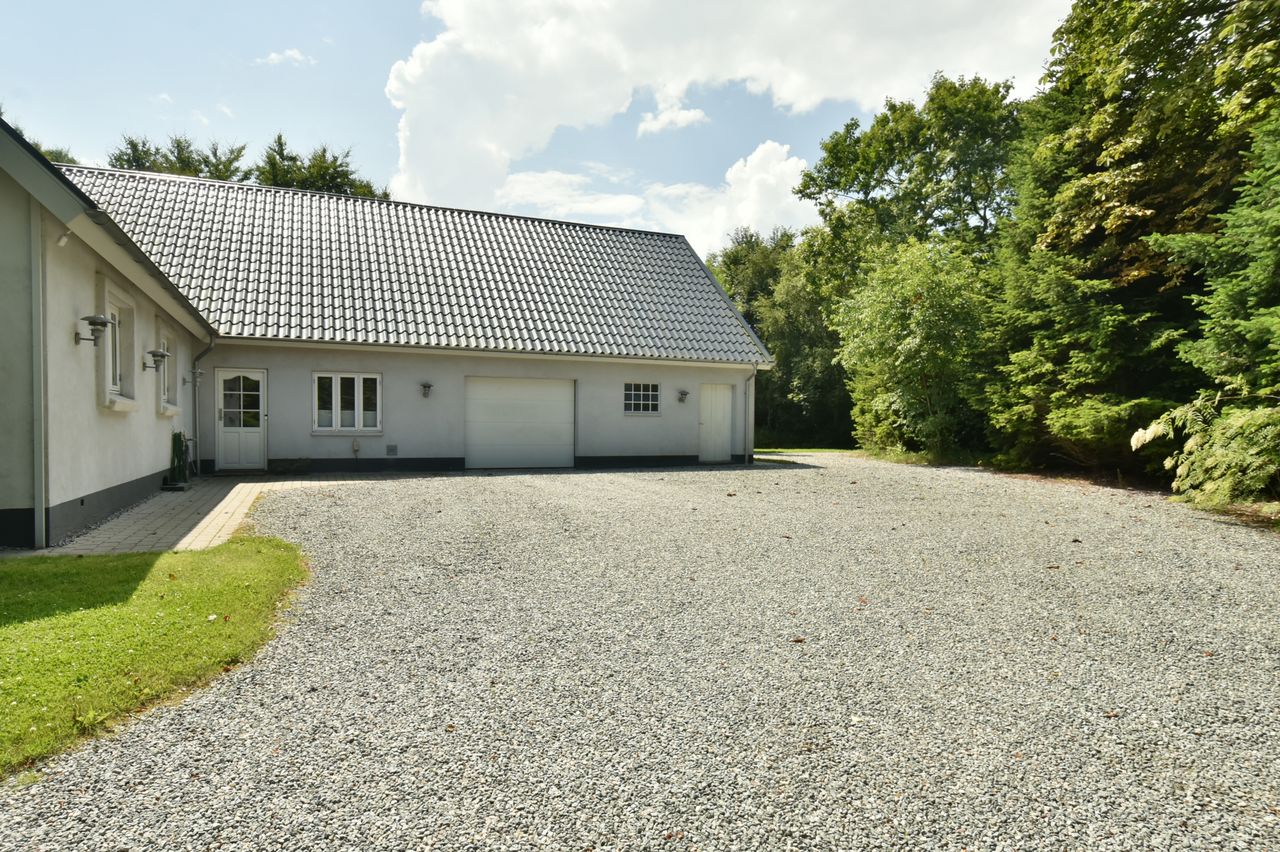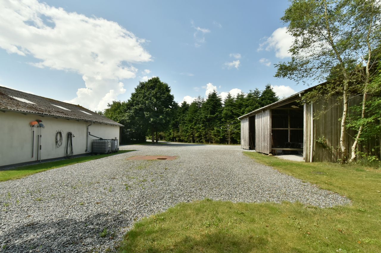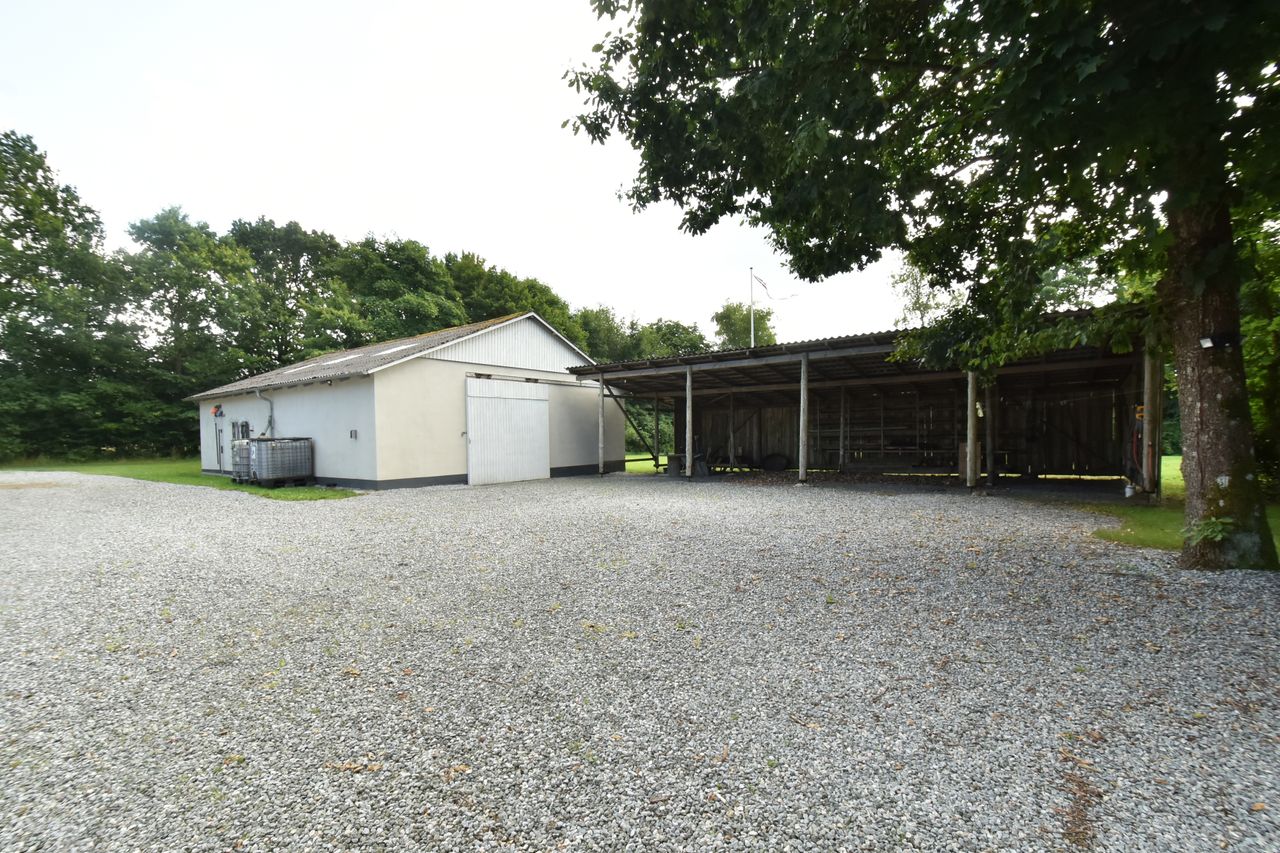 Til ejendommen hører også nogle gode udhusbygninger, som byder på bl.a. en værkstedsbygning der velegnet til større maskiner eller campingvogne.