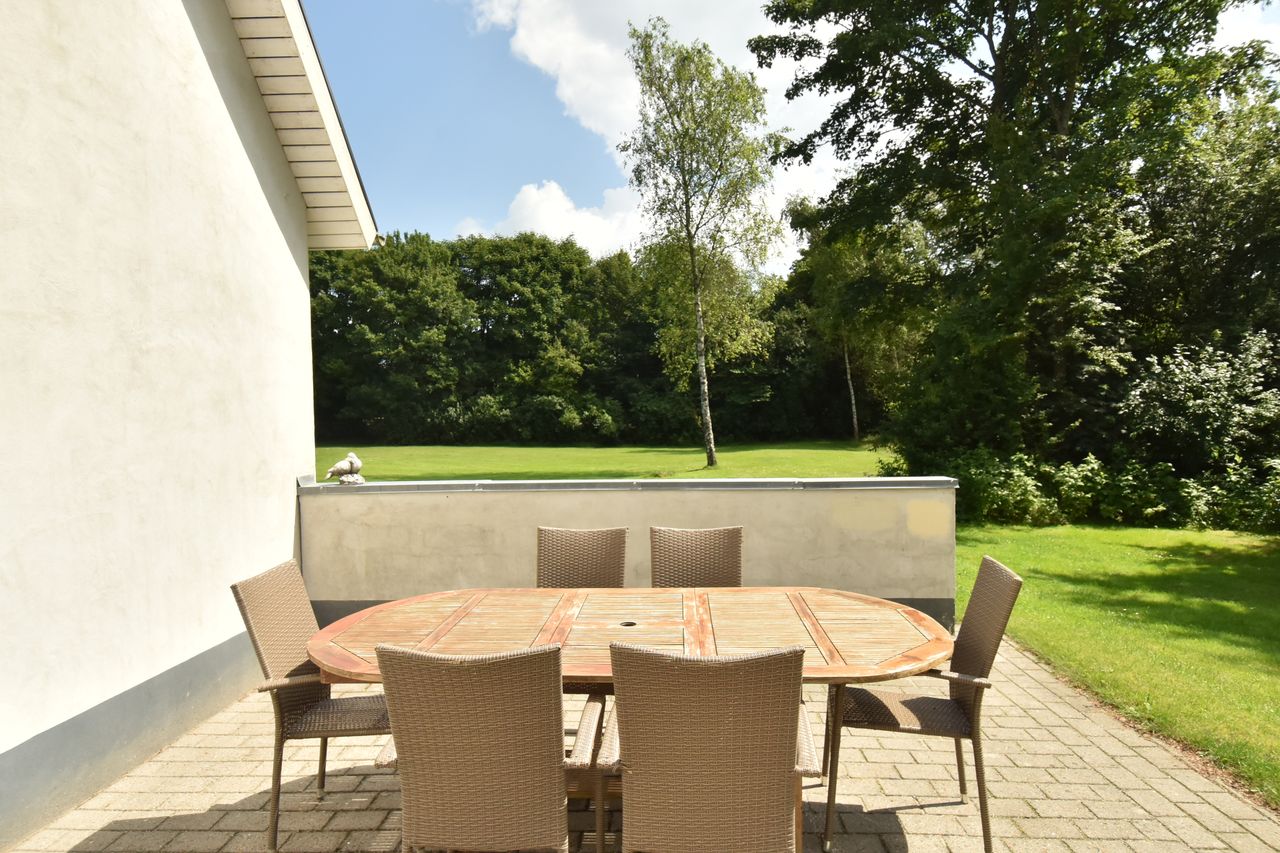 Haven er virkelig skøn og her er god plads til at boltre sig på den store græsplane. Hvis du er have entusiast, kan du også vælge at anlægge din egen park. I haven finder du også den sydvendte terrasse hvor du kan nyde de lange sommeraftener. Du får også et lækkert engstykke og egen lille skov.