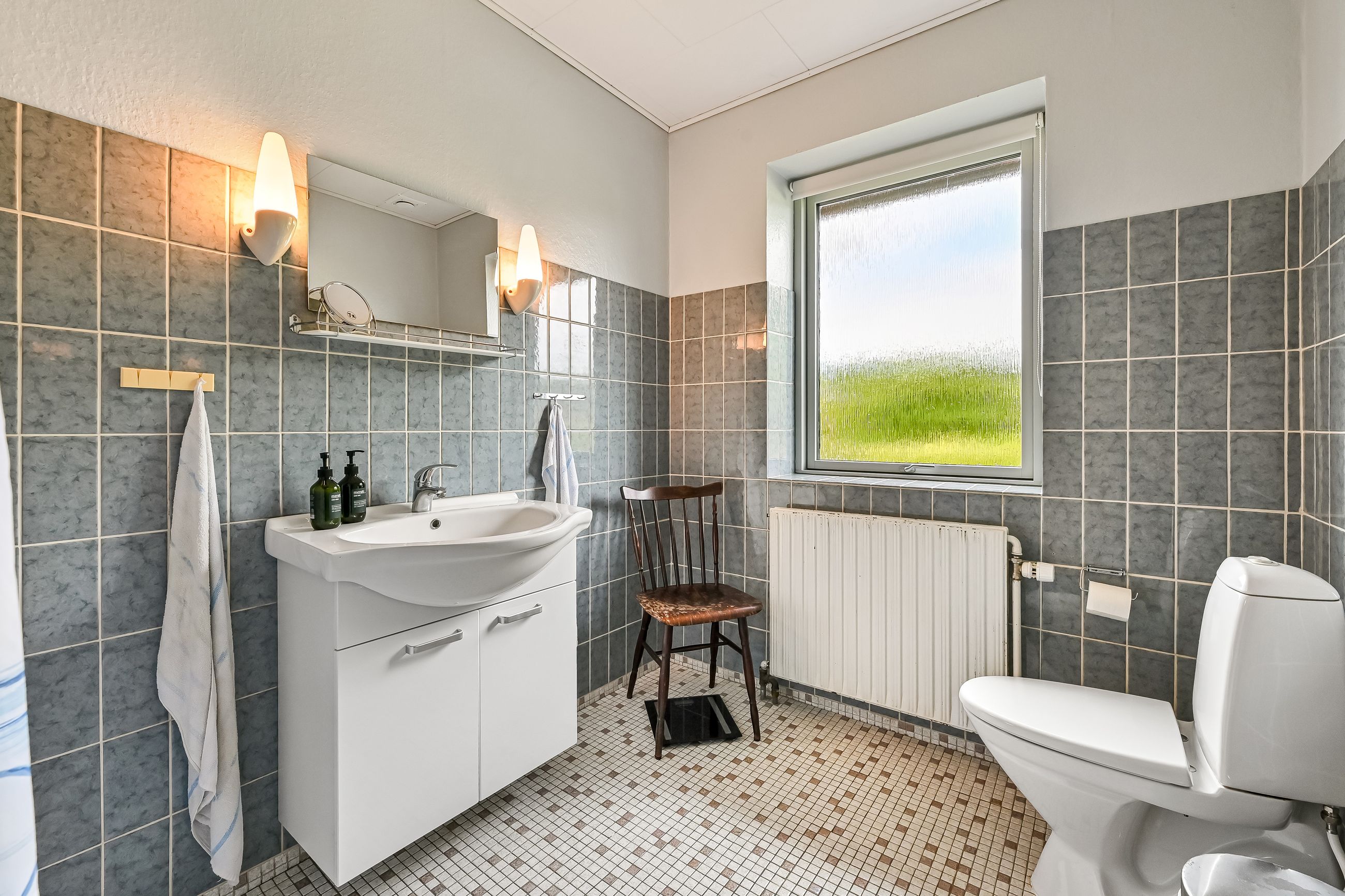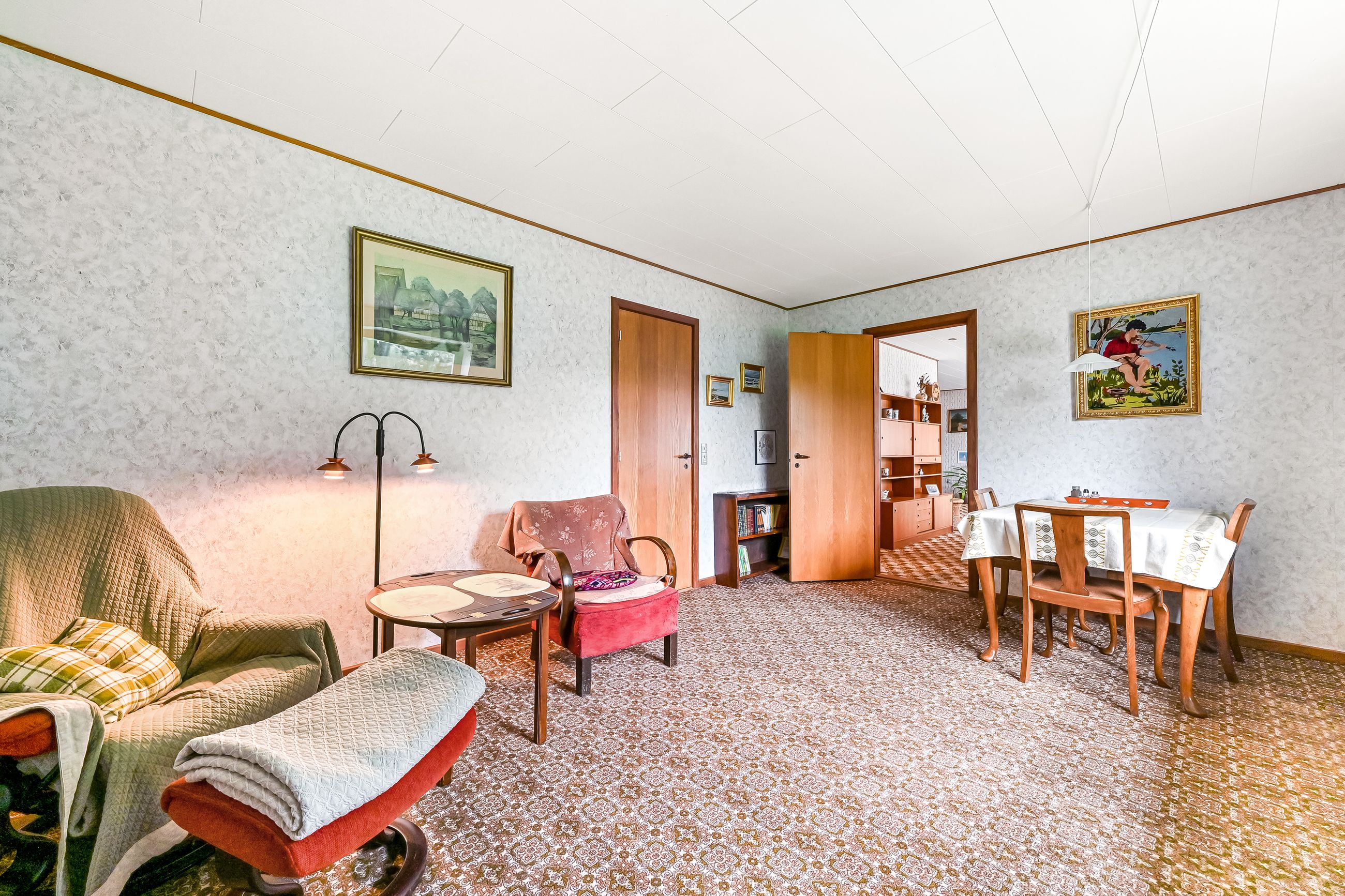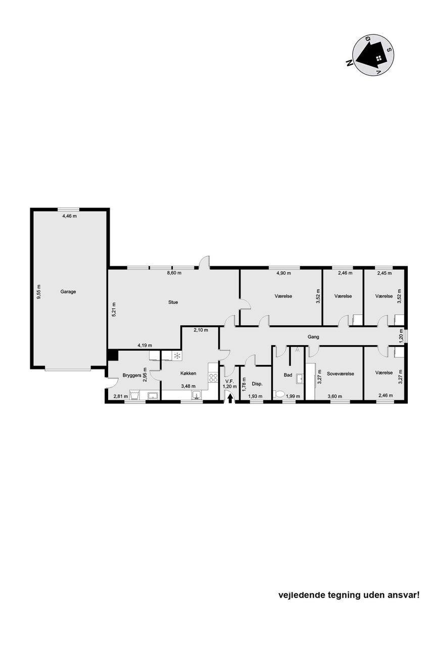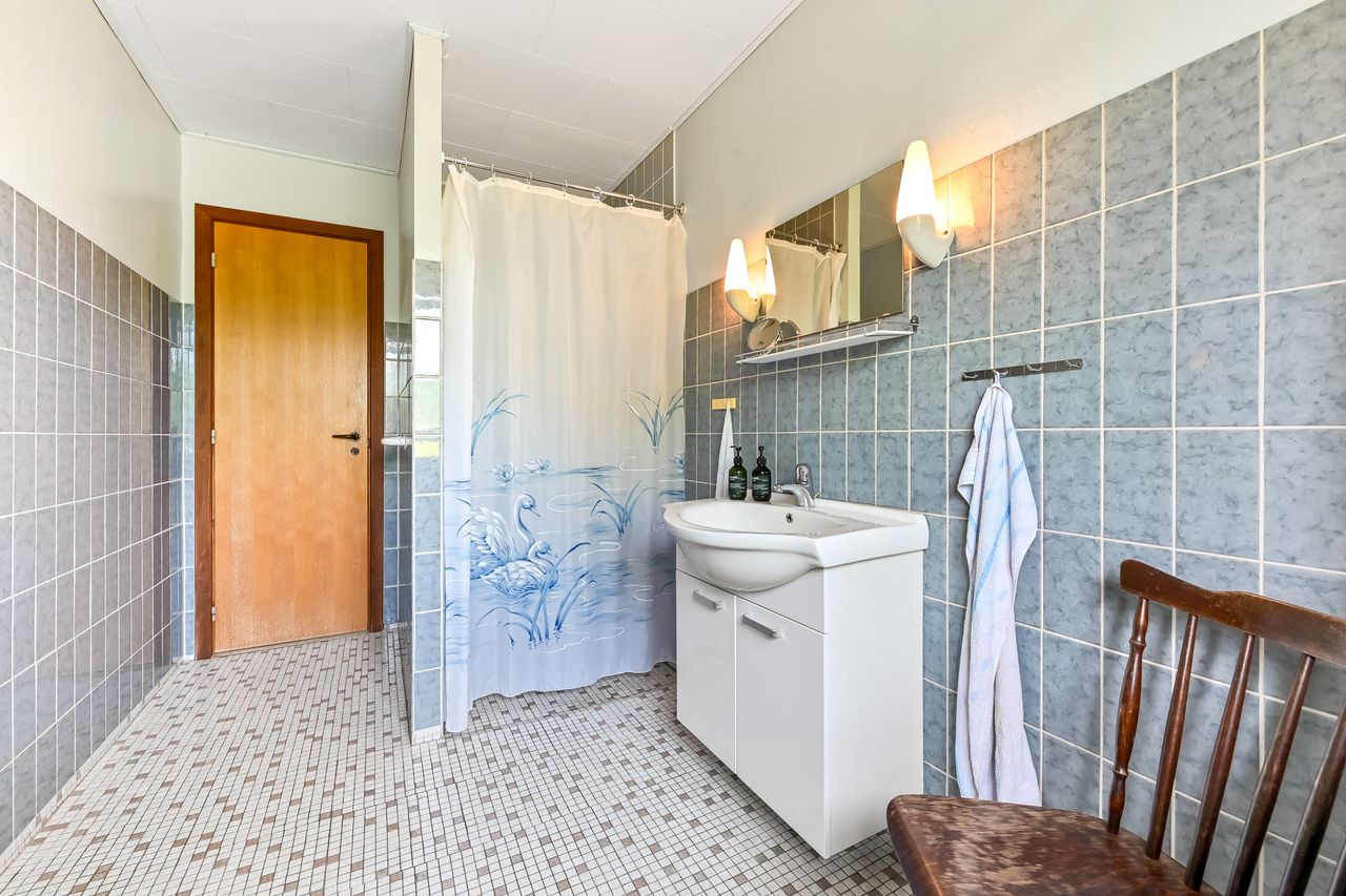Udover stuen findes der også et mindre dagligstueområde eller et ekstra stort værelse alt efter behov. For enden af fordelingsgangen finder du husets 3 fine værelser og soveværelset der har indbygget skabsvæg. Sidst rummer huset et badeværelse, der er lyst og pænt og har gulvvarme, samt et disponibelt rum, som kan anvendes efter eget ønske.