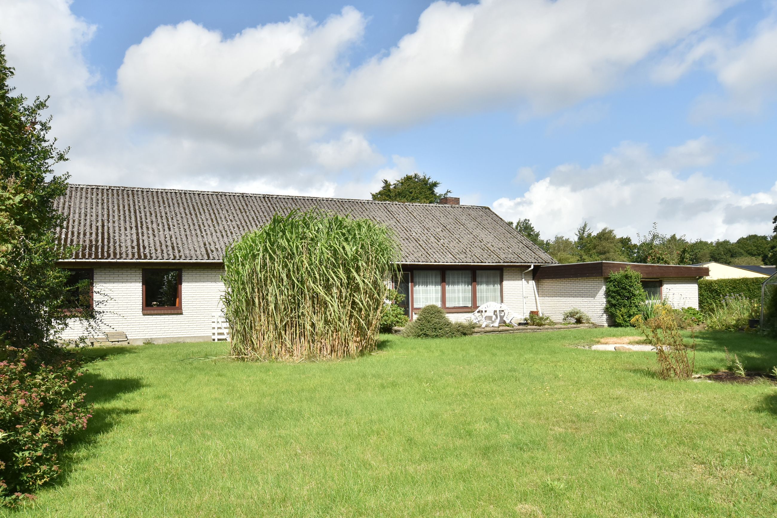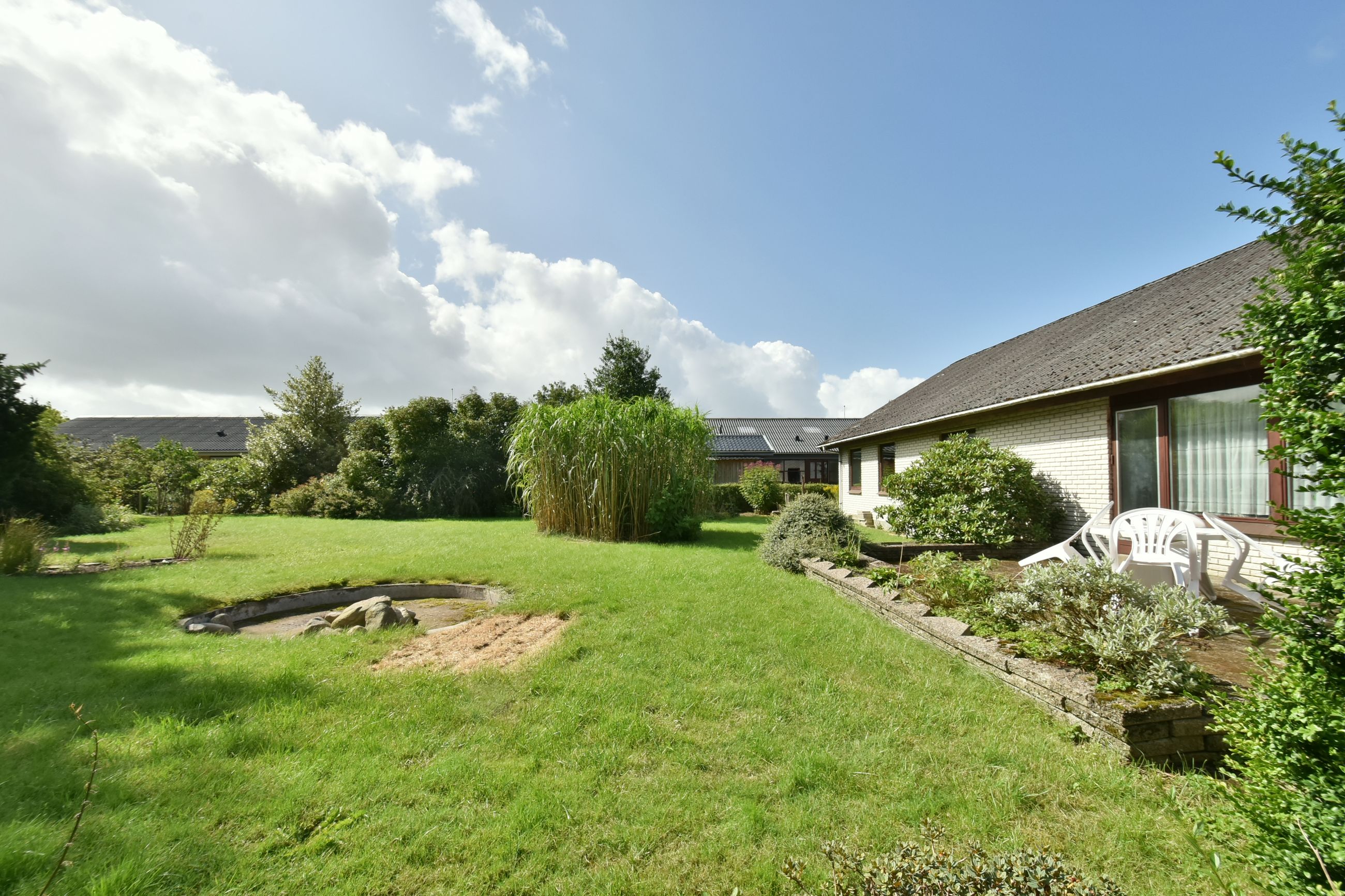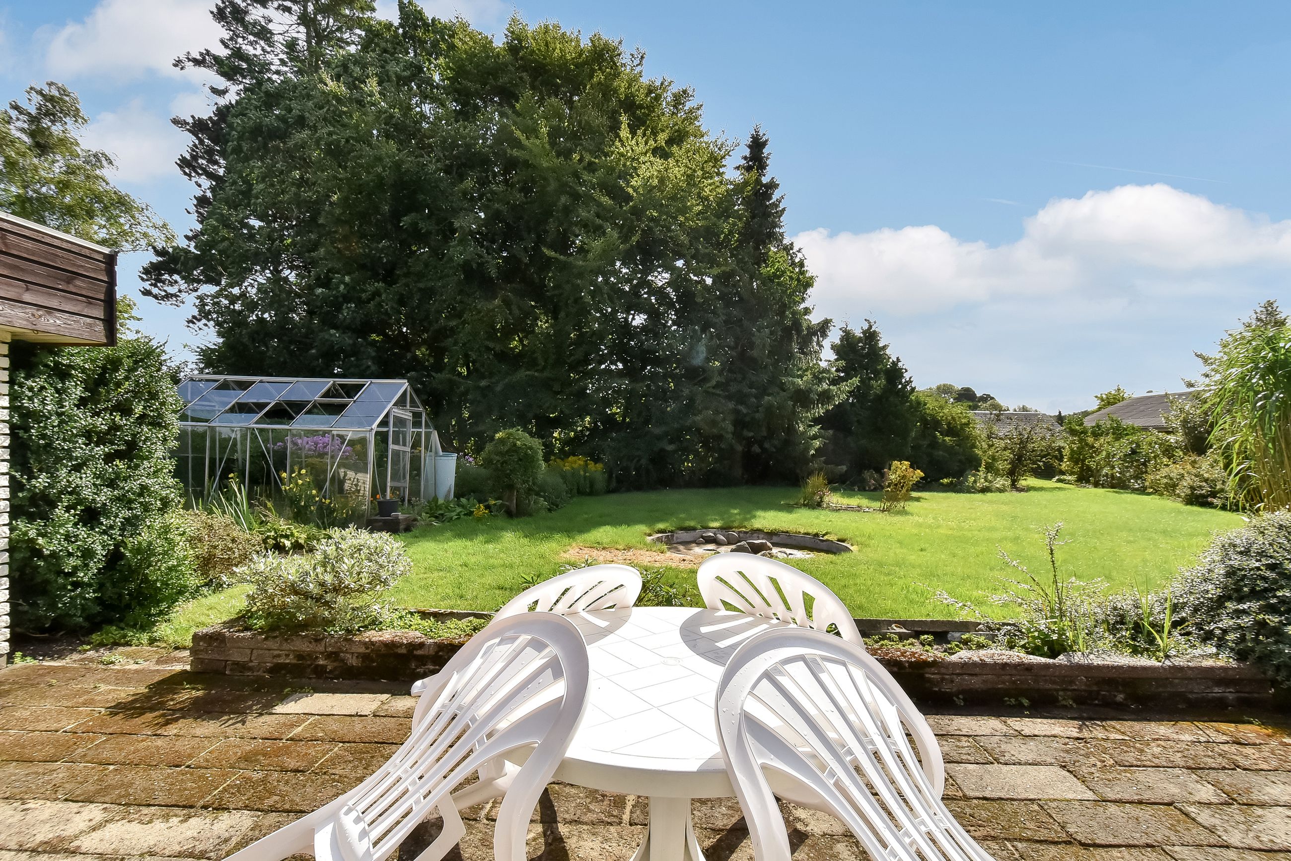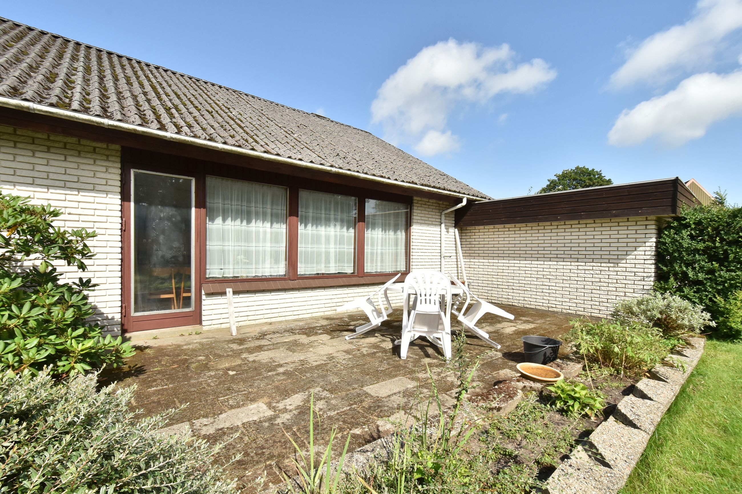 Udendørs finder du en charmerende lille forhave med buske samt en imponerende stor garage på 50m2, der er perfekt til bilentusiasten, ekstra opbevaringsplads, eller lille værkstedsplads. Haven bag huset er privat og rummelig med få bede, hvilket gør den nem at vedligeholde samtidig med at den tilbyder masser af plads til leg eller afslapning.