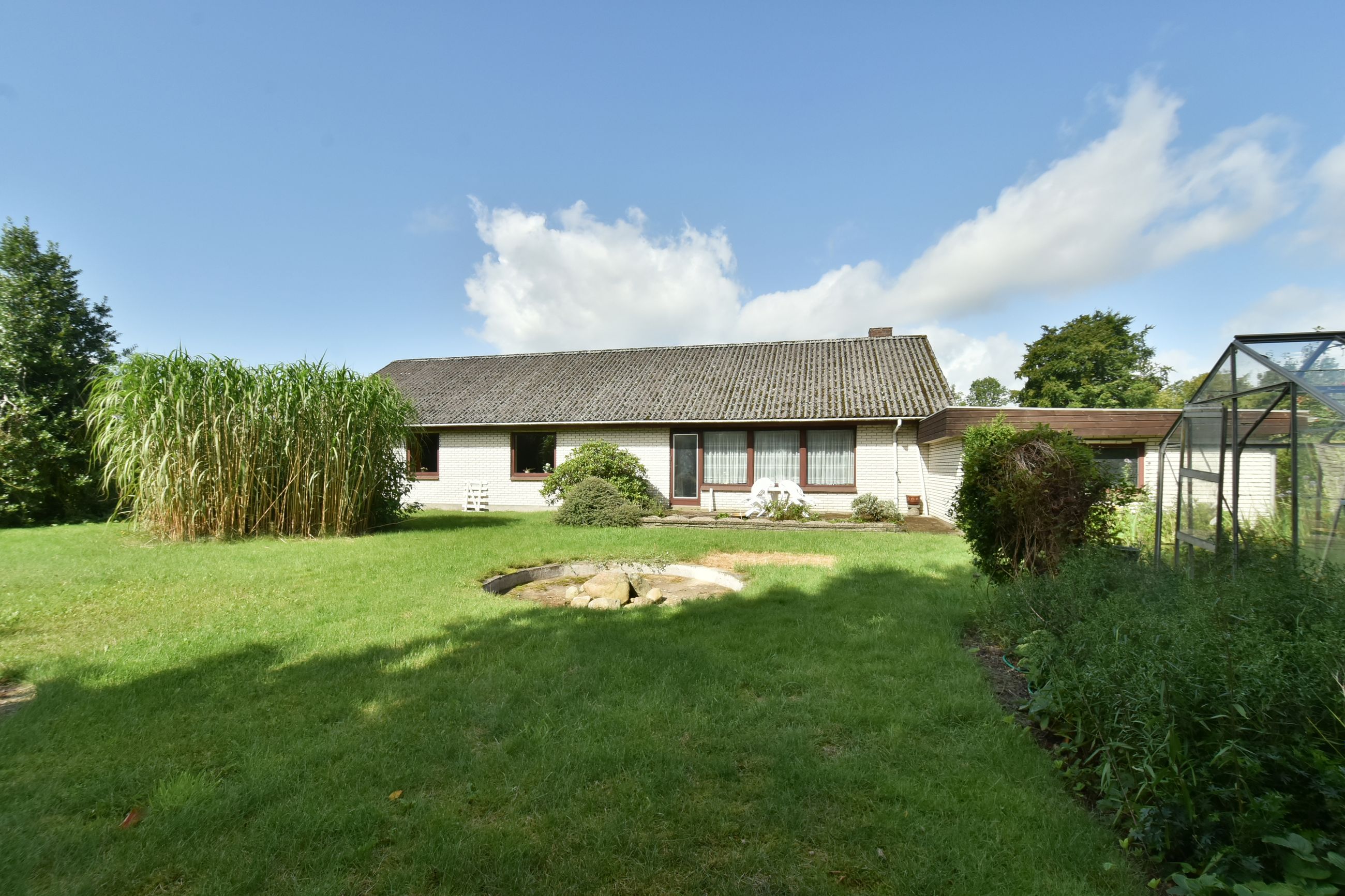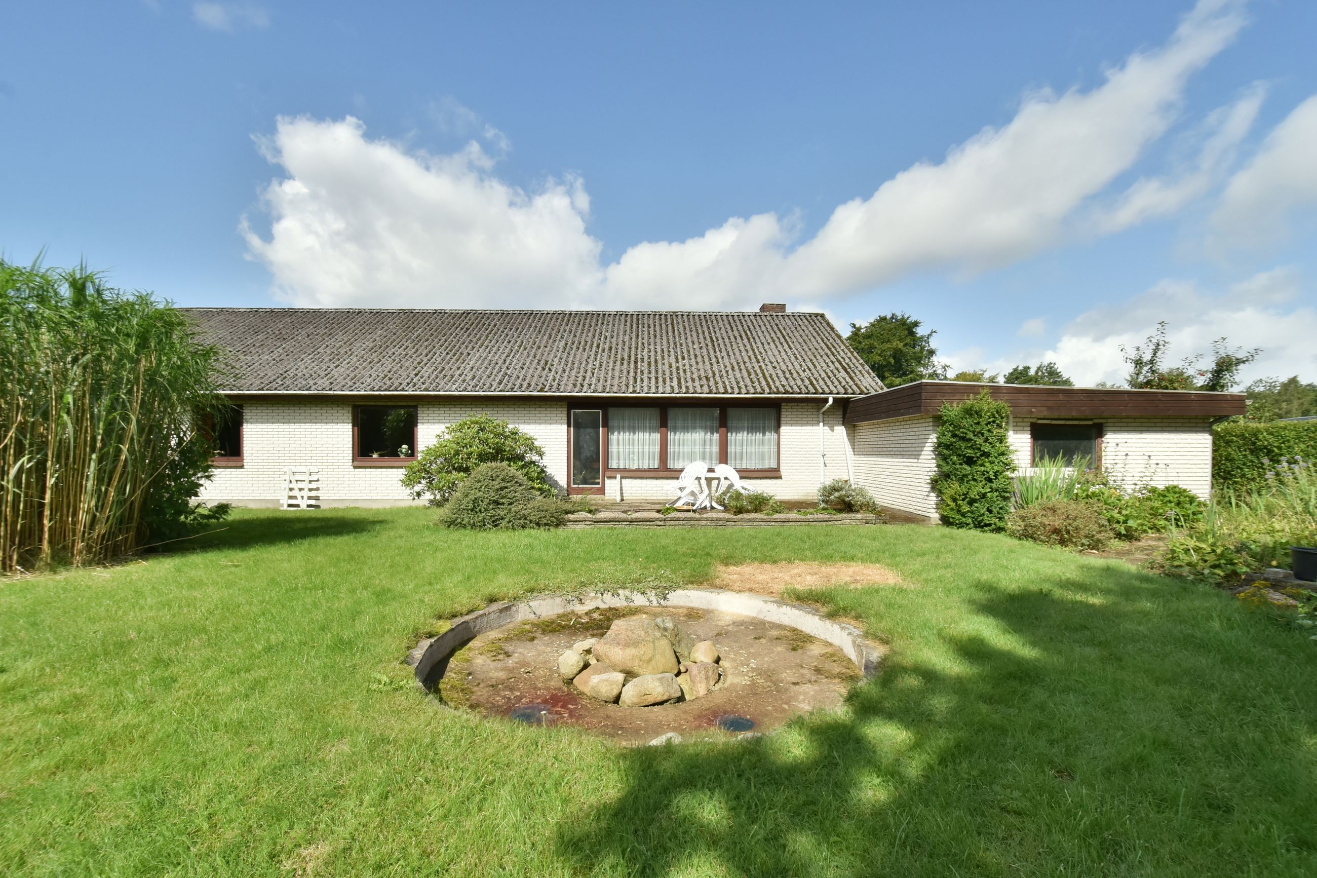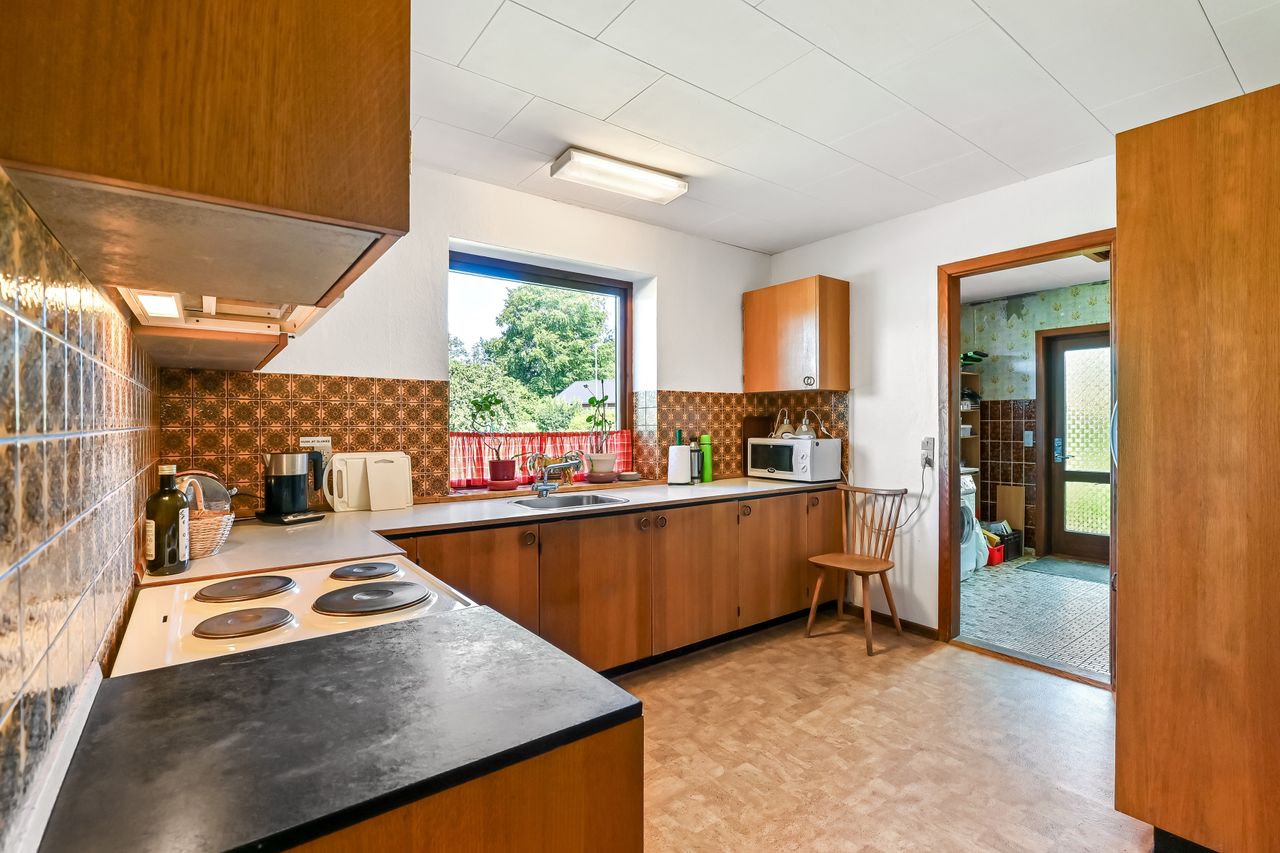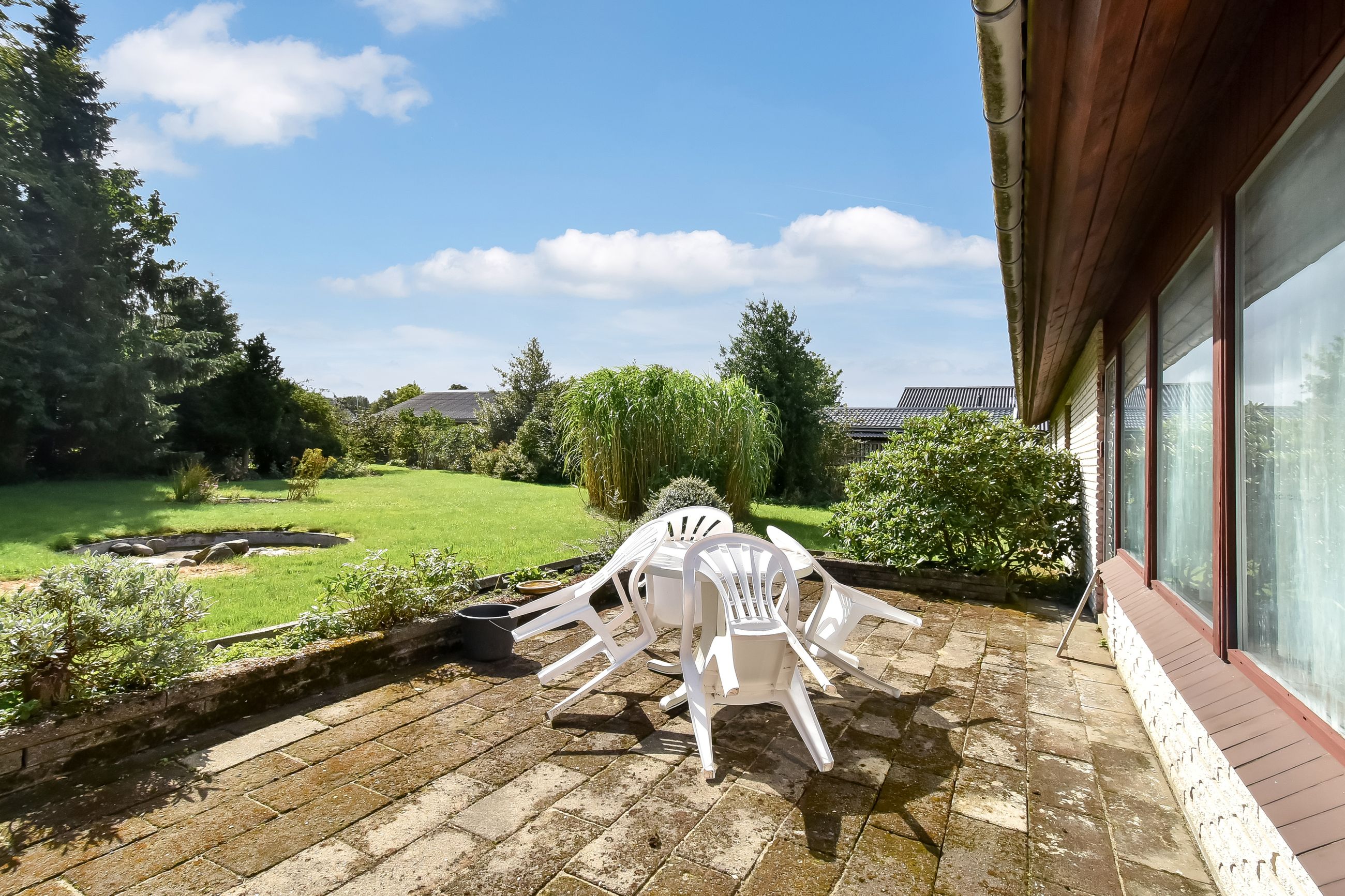 Udendørs finder du en charmerende lille forhave med buske samt en imponerende stor garage på 50m2, der er perfekt til bilentusiasten, ekstra opbevaringsplads, eller lille værkstedsplads. Haven bag huset er privat og rummelig med få bede, hvilket gør den nem at vedligeholde samtidig med at den tilbyder masser af plads til leg eller afslapning.