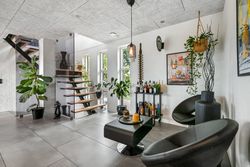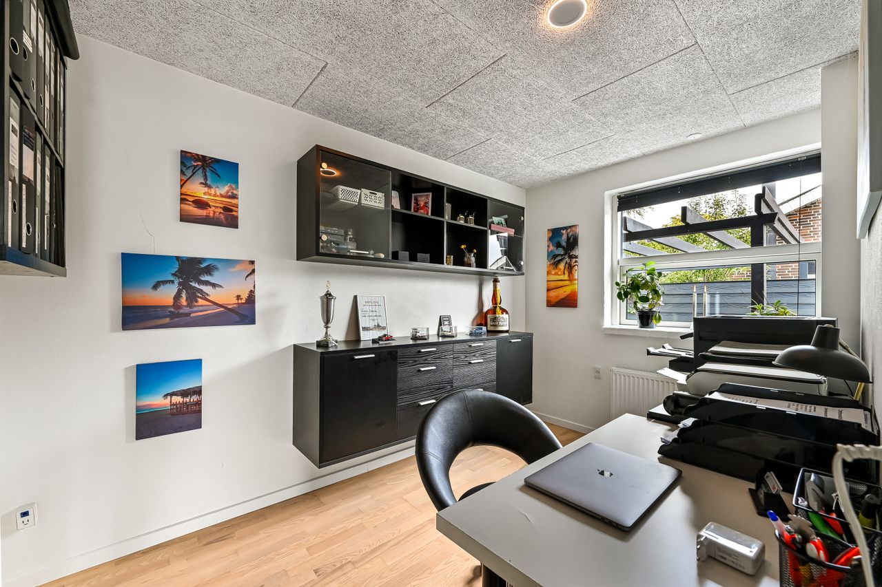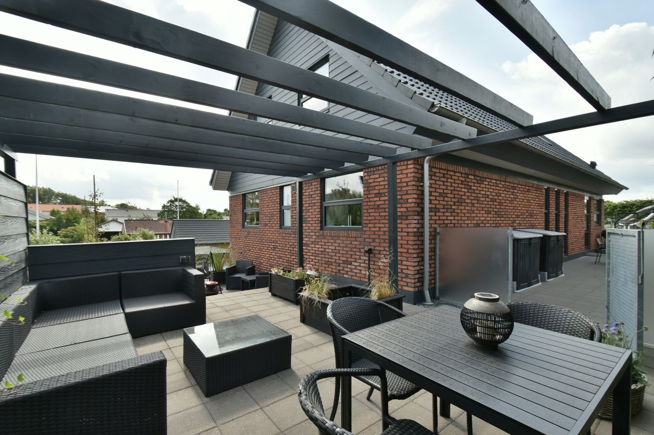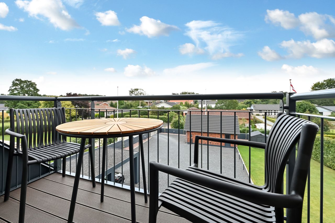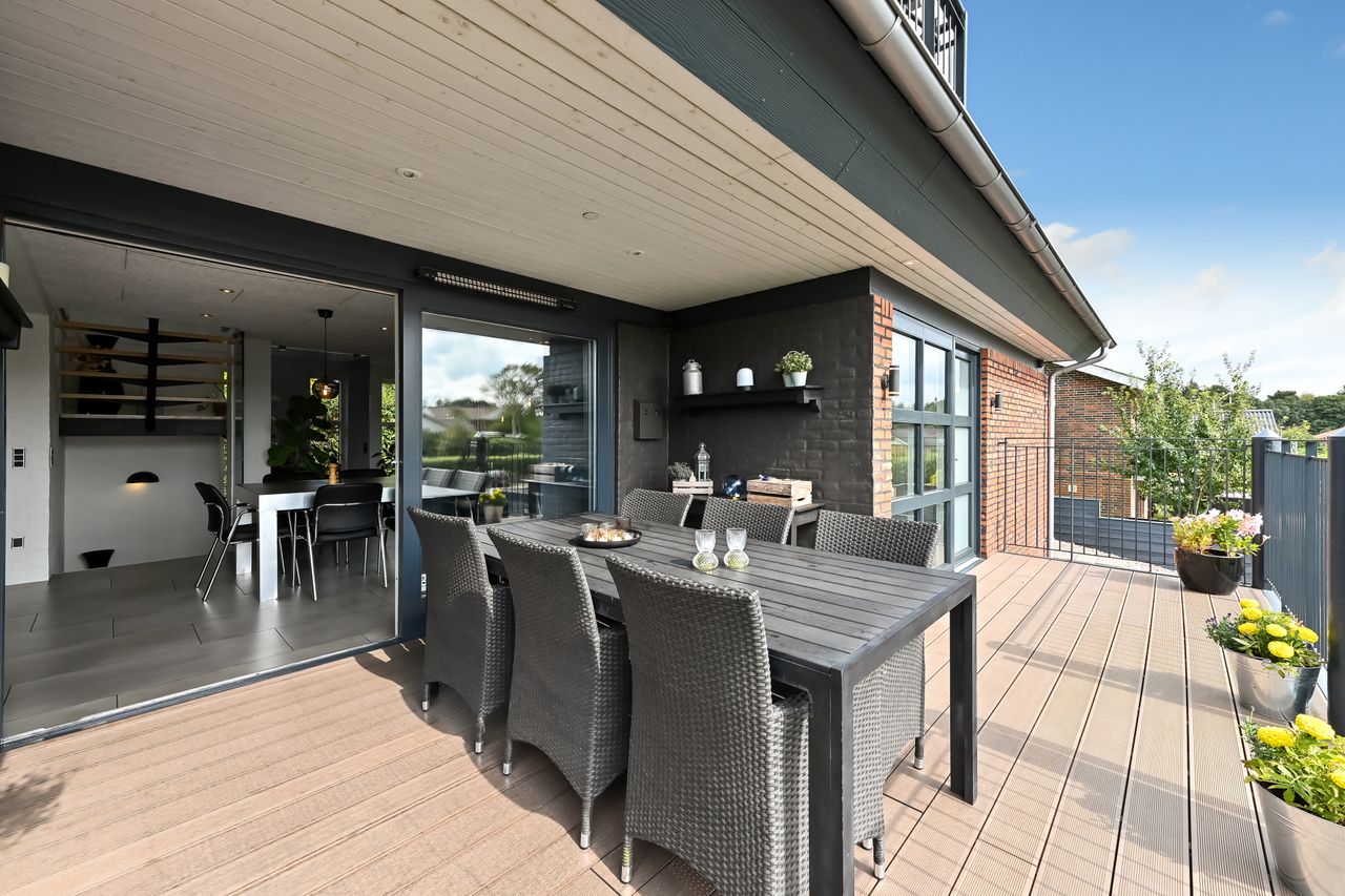På øverste plan finder I en mere privat stue med udgang til ikke bare én men hele to altaner - én mod syd og én mod vest - hvorfra der er udsigt over området.