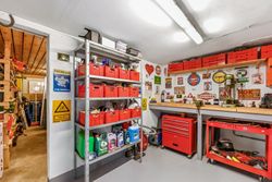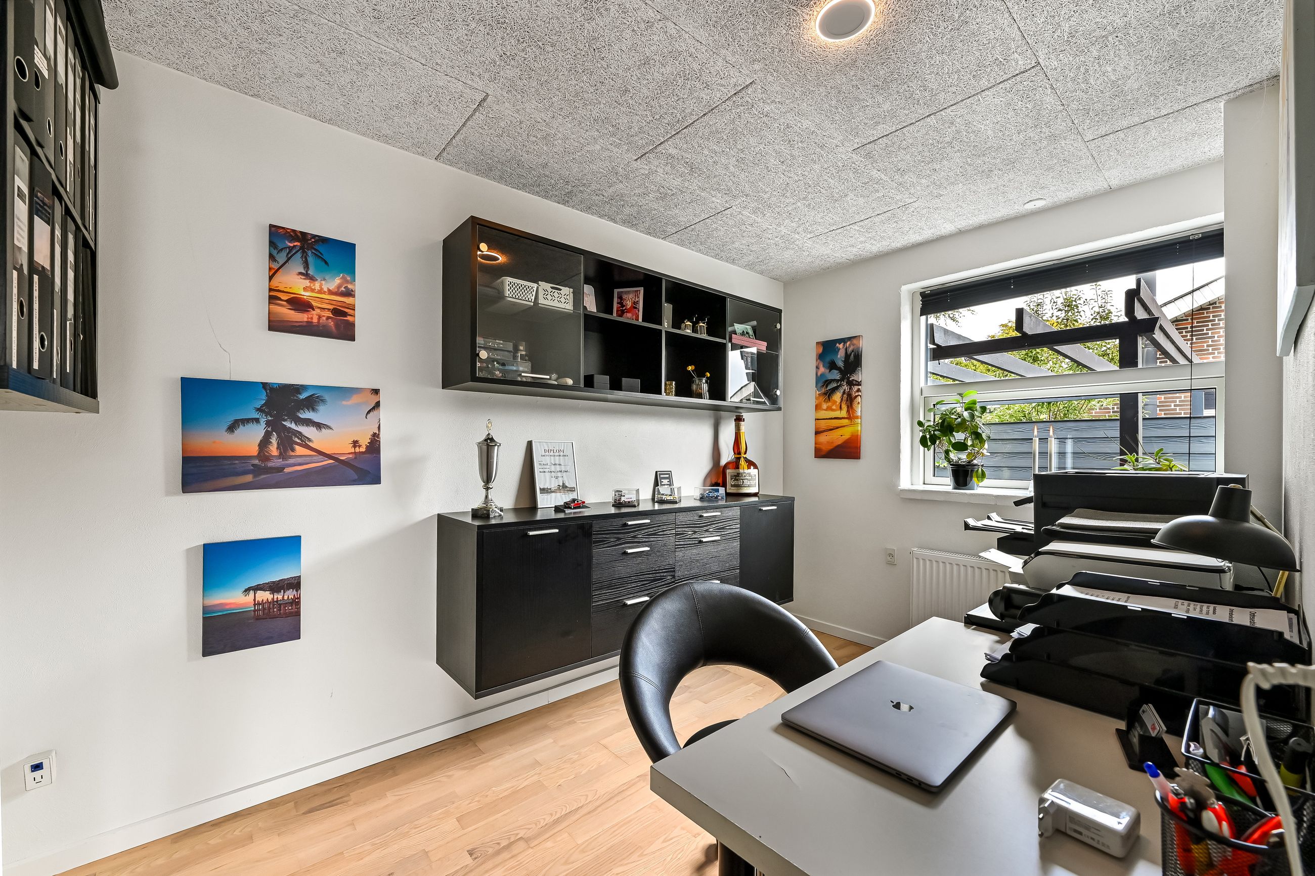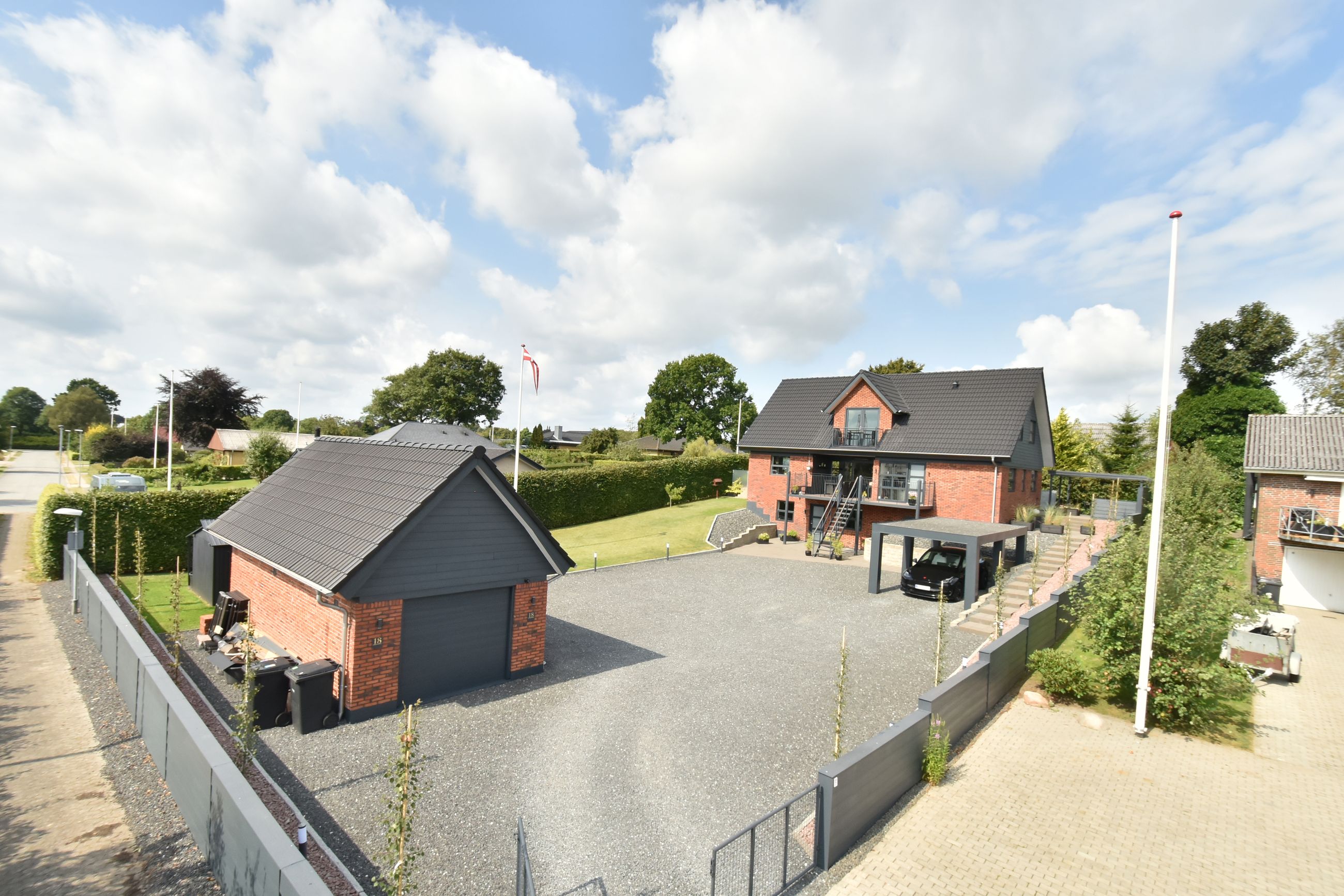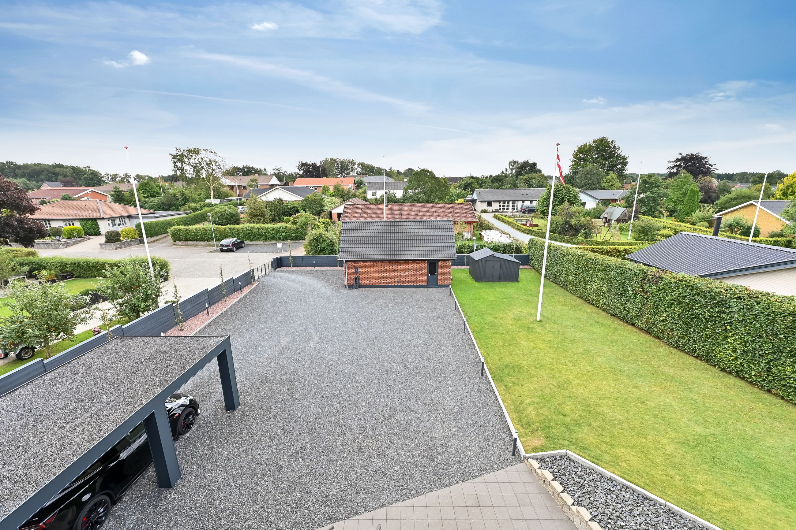 Her findes også et godt værksted til opbevaring og diverse hobbyformål. Bygningen som ligger frit, kan nemt omdannes til garage, som var det oprindelige formål med bygningen. Familiens bil parkeres bekvemt i den nyere opførte carport tæt ved husets indgang. Her er opsat ladestander. Der er også plads til gæste parkering på grunden.