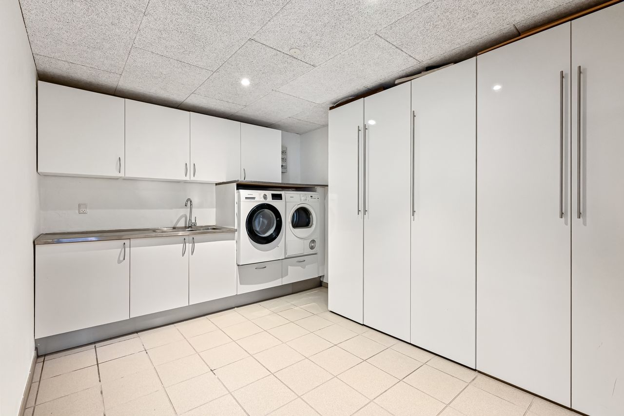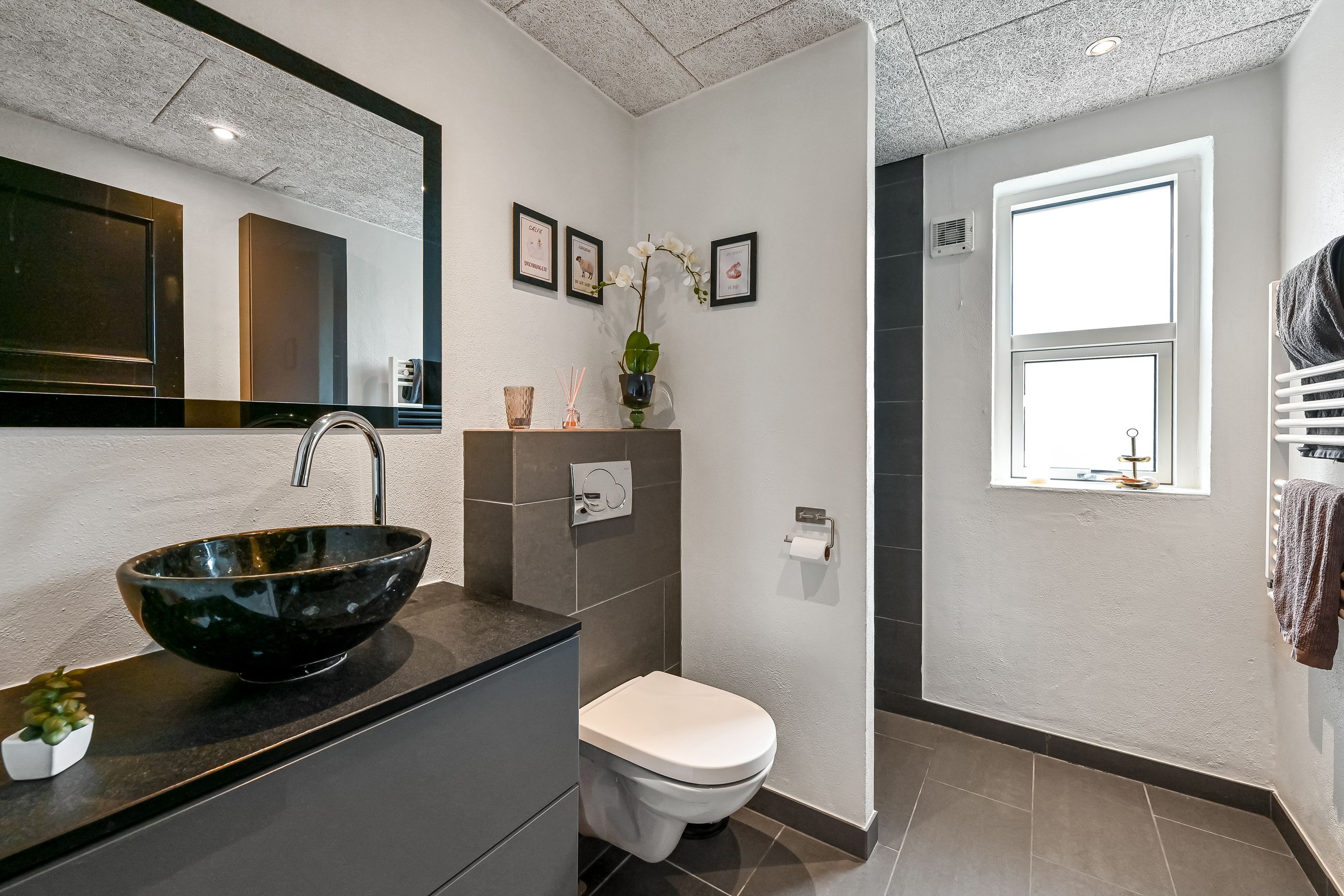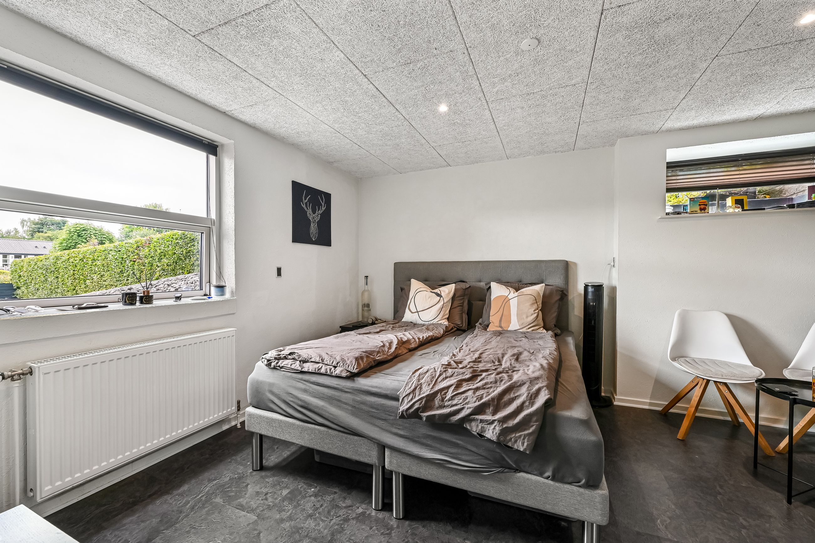 Når I træder ind i underetagen, mødes I af en dejlig entré med klinkegulv med varme. I finder to store disponible rum med godt lysindfald samt et stort bryggers med bord ilagt vask, her er plads til vaskemaskine og tørretumbler samt masser af god opbevaringsplads. Desuden er der et lækkert brusebadeværelse samt et depotrum. Fra entréen fører trappen jer op til stueplanet, hvor det store lækre køkken/alrum straks vil få jer til at føle jer hjemme.