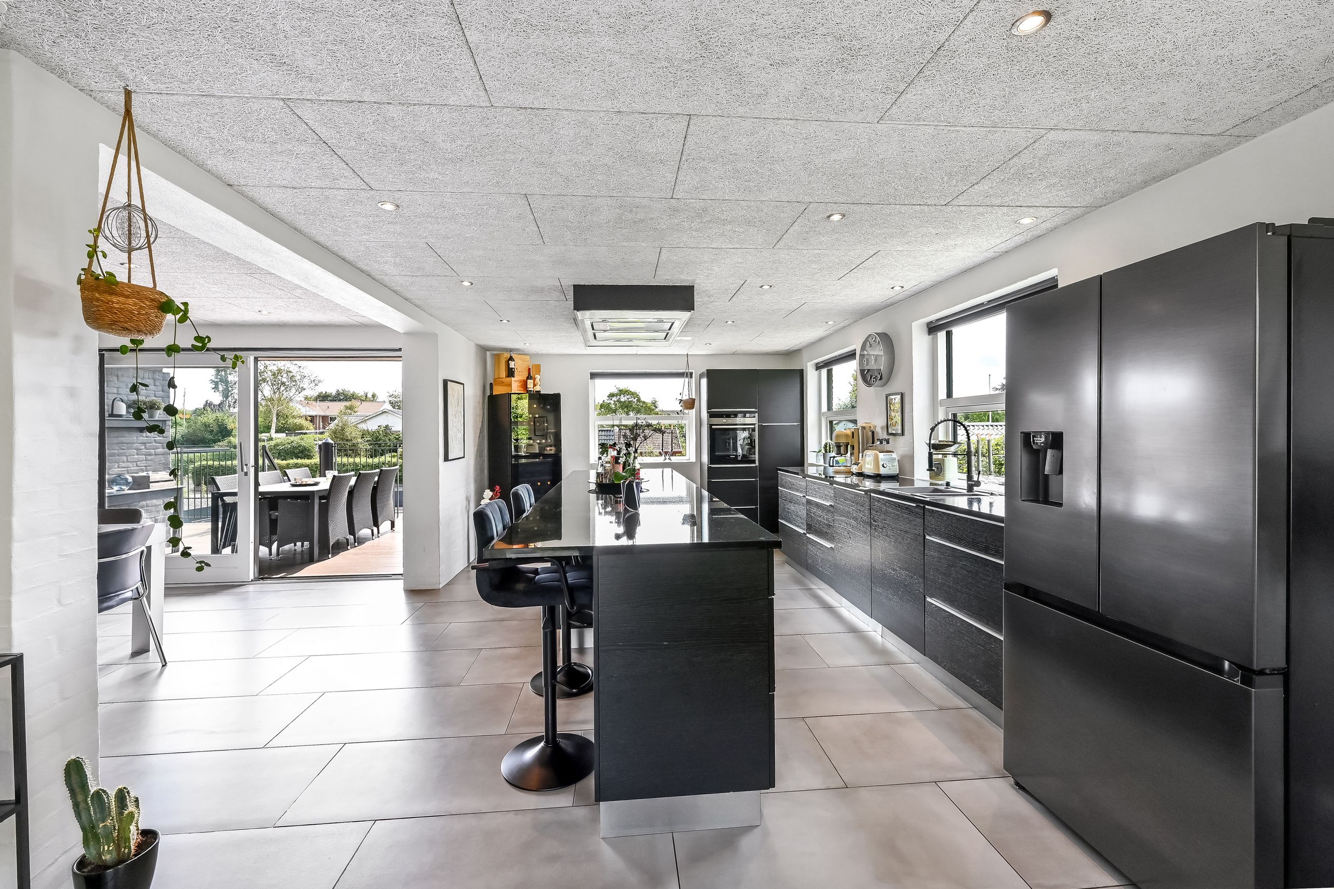 Køkkenet er indrettet med alt hvad hjertet kan begære og har direkte udgang til en skøn altan samt et fantastisk terrassemiljø bag huset. Stueplanet rummer desuden to værelser og et brusebadeværelse. Gæsterne kan også bydes velkommen i endnu en entré, som ligger i forbindelse med altanen.