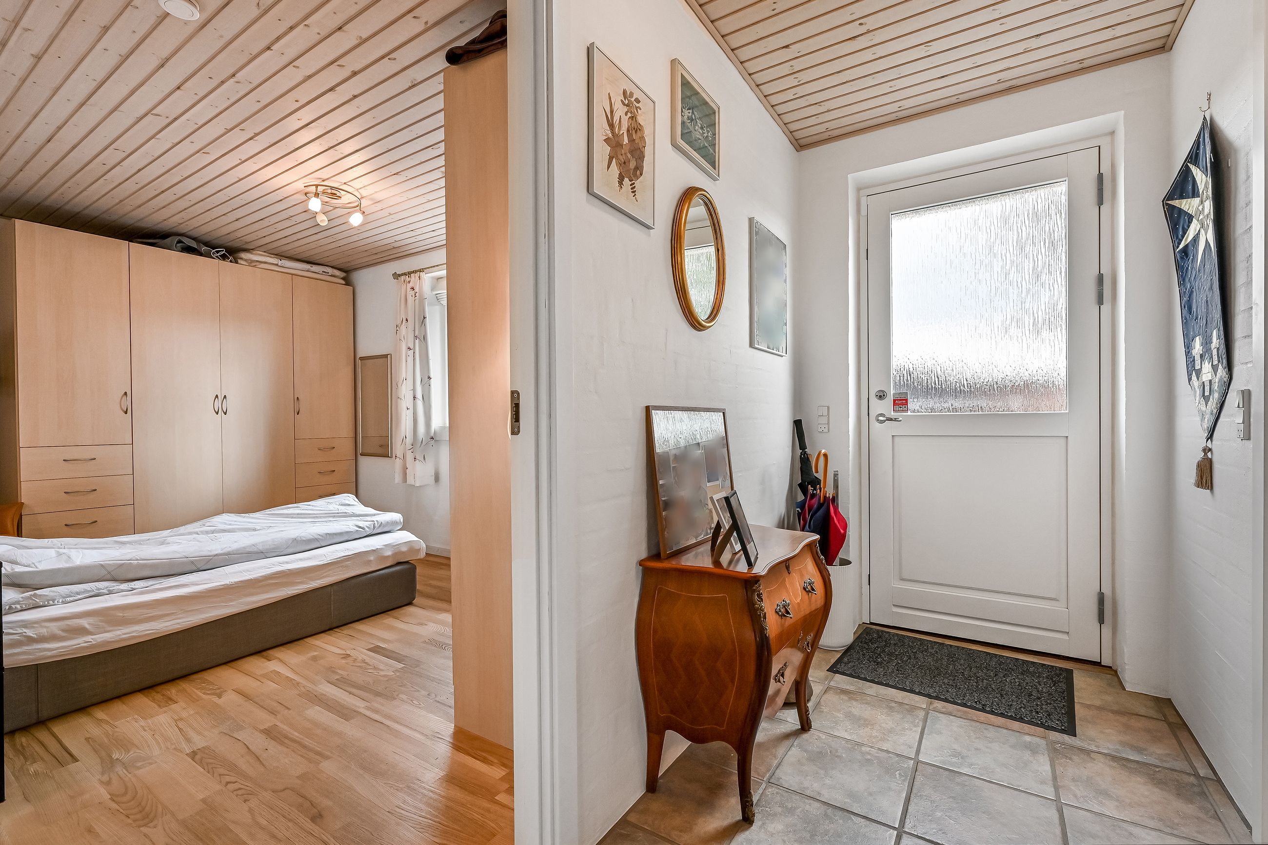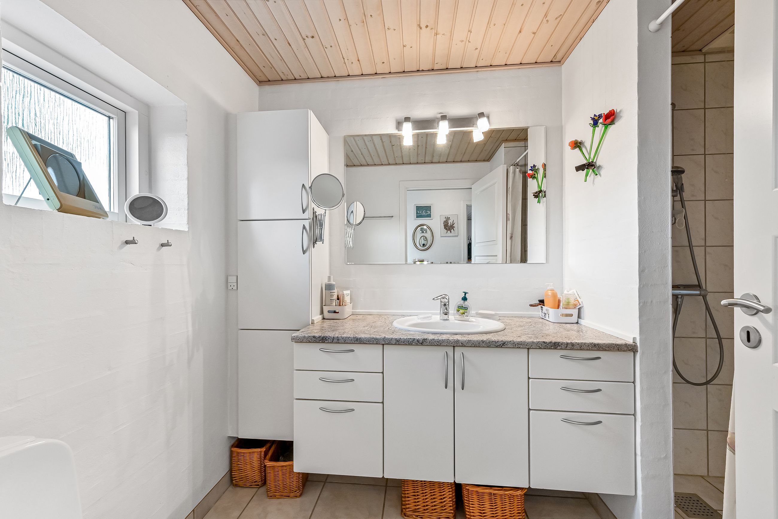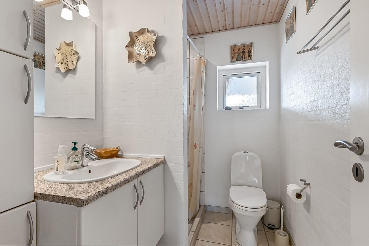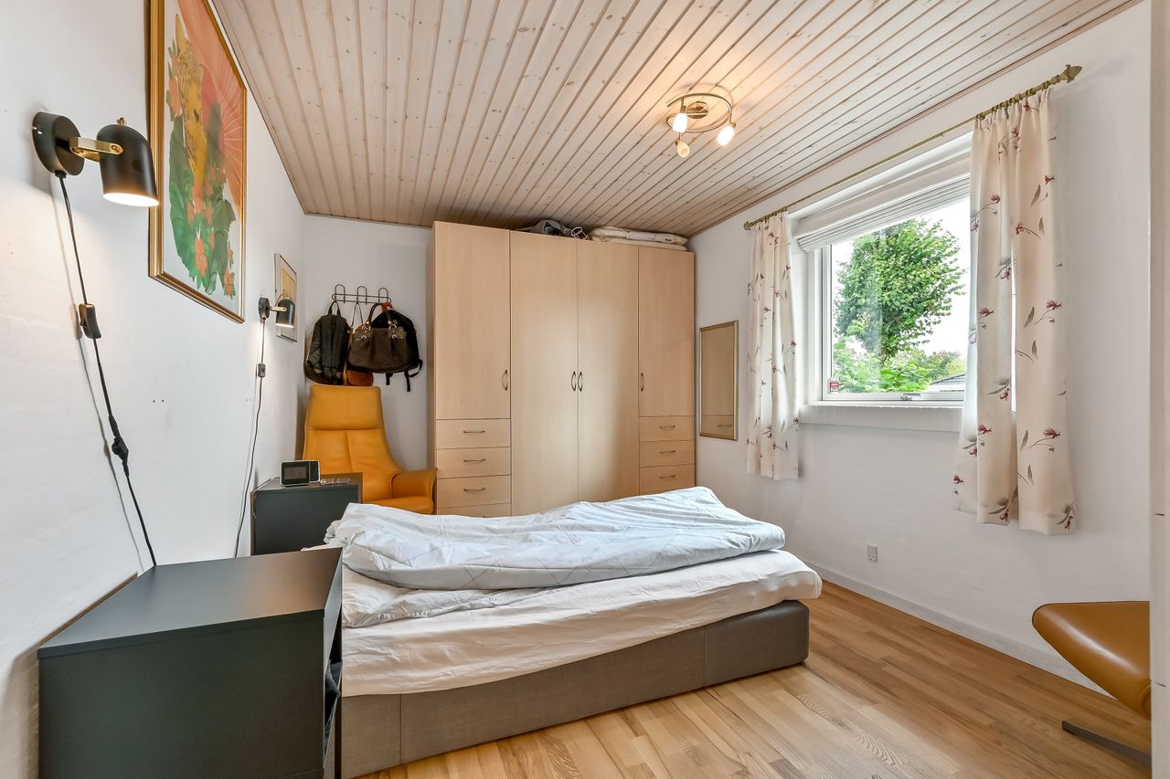 I villaen finder du tre fine værelser alle med lyse gulve. Det ene værelse ligger lidt for sig selv, med det ene badeværelse ved entréen og kan fungere perfekt som en privat forældreafdeling. De to badeværelser er begge pæne og velholdte med moderne faciliteter.