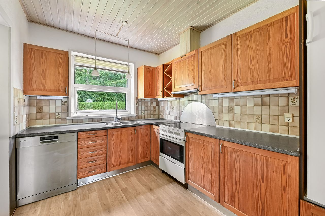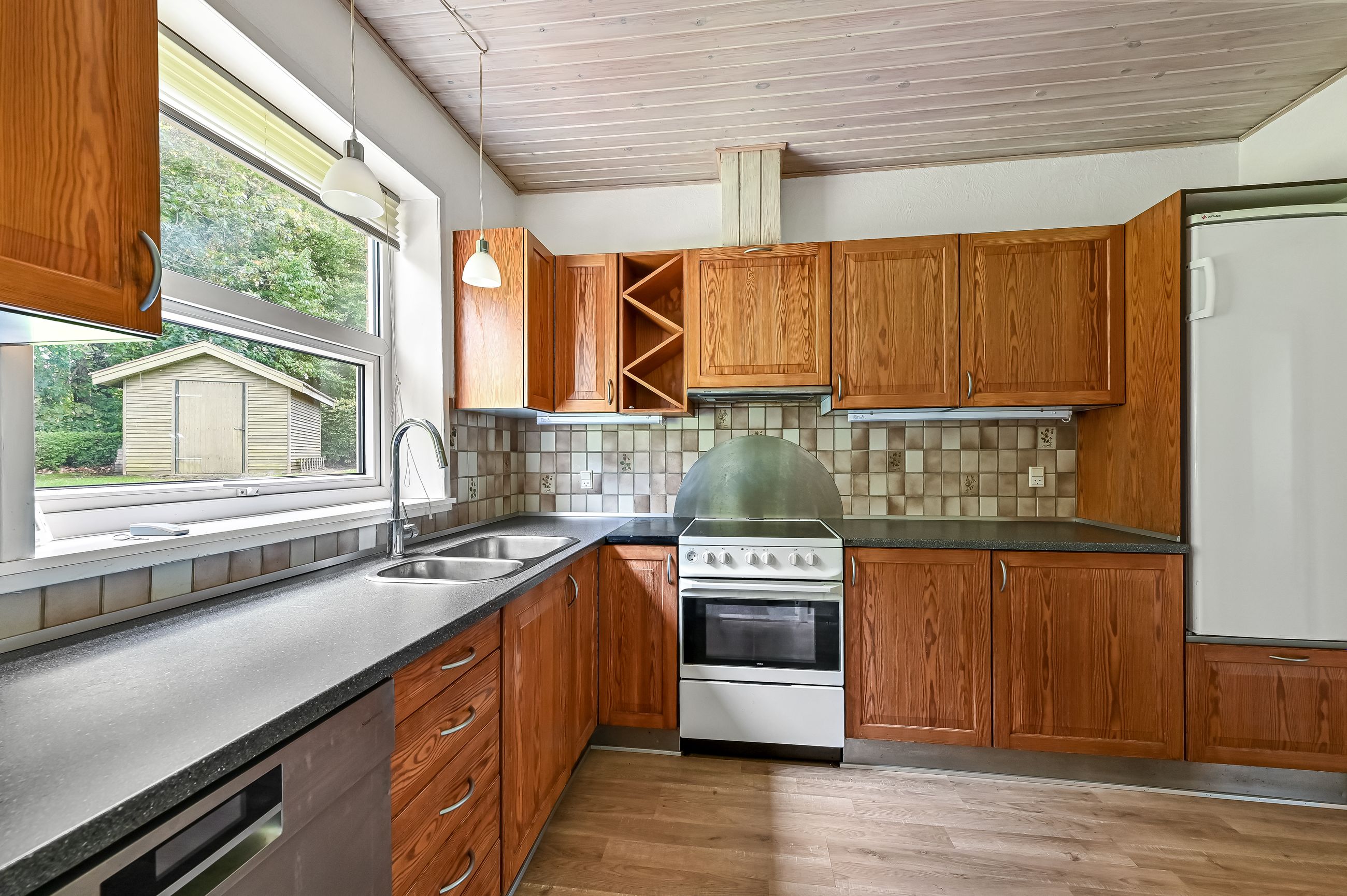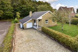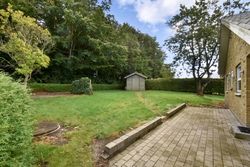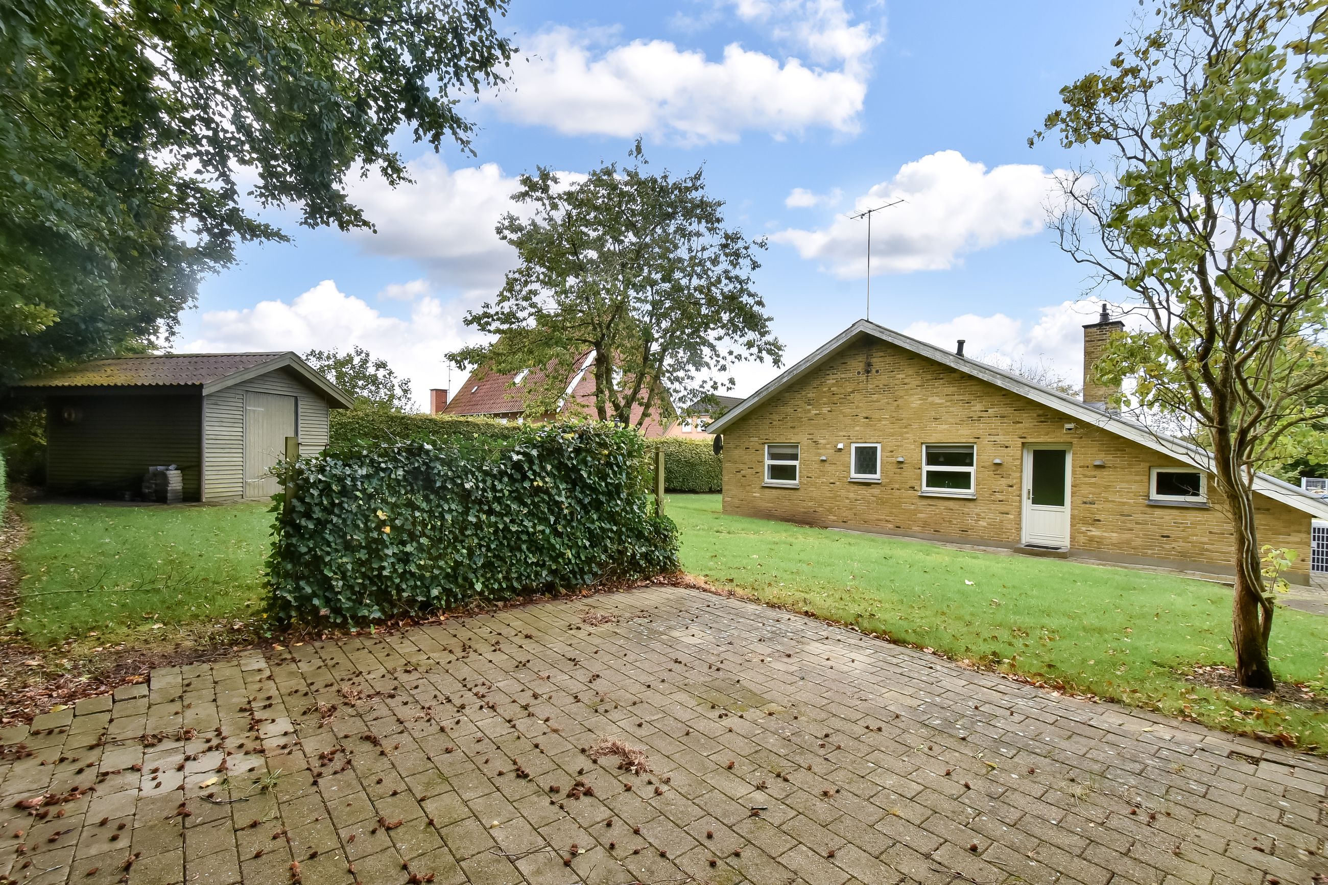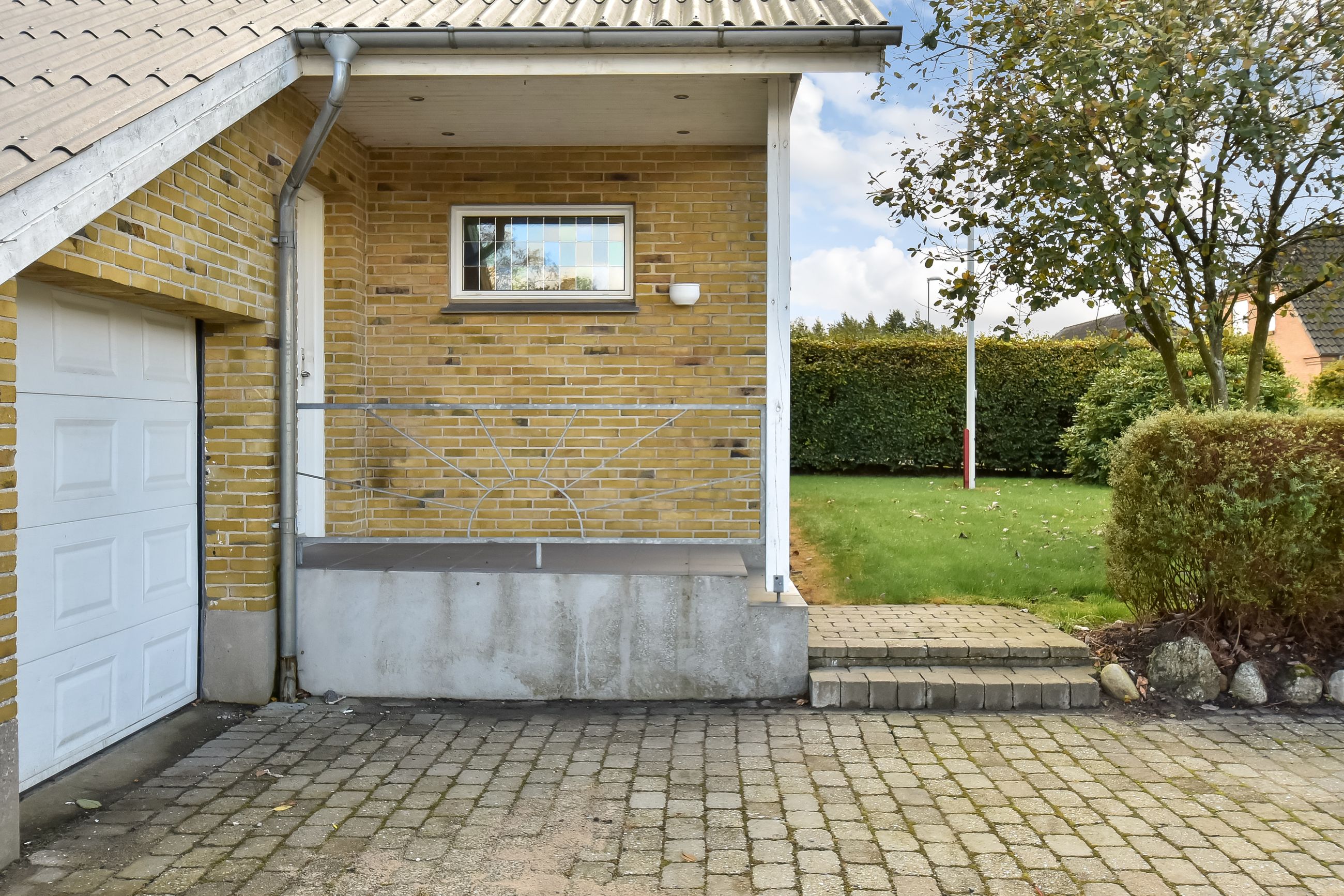 Grunden omkring huset giver god plads til udendørs aktiviteter eller afslapning i haven. Med udsigt til træer fra baghaven får man følelsen af at være tæt på naturen, samtidig med fordelene ved at bo tæt på byen. Ejendommen grænser op til en offentlig parkeringsplads, som sjældent benyttes, hvilket giver lidt ekstra afstand til vejen.