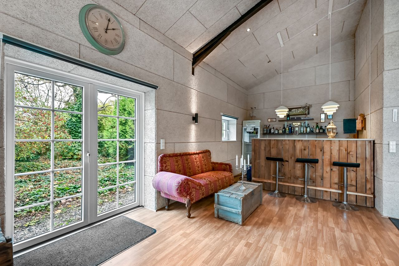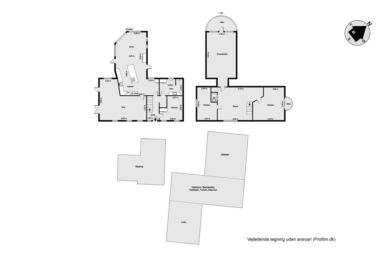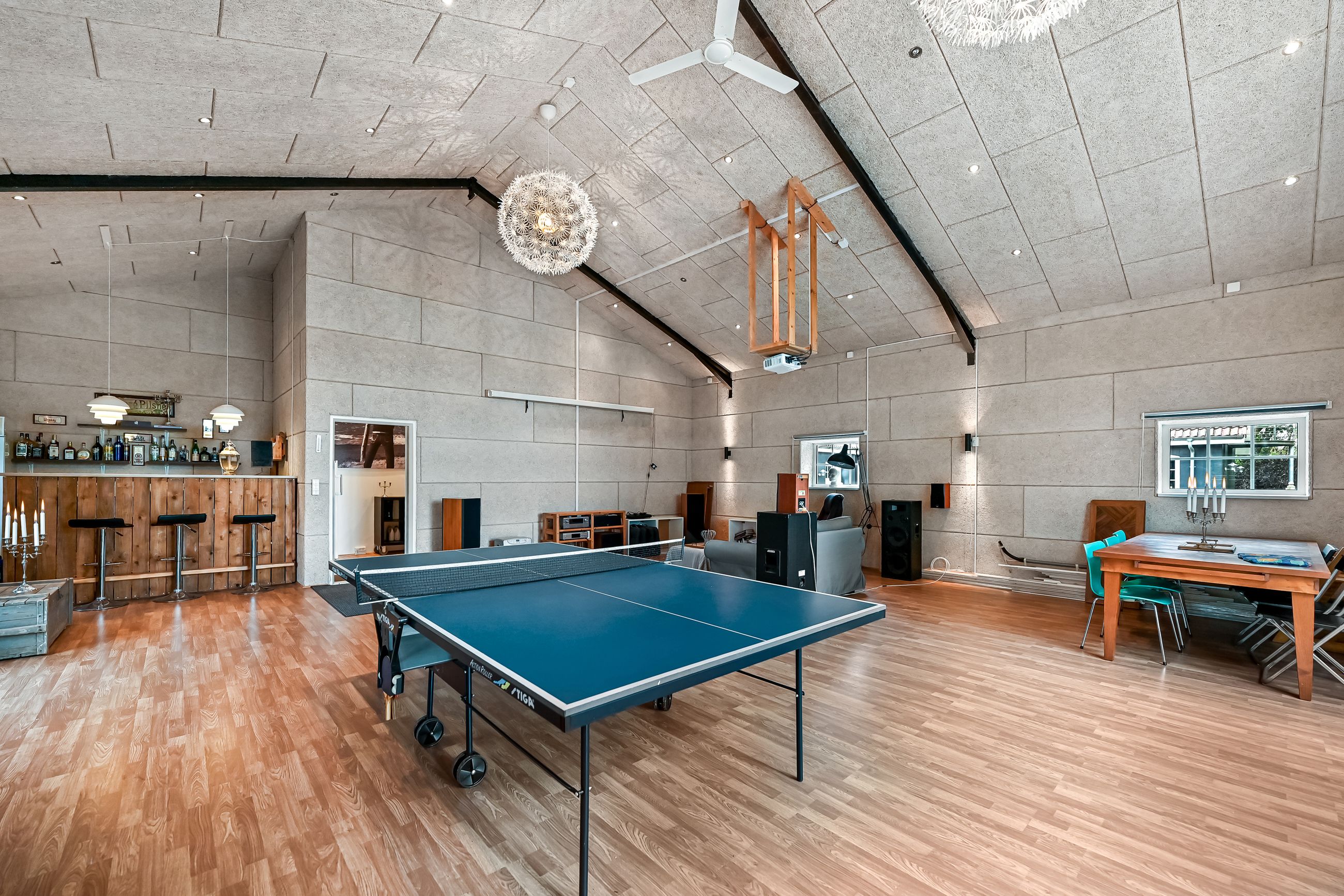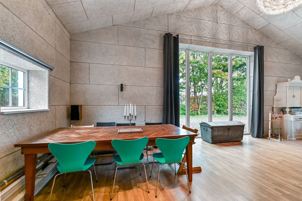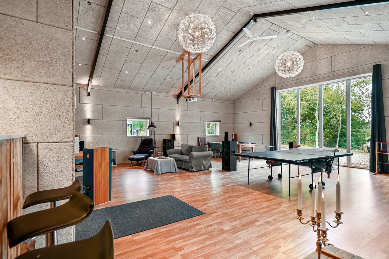 Den nyeste udhuslænge er indrettet med separat entré/indgang og en imponerende gildesal med loft til kip, store vinduespartier og bar – et ideelt rum til fester, events eller kreative projekter.