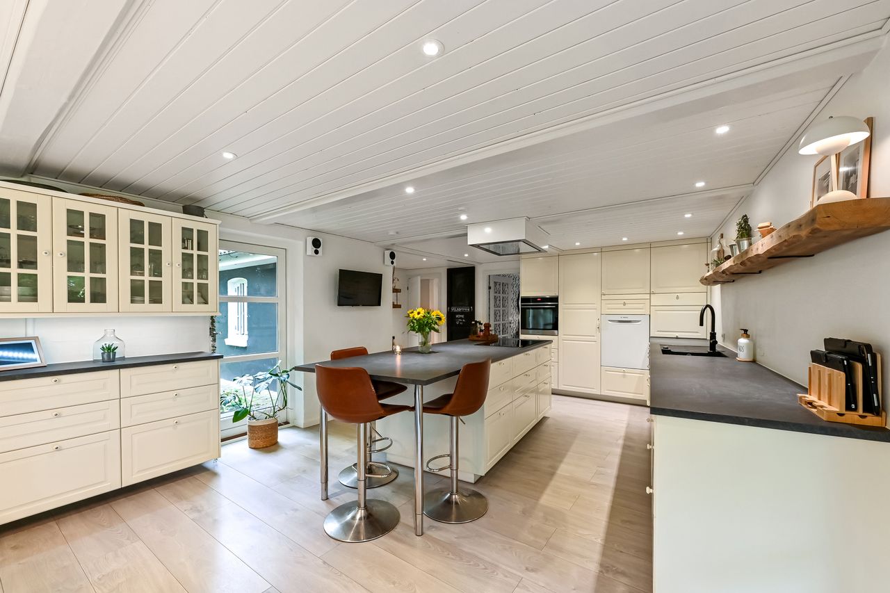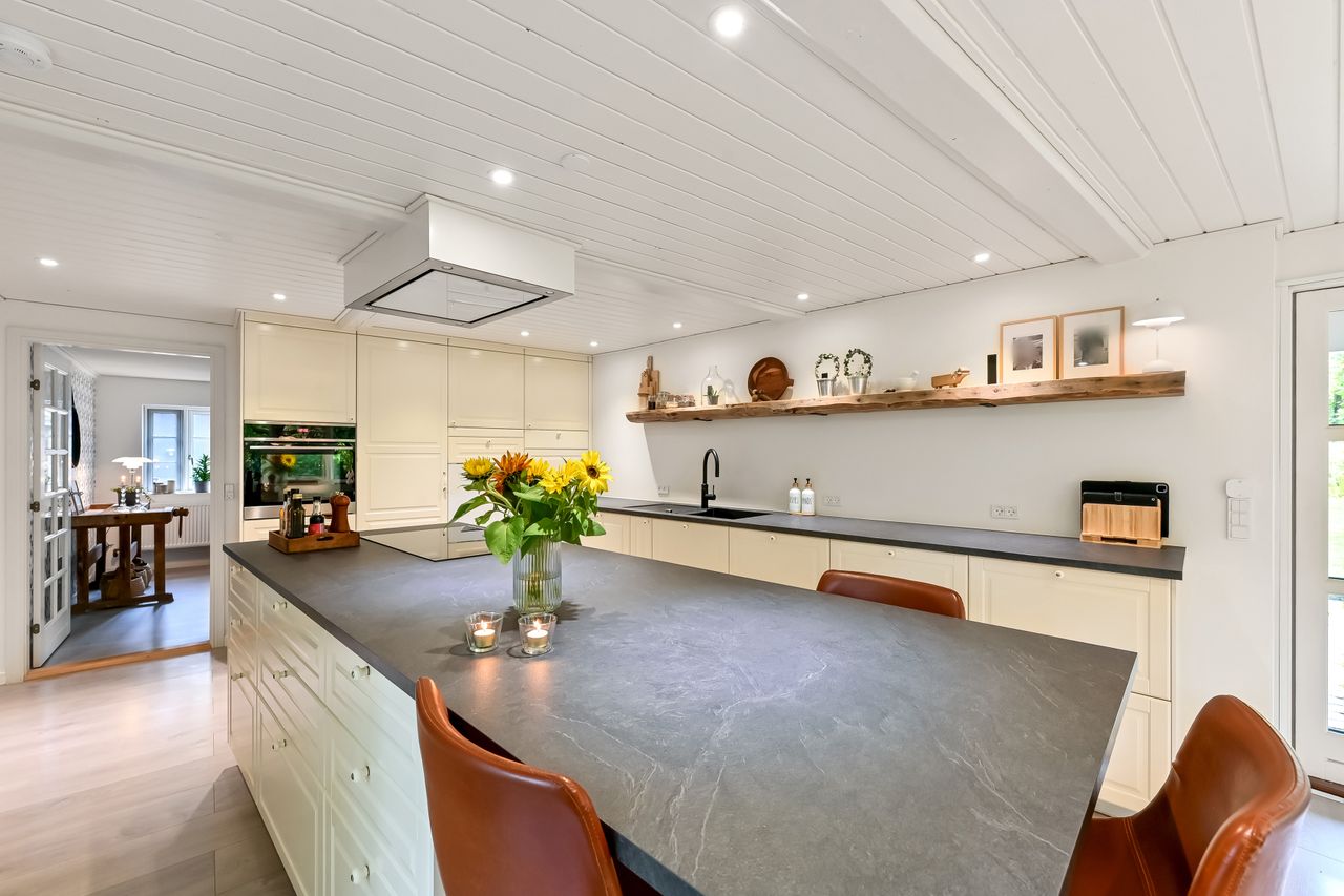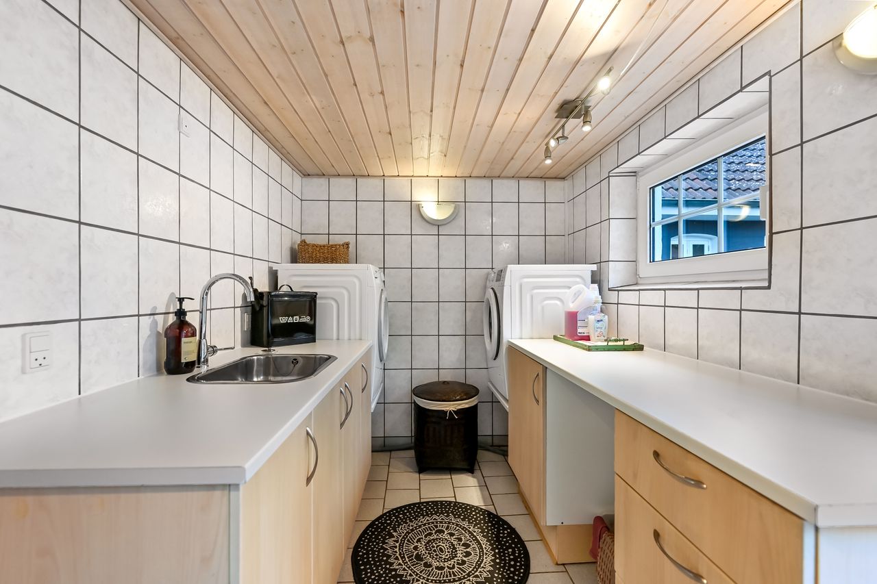 Udhusene er både funktionelle og charmerende. En del er indrettet som lade og fyrrum, mens en anden længe rummer et flot bryggers/vaskerum, badeværelse, garage med epoxygulv og hvælvet loft, stort disponibelt rum. I udhusbygningerne er der gulvvarme flere steder.