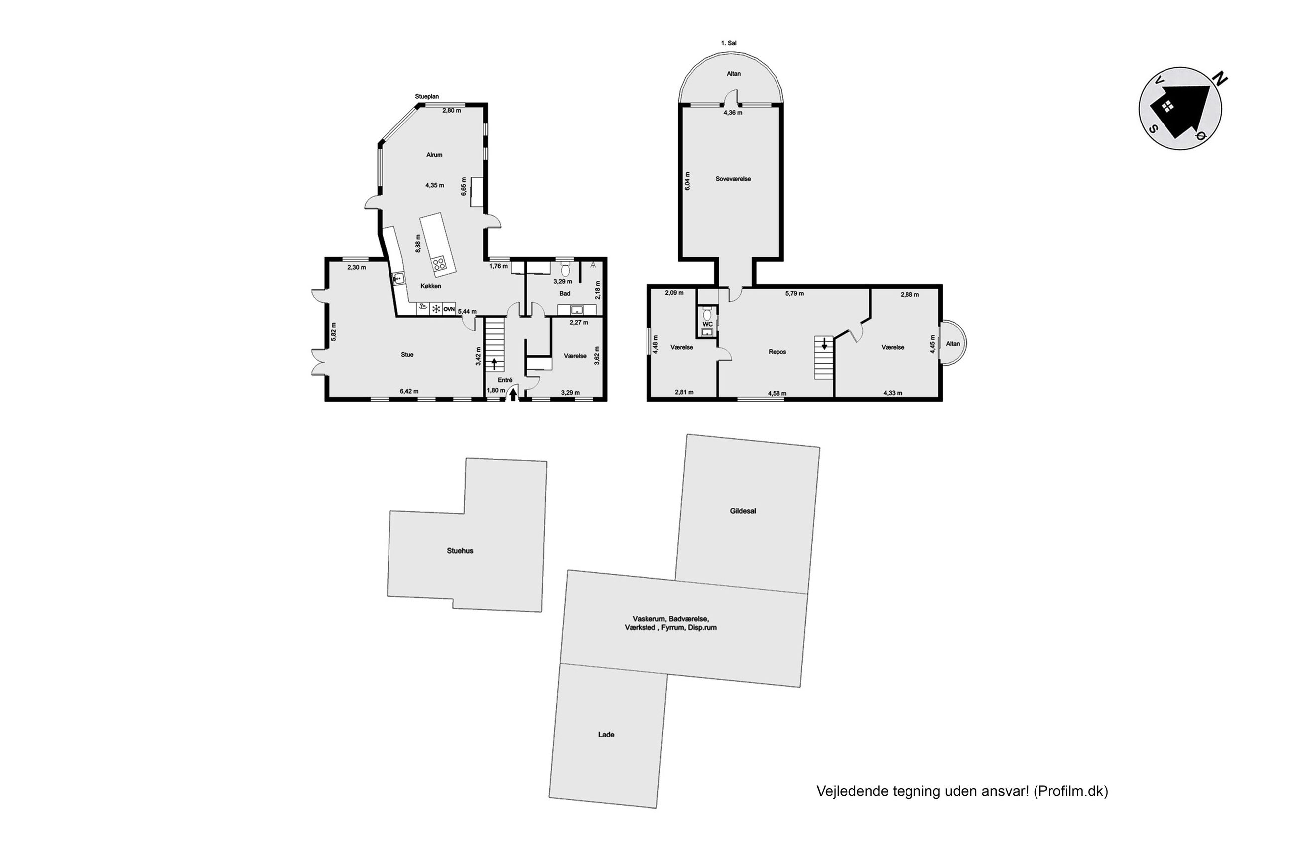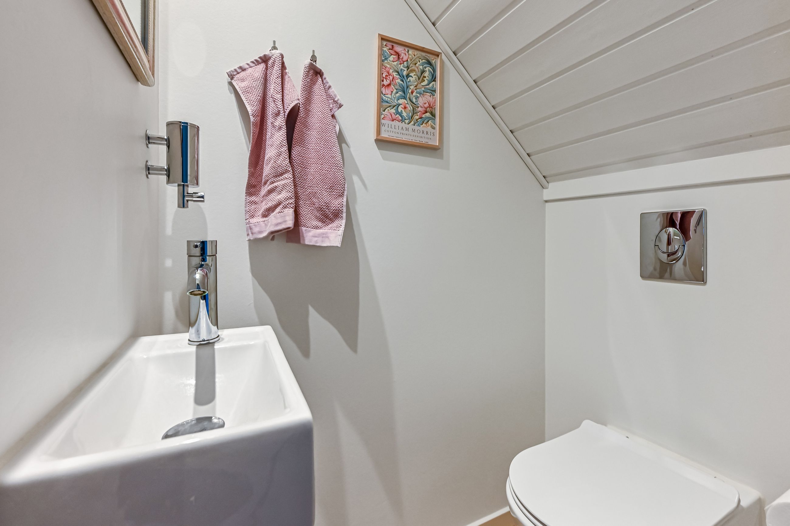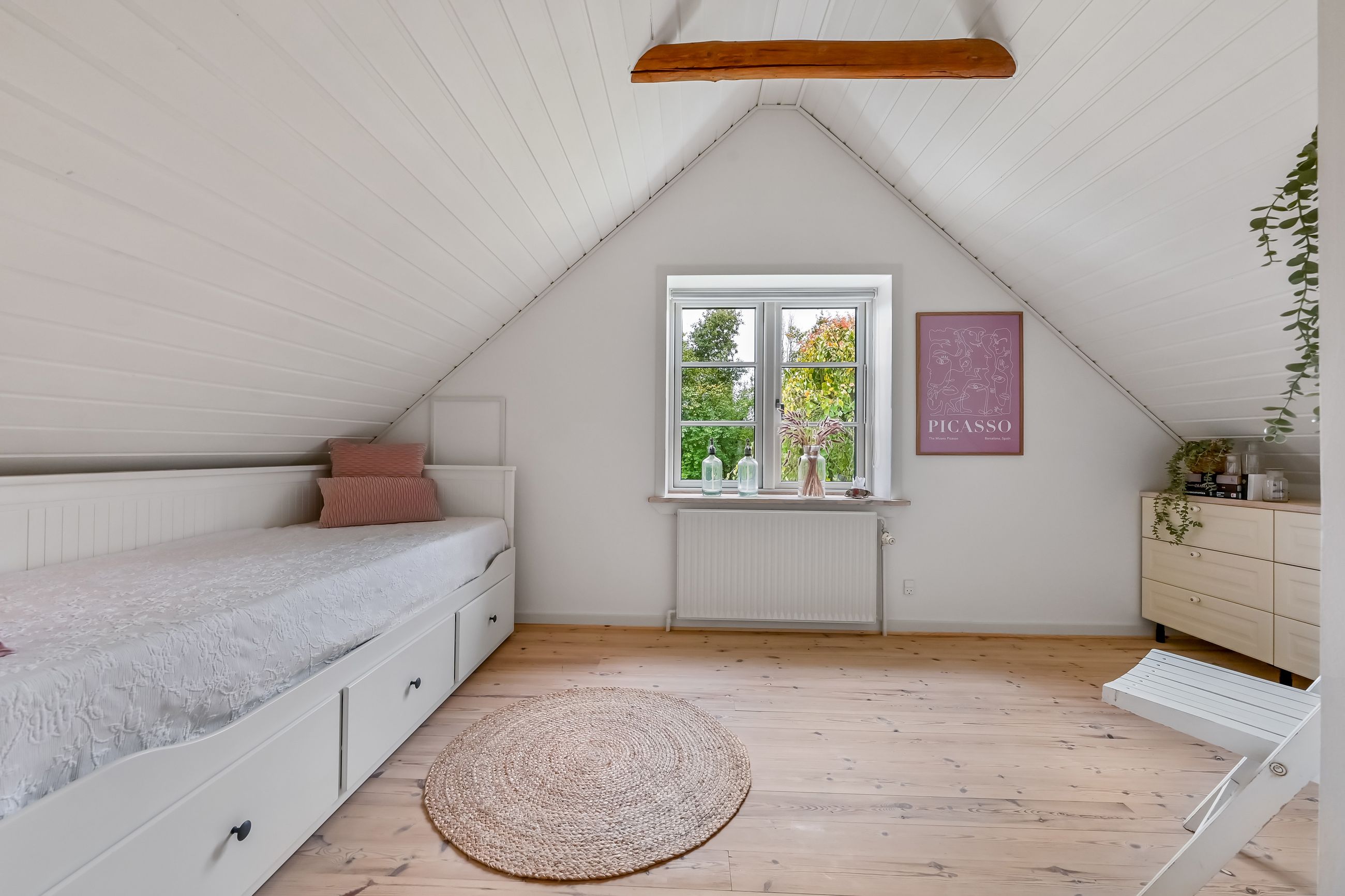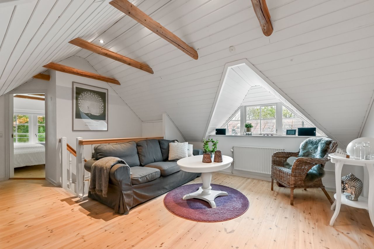 Stuehuset byder i stueplan på en indbydende entré, et værelse, et badeværelse samt et stort og lækkert køkken/alrum i åben forbindelse med en rummelig vinkelstue. På førstesalen findes et repos med kontorplads, et toilet, to gode værelser og et stort soveværelse mod vest og med udgang til altan – perfekt til at nyde solnedgangen over markerne.