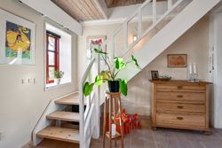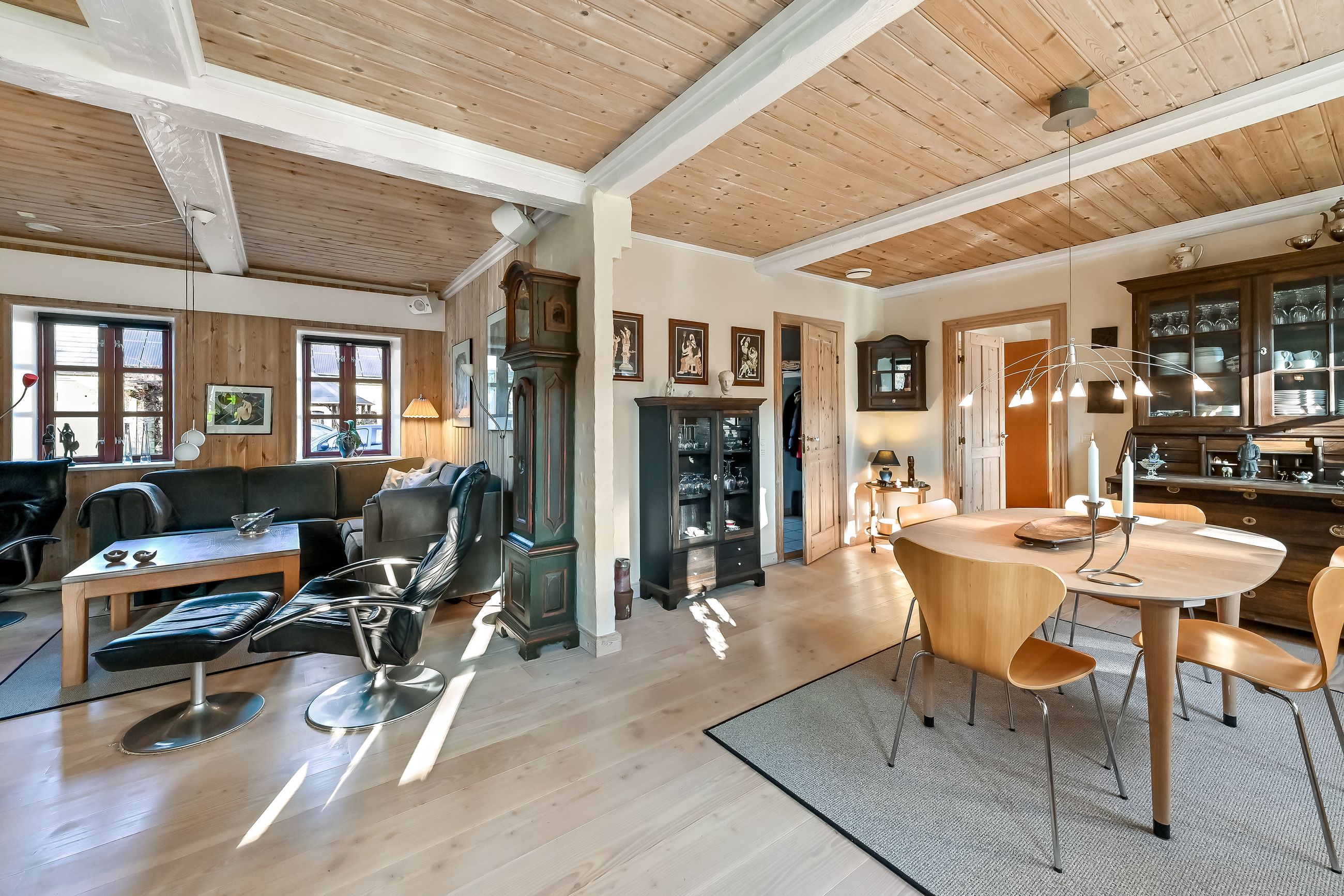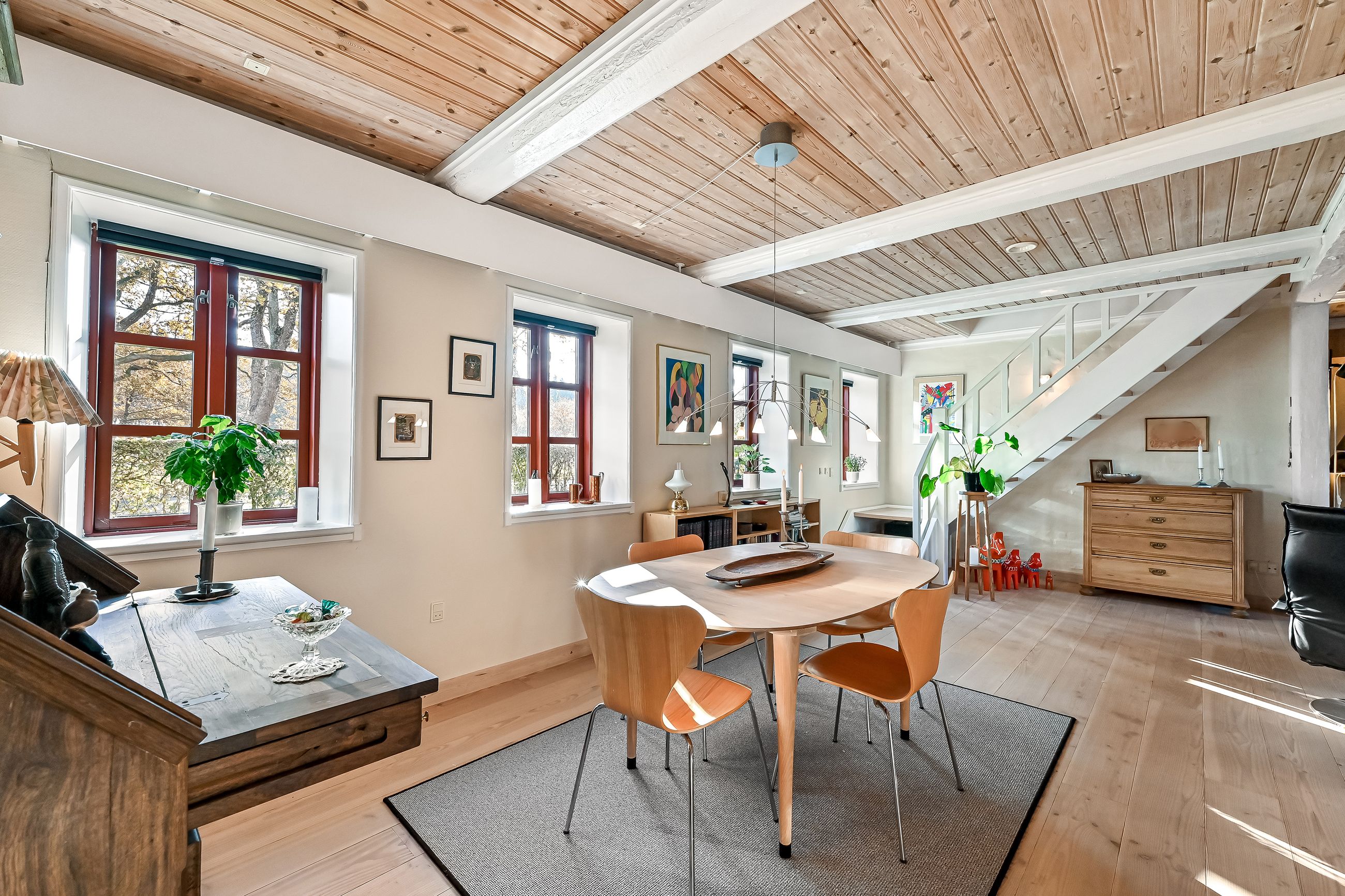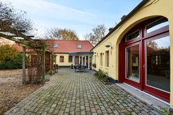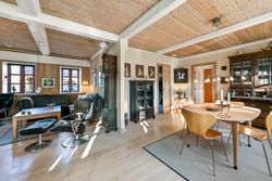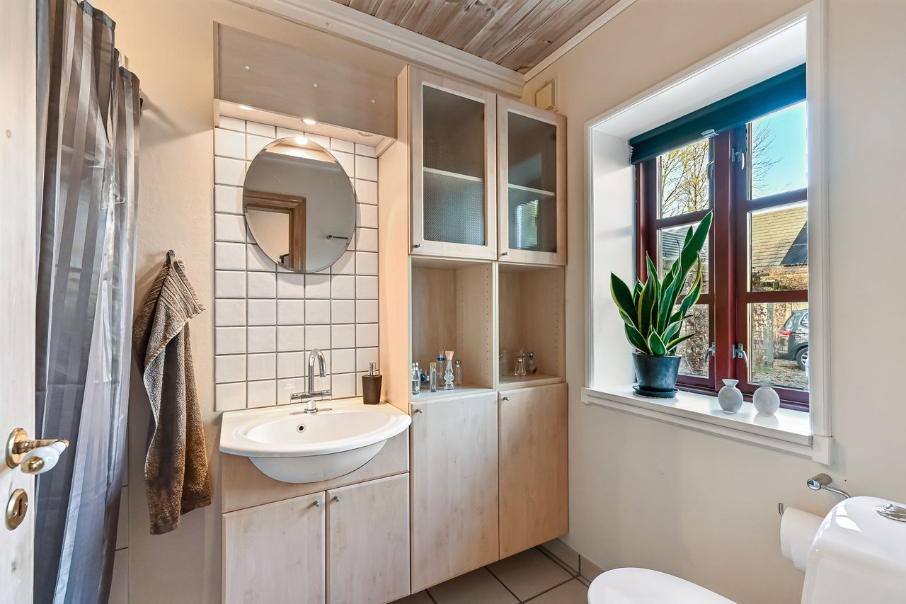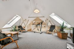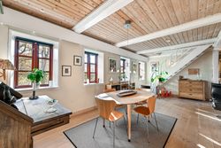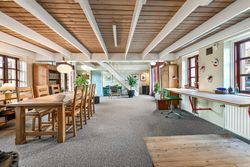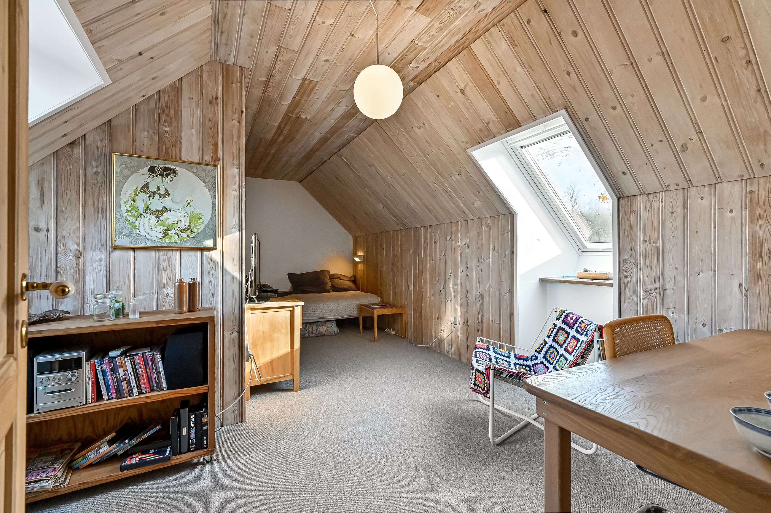 Den gamle ladebygning er nænsomt renoveret for at skabe ekstra opholdsrum med mange anvendelsesmuligheder. Her finder du endnu et badeværelse samt en lækker og lys gildesal – perfekt til festlige sammenkomster eller kreative projekter. Det store repos leder videre til to yderligere værelser, hvilket gør det ideelt som teenageafdeling eller gæsteområde.