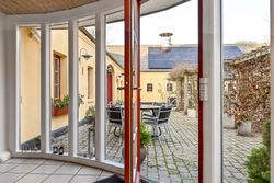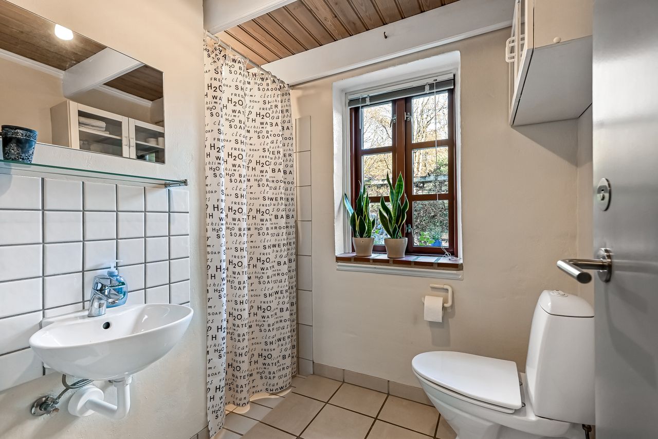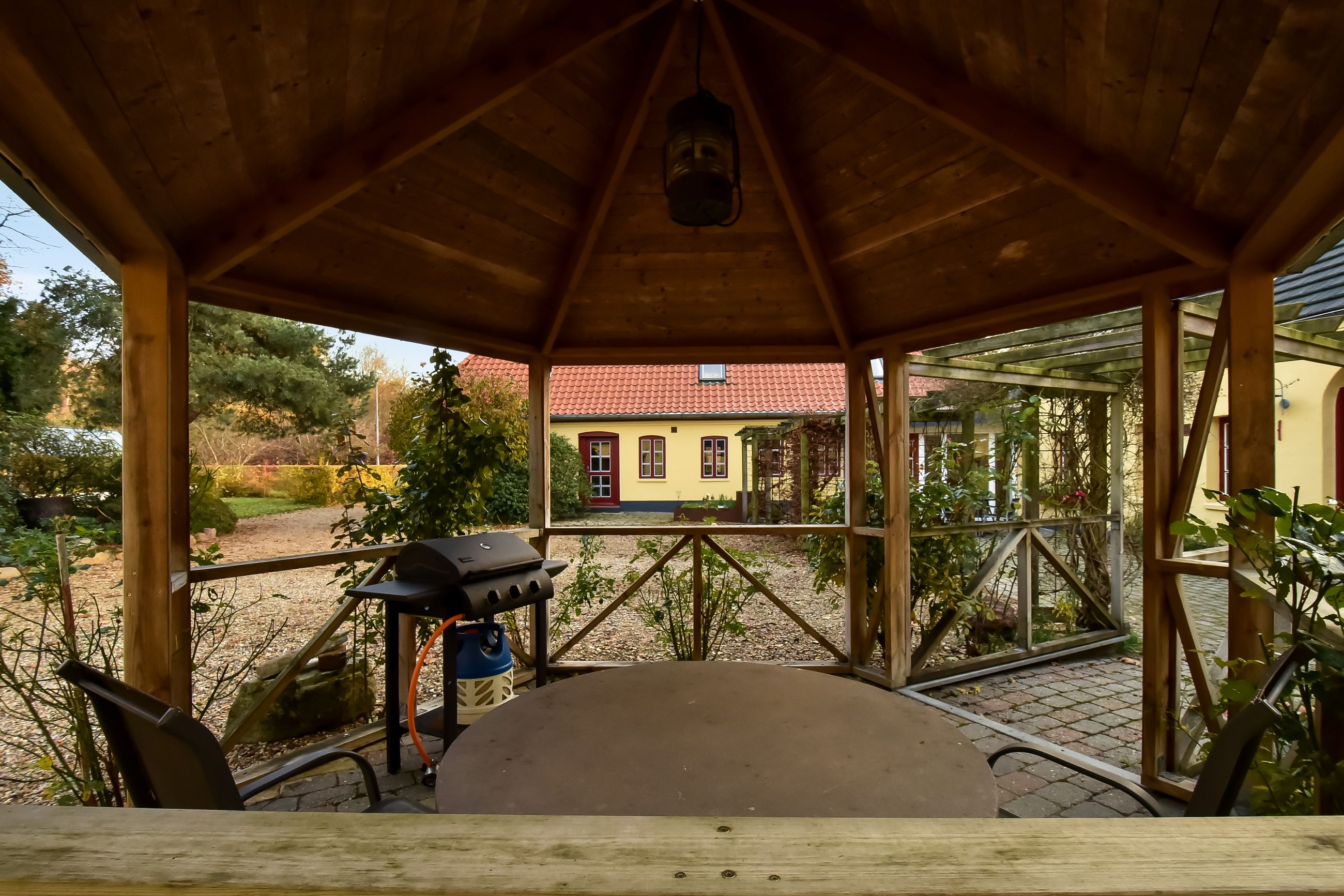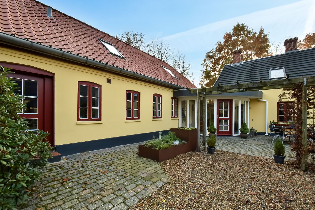Udenfor venter en hyggelig gårdhave med flere kroge, hvor man kan nyde morgenkaffen i fredelige omgivelser til fuglekvidder. Derudover findes værksted, garage samt et gammelt staldafsnit – perfekt til hobbyprojekter eller opbevaring af maskiner.