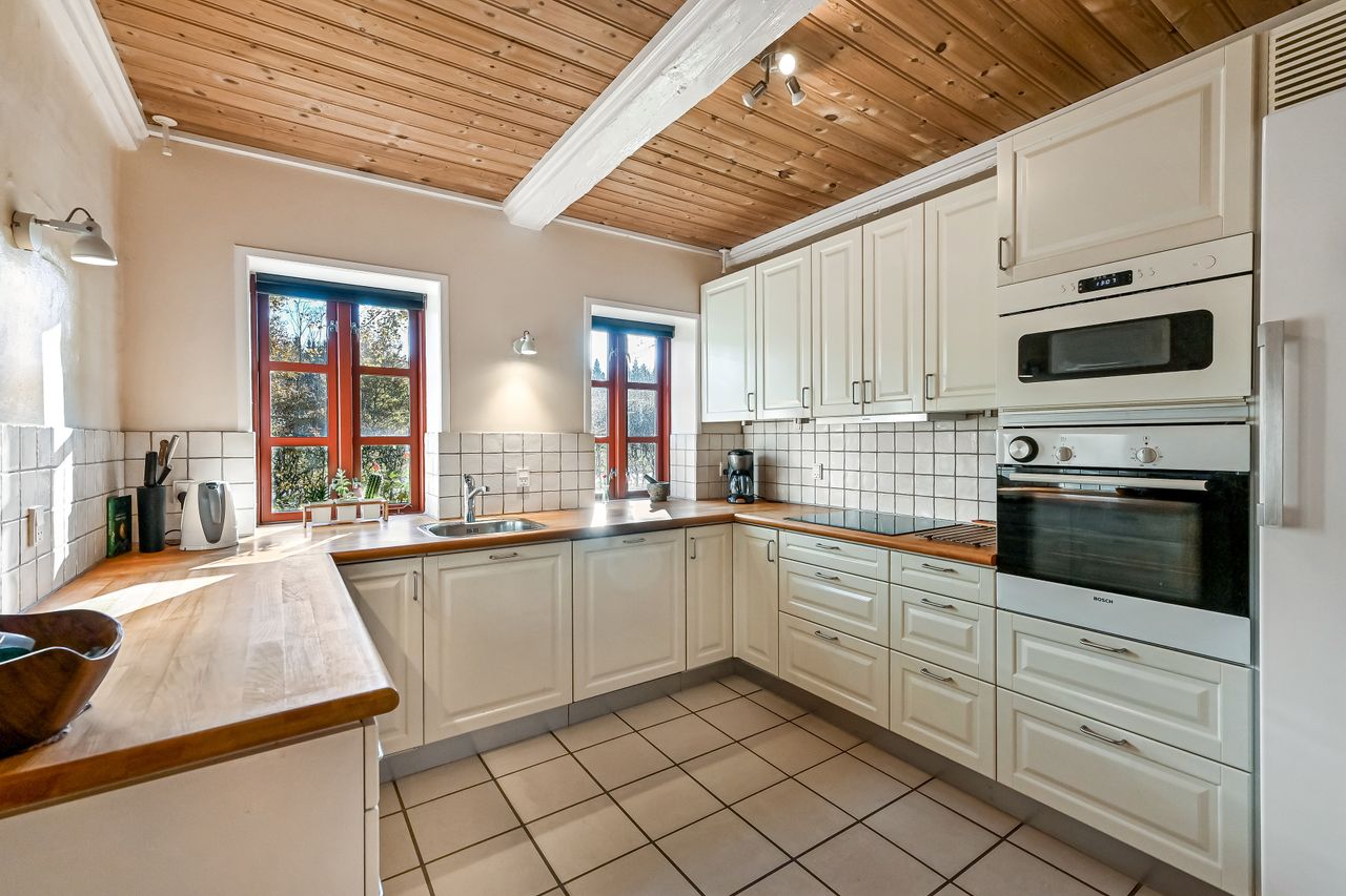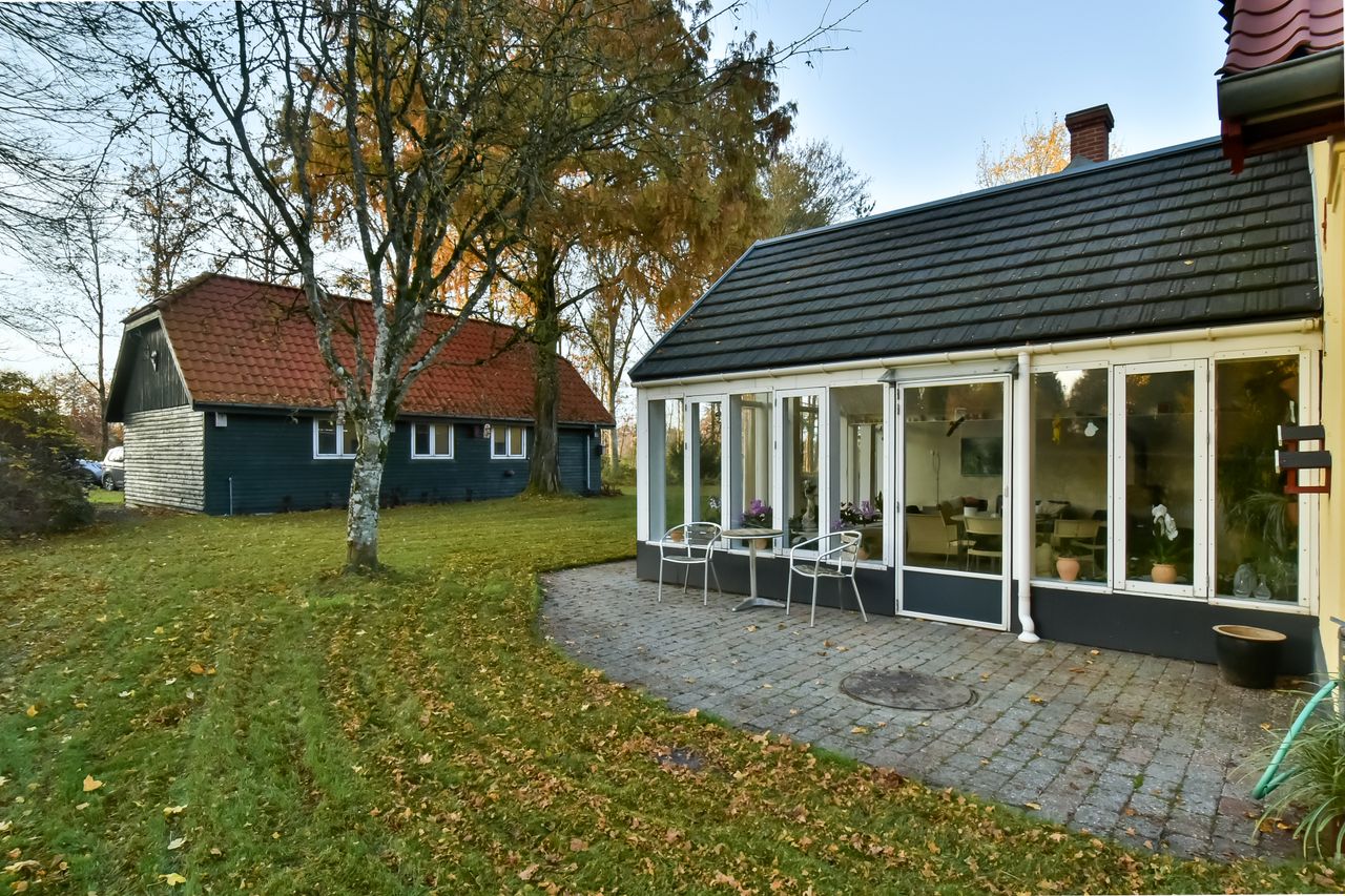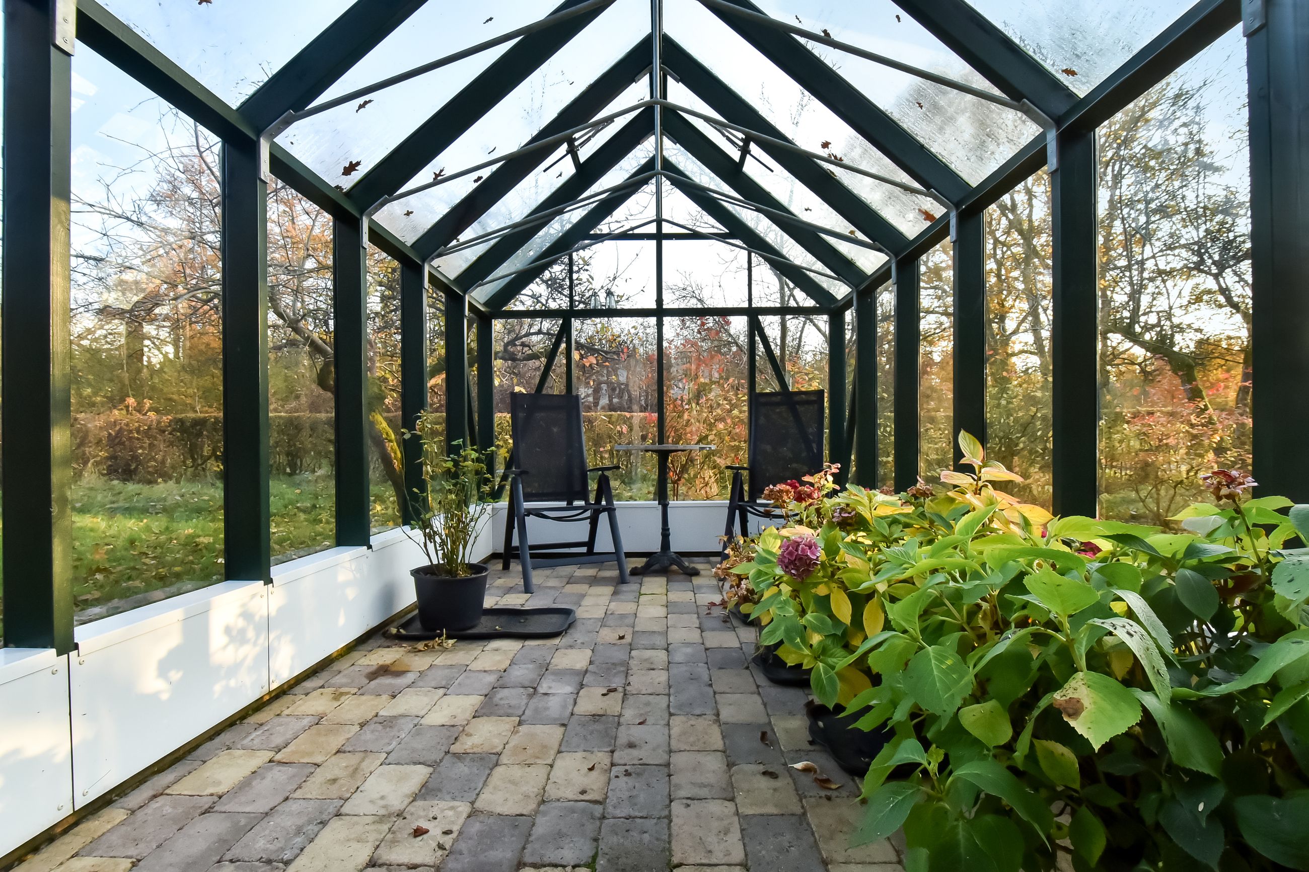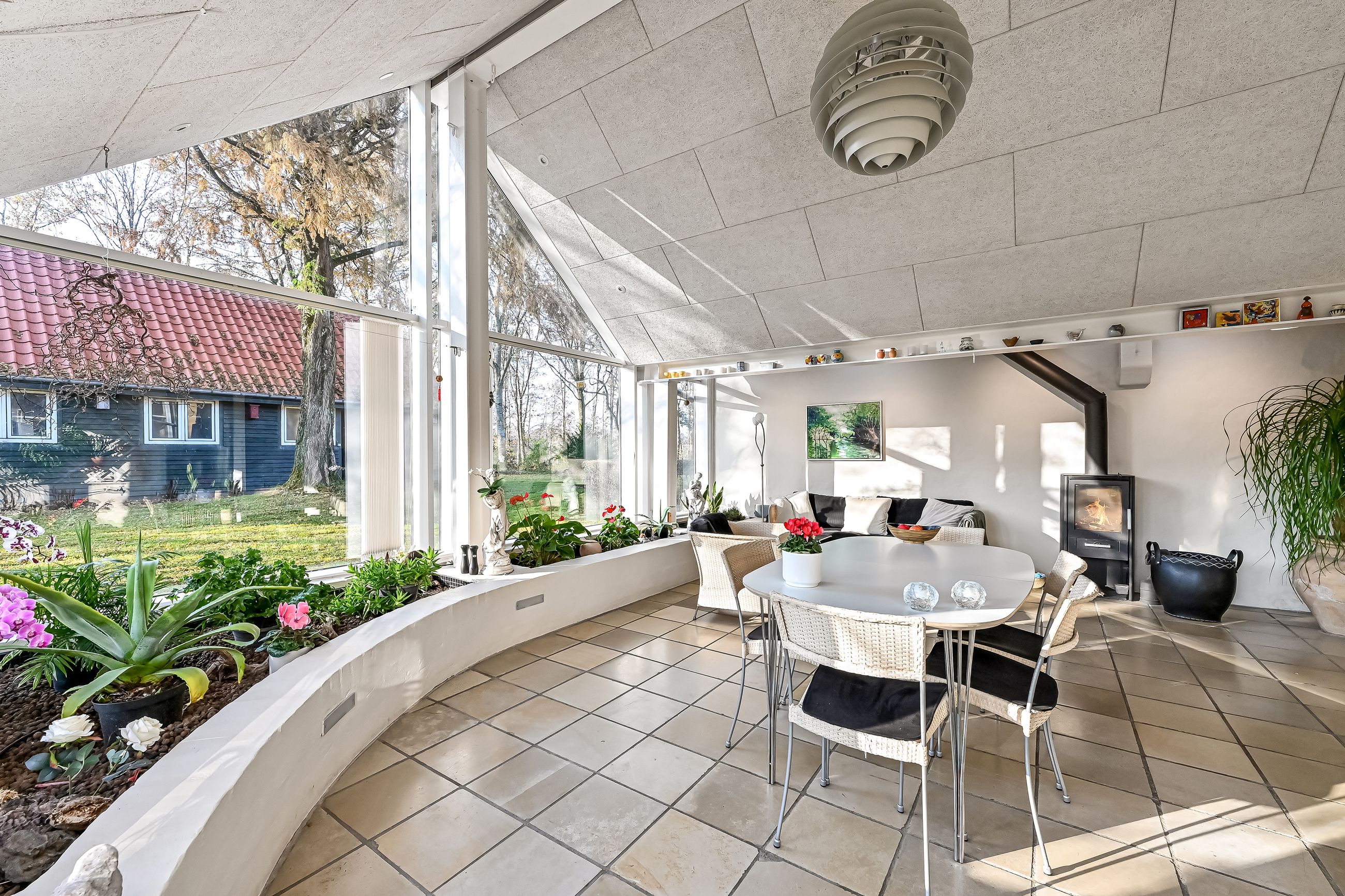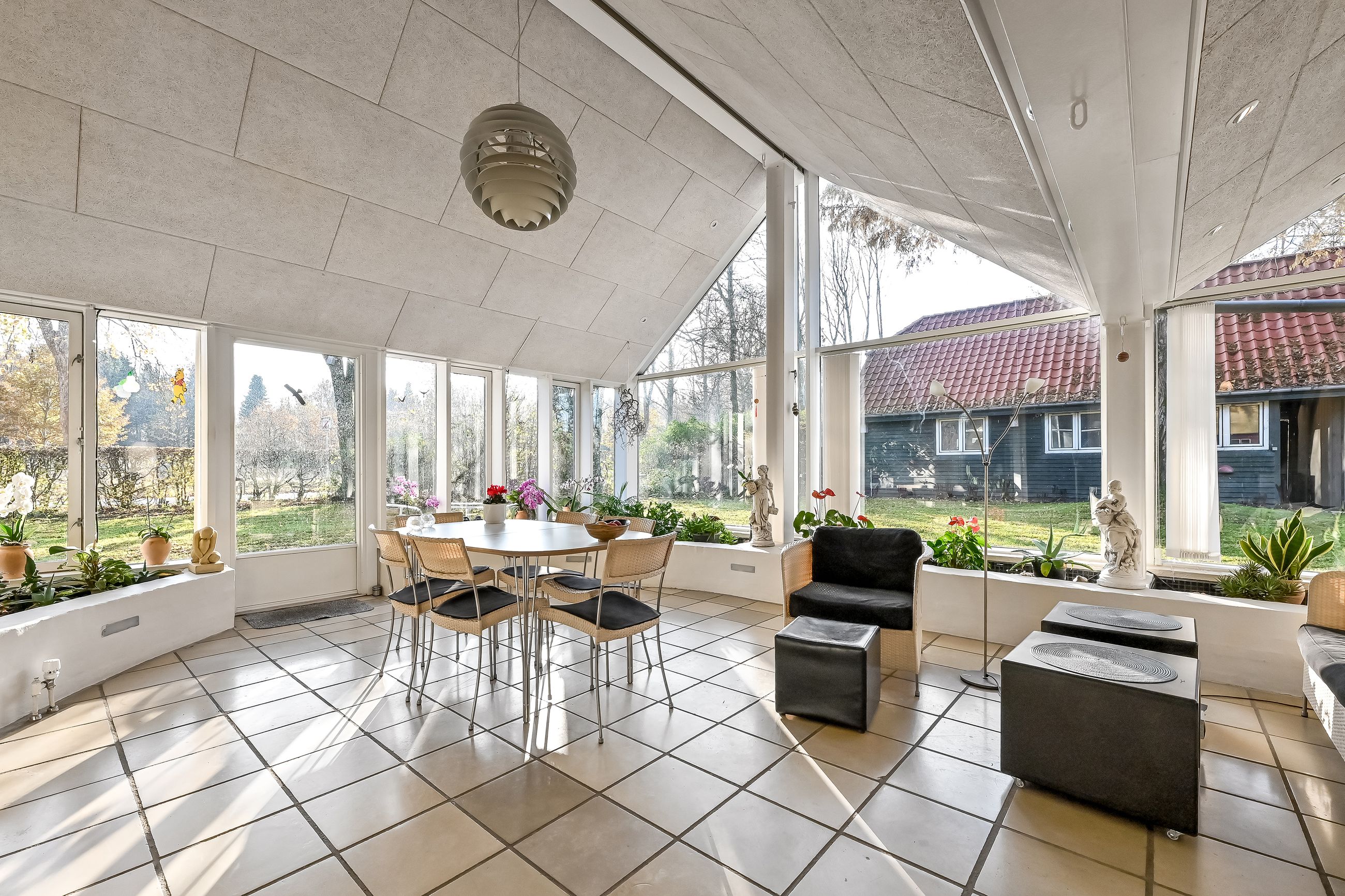 I haven rundt om huset finder du farverige buske og blomstrende bede, flere terrasseområder samt et hyggeligt drivhus. Den omkringliggende natur ligger lige op til ejendommen og er en naturlig og unik del af udsigten, hverdagen og charmen ved stedet.