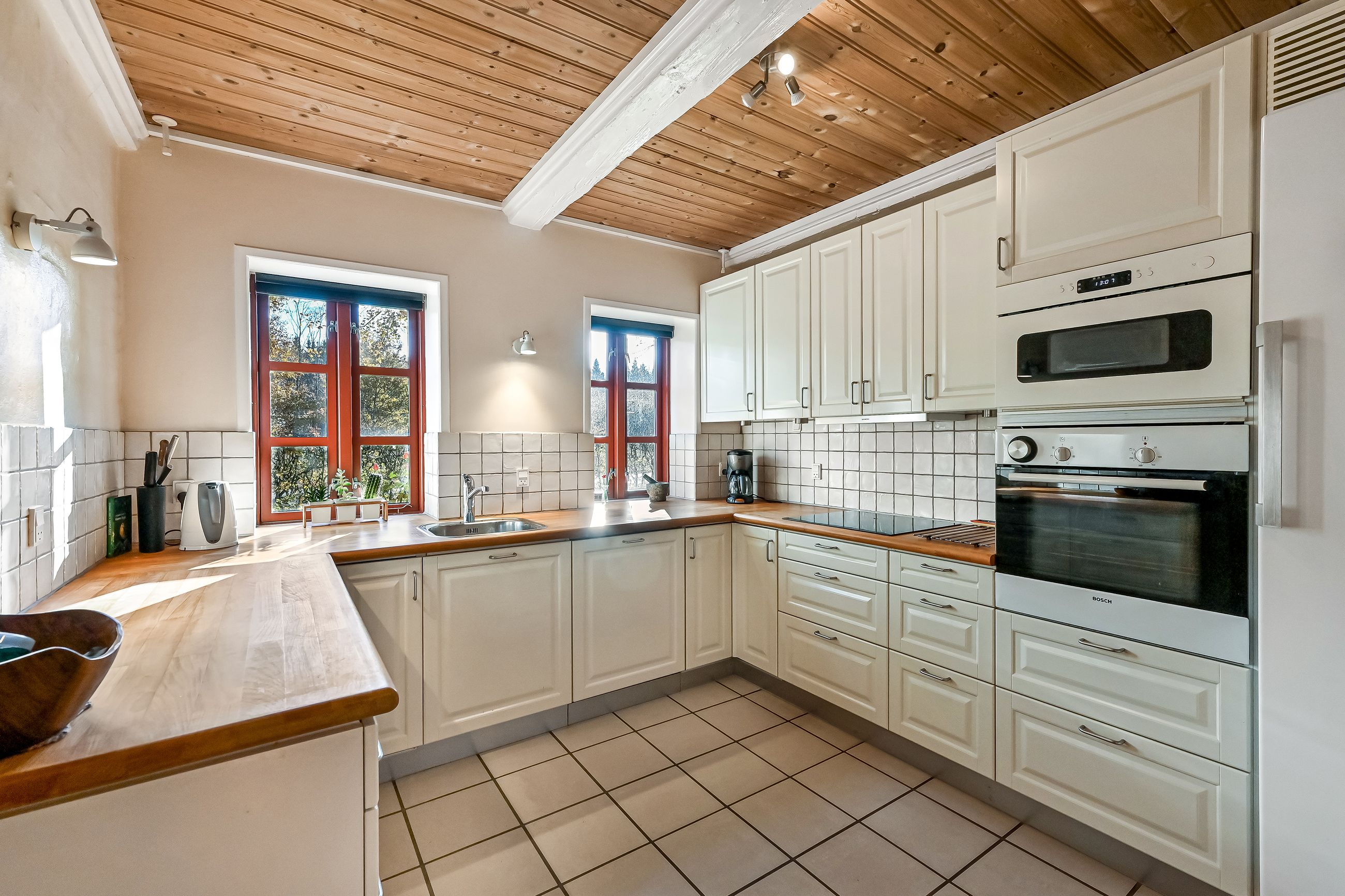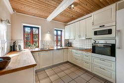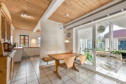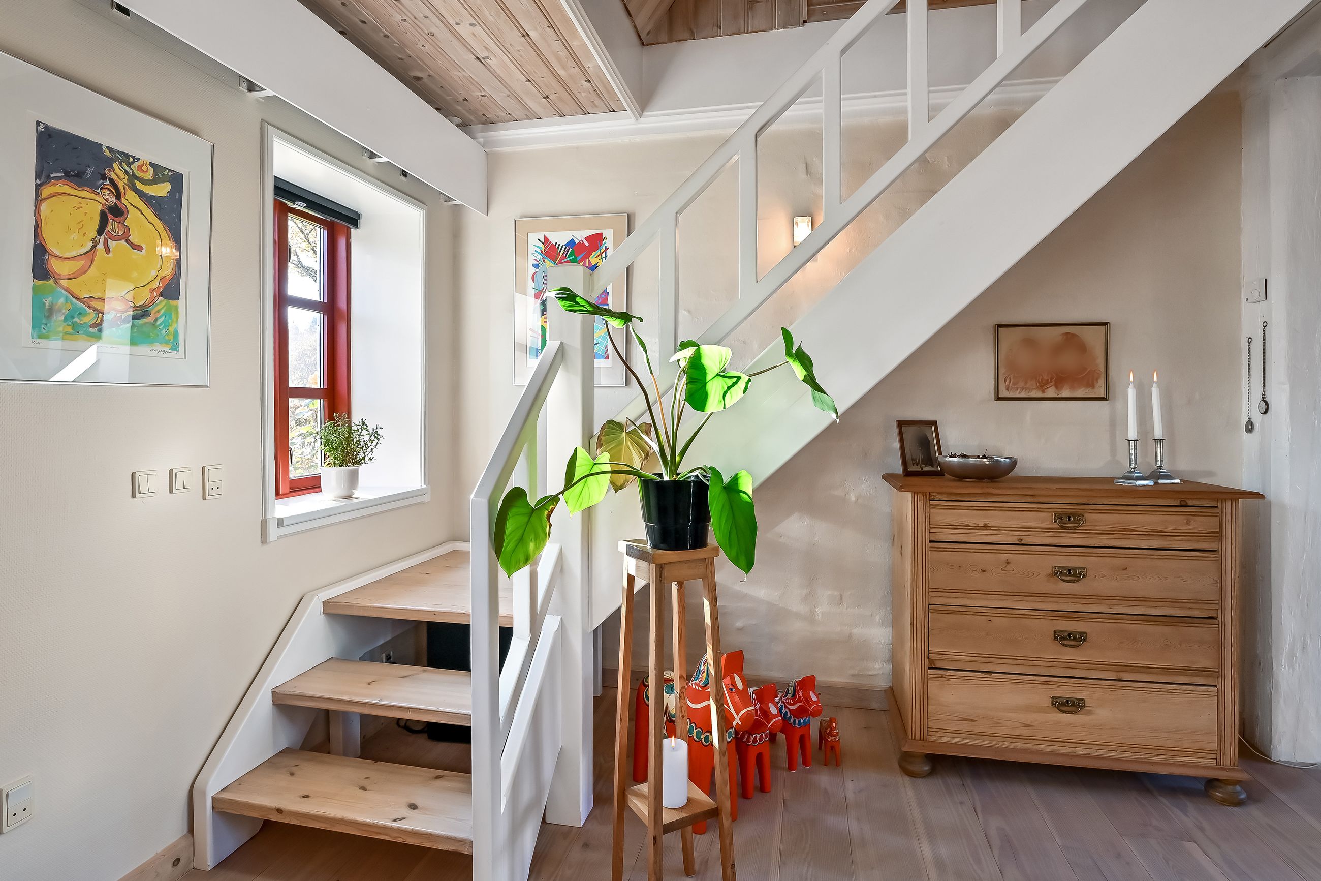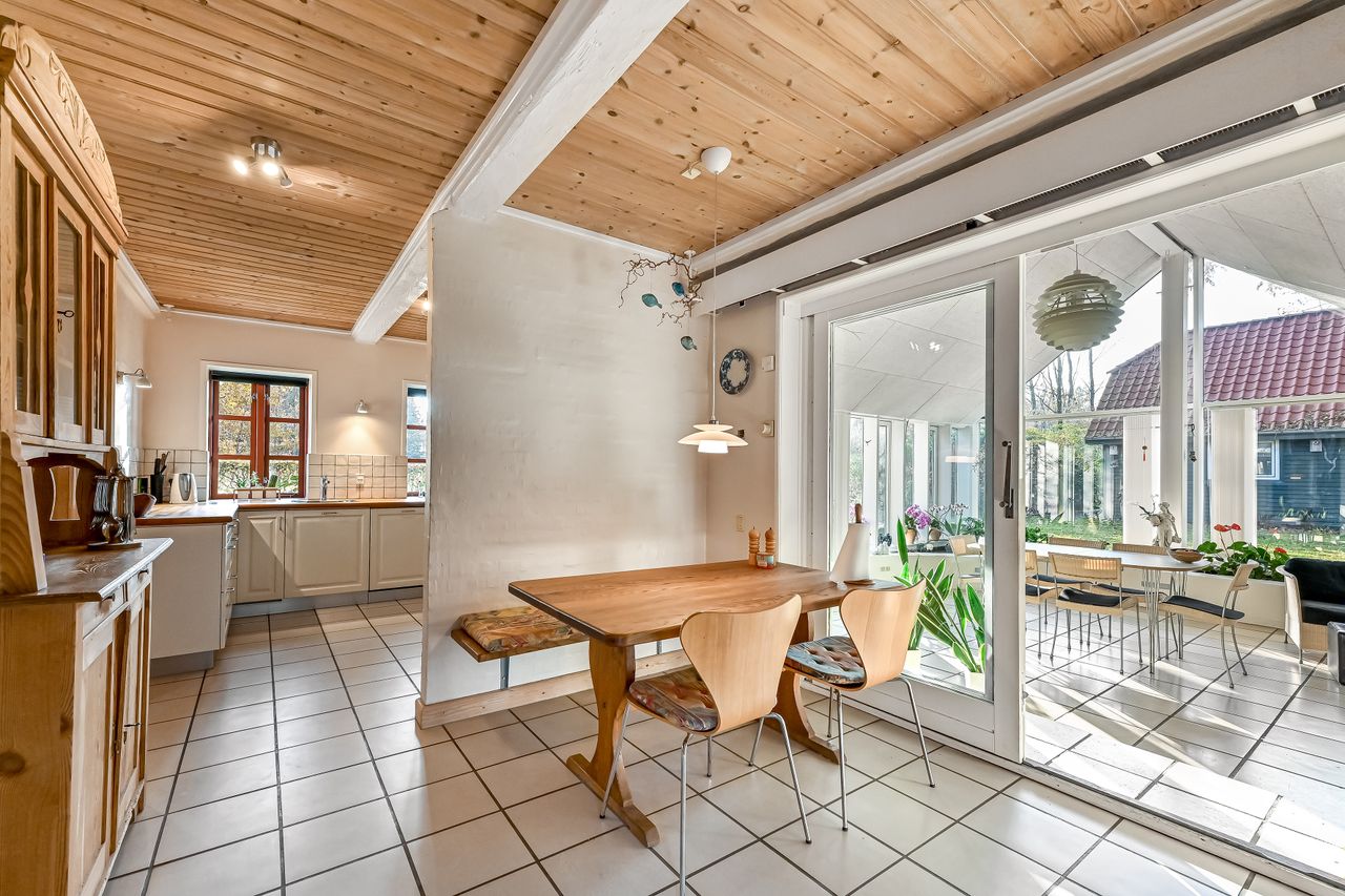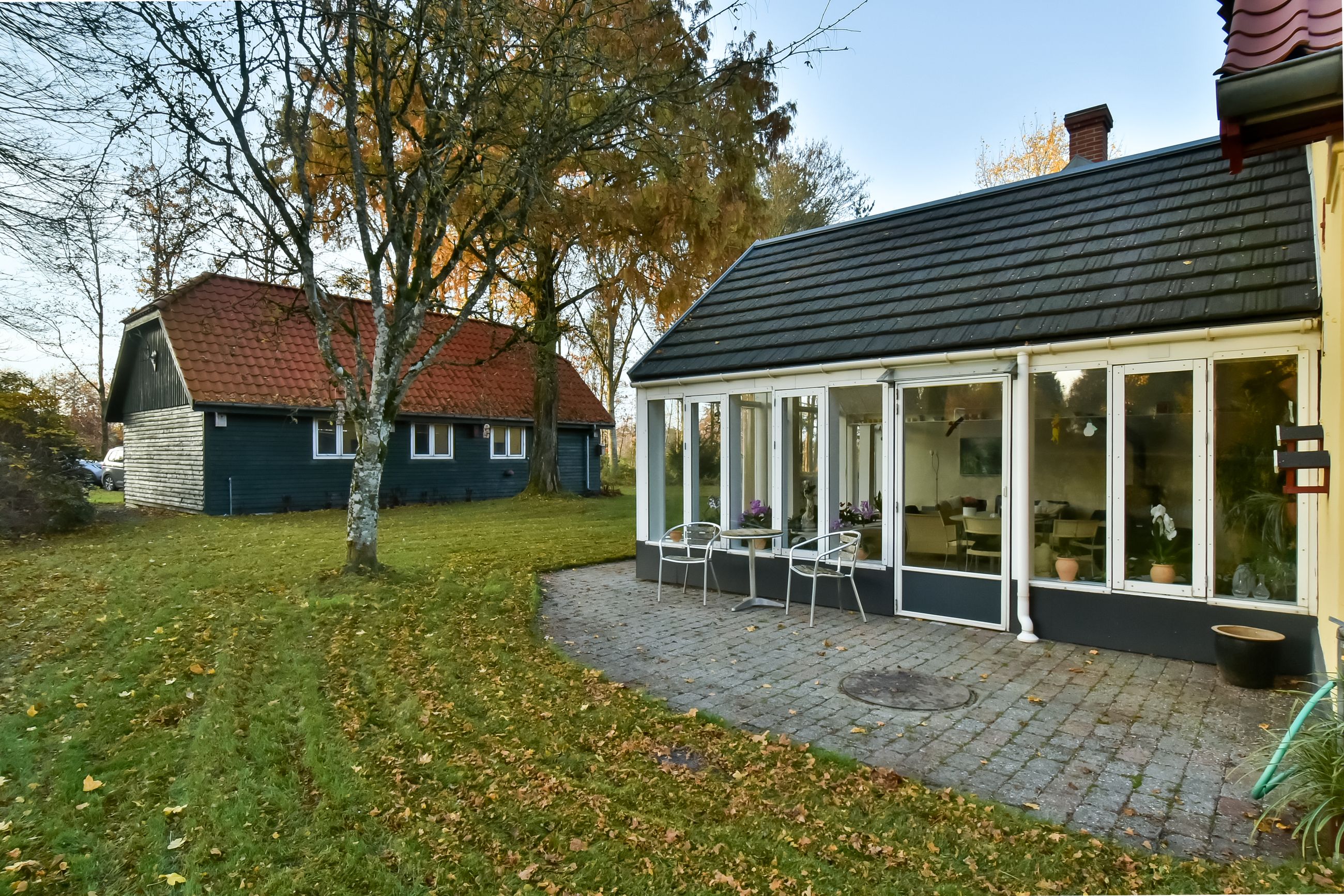 Hovedhuset byder på hele 277 m2 boligareal fyldt med sjæl og charme. Det hyggelige køkken/alrum danner rammen om familiens samlingspunkt, mens den rummelige vinkelstue indbyder til afslapning. Med to badeværelser og tre værelser er der plads til både familie og gæster. Udestuen giver dig mulighed for at nyde udsigten over den farverige have året rundt og lade roen falde over én foran brændeovnen.