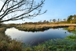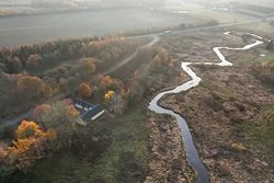 Der er tale om en trelænget gård fra 1927 med en imponerende grund på 10 ha. Her får du ikke blot et hjem, men også chancen for at leve tæt på naturen med en kilometer lang å, der snor sig gennem landskabet og grunden, og som skaber en idyllisk og unik udsigt fra ejendommen.