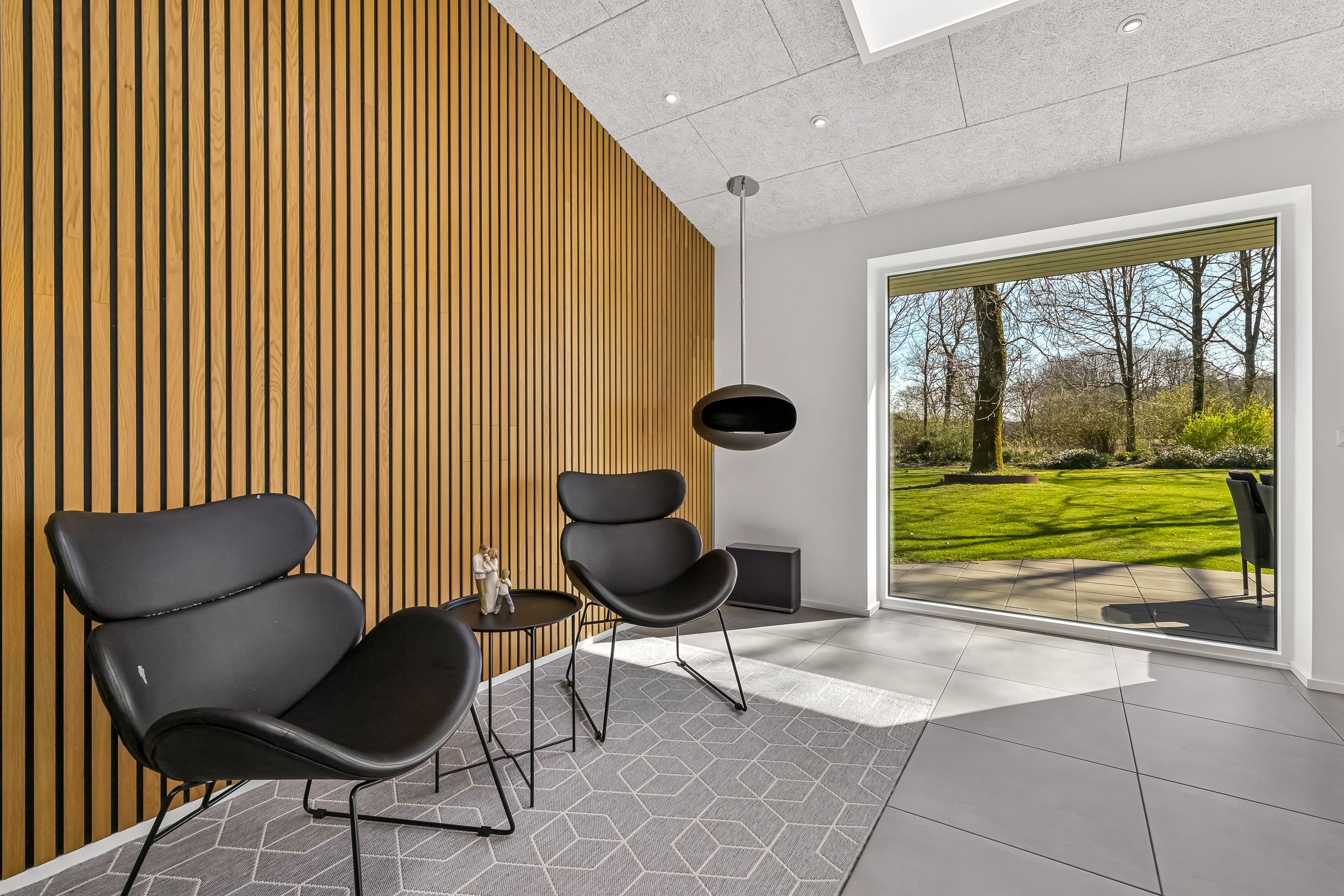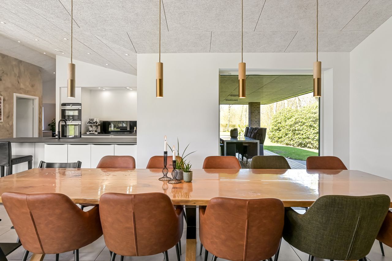 Haven omkring boligen er i en klasse for sig. Den er anlagt som en stor, parklignende oase med gamle træer, storslåede rhododendronbuske og masser af små kroge og stier, der indbyder til ophold og nydelse året rundt.